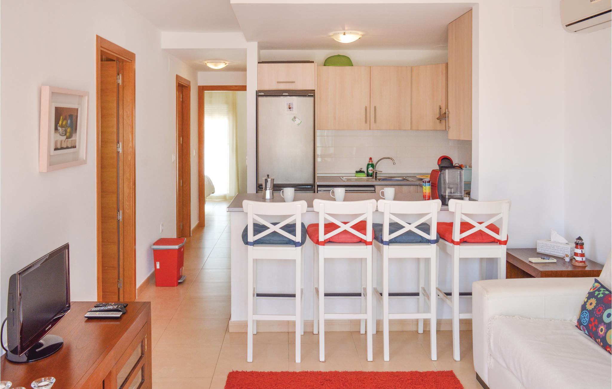 Denne velplejede ferielejlighed ligger i stueplan og er udstyret med klimaanlæg. Udgang til en skøn terrasse og en hæk sørger for privatsfære. Ikke langt fra boligen kan I tage en dukkert i Golfresortets fælles pool. Golfbanerne i Alhama Golfresort er designet af golflegenden Jack Nicklaus. Der er ikke langt til Al Kasar-Shoppingcenteret med barer, restaurant, supermarked, bageri og skønhedssalon. Som oplagte udflugtsmål kan saltvandslagunen mar Menor anbefales. her kan I bade og prøve kræfter med forskellige vandsportsdiscipliner. Her kan I holde en ferie med et rigt indhold af oplevelser, aktiviteter og afslapning under solen.