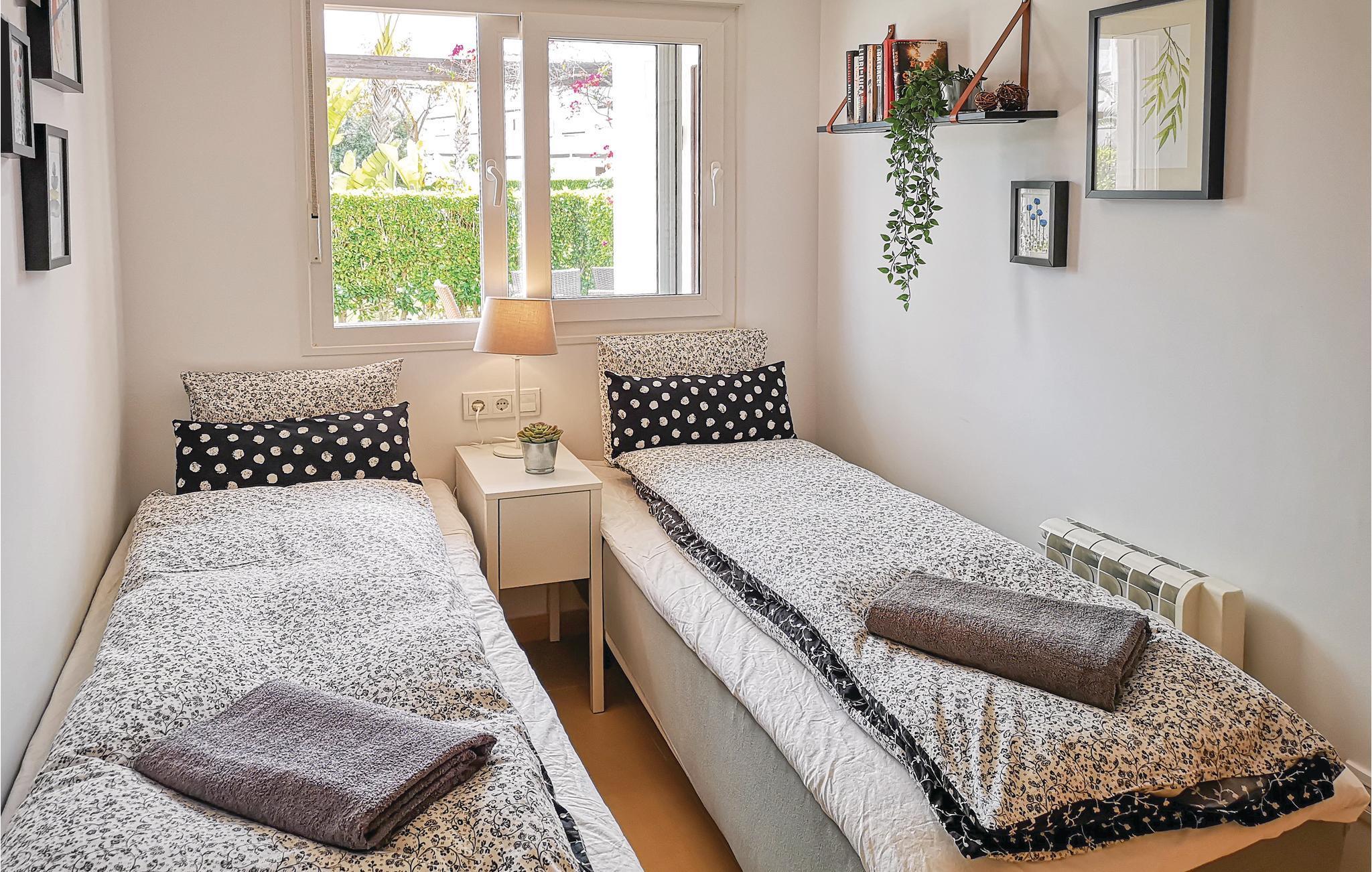 Denne velholdte og dejlige ferielejlighed i stueetagen er udstyret med klimaanlæg. Her er plads til seks personer fordelt på tre soveværelser samt et badeværelse. Til lejligheden hører en god terrasse, der afskæmes af en hæk. I har kun få skridt til én af de 22 fælles swimmingpools der findes i resortet. I resortet ligger Alhama Signature Golf, designet af Jack Nicklaus, har udfordrende golfbaner i alle sværhedsgrader. Centret i resortet - Al Kasar har både barer, restauranter, et supermarked, et bageri og en skønhedssalon.