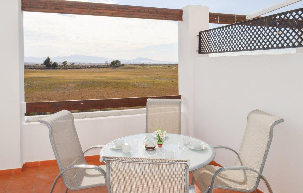 Lejligheden ligger i det sikrede anlæg Condado de Alhama med henrivende haver, legepladser og masser af fritidstilbud: fodbold, paddle-tennis, basketball samt et fitnessrum. En af de fælles swimmingpools ligger kun i kort gåafstand fra lejligheden til glæde for familiens vandhunde. Et indkøbscenter i nærheden byder desuden på restauranter, bageri og et supermarked - frit valg mellem at spise ud og lave maden hjemme.