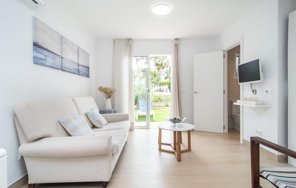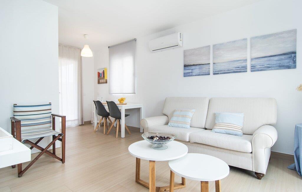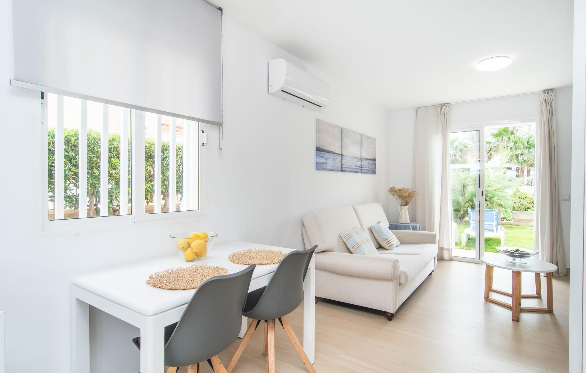 To venner eller et par, der ønsker at være tæt på stranden og i gåafstand til alle faciliteter, vil finde en behagelig flugt i dette dejlige feriehus på Mallorca. Det smukke udendørsområde har to terrasser, hvoraf den ene er overdækket. Afhængigt af solens position og jeres præferencer er disse ideelle til f.eks. fælles måltider. Derudover giver liggestolene på plænen mulighed for at strække sig ud og nyde middelhavslyset. Det smart designede interiør i "Confluentia Playa 8" tilbyder en trendy modtagelse. Den åbne stue og spisestue med integreret køkken indbyder til at tilbringe tid indendørs sammen og er også velegnet til selvforplejning. Masser af hvidt og nogle farverige accenter skaber en hyggelig og munter atmosfære. Gulv-til-loft vinduer slipper en masse behageligt dagslys ind. Tilstedeværelsen af varme og aircondition sikrer perfekte indendørstemperaturer til enhver tid. Soveværelset tilbyder et enkelt, moderne sted at hvile. Et smart badeværelse med brusekabine fuldender den indbydende boligkomfort i denne ferielejlighed for to på Mallorca. Den moderne ferielejlighed "Confluentia Playa 8" er beliggende nær centrum af Can Picafort på den nordlige del af Mallorca. I den mangfoldige landsby finder I restauranter, barer, diskoteker og flere indkøbsmuligheder. Sandstranden ligger inden for gåafstand, og Alcúdia-bugten ligger kun få meter væk. Området omkring Can Picafort er også ideelt til cykling.