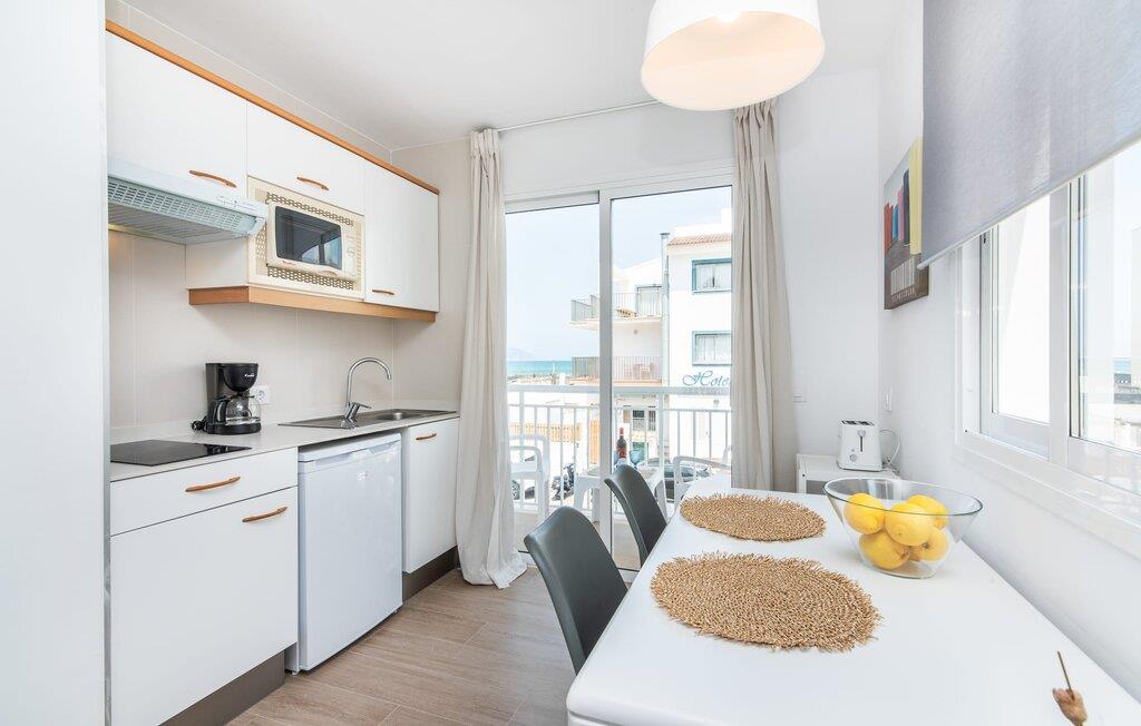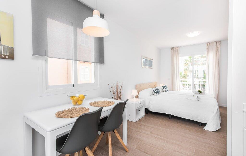 To venner eller et par, der ønsker at være tæt på stranden og have alle bekvemmeligheder inden for gåafstand, vil finde en behagelig flugt i denne smukke ferielejlighed på Mallorca. Fra den lille østvendte altan, hvor man kan spise en dejlig morgenmad for to ved solopgang, har man udsigt til stranden kun få skridt væk, det turkise hav og Victoriahalvøen i baggrunden. Havsiden er næsten lige ved jeres fødder. Takket være et sofistikeret rumkoncept byder ferielejligheden "Confluentia Playa 9" på en hyggelig opholdsstue med masser af naturligt lys. Det er i åbent plan og består af et velholdt sove- og spiseområde udstyret med tysk og engelsk satellit-tv og integreret køkken med direkte udgang til altan. Dette er et fantastisk sted at tilbringe tid sammen indendørs og ideelt til selvforplejning. Masser af hvidt og nogle farverige accenter skaber en frisk, sommerlig flair. Tilstedeværelsen af varme og aircondition sikrer perfekte indendørstemperaturer til enhver tid. Et smart, moderne badeværelse med brusekabine fuldender den indbydende boligkomfort i denne ferielejlighed for to på Mallorca. Den moderne ferielejlighed "Confluentia Playa 9" er beliggende nær centrum af Can Picafort og direkte på Mallorcas nordkyst. I denne smukke landsby finder I restauranter, barer, diskoteker og en række indkøbsmuligheder. Sandstranden ligger inden for gåafstand, og Alcúdia-bugten ligger kun få meter væk. Området omkring Can Picafort er også ideelt til cykling.