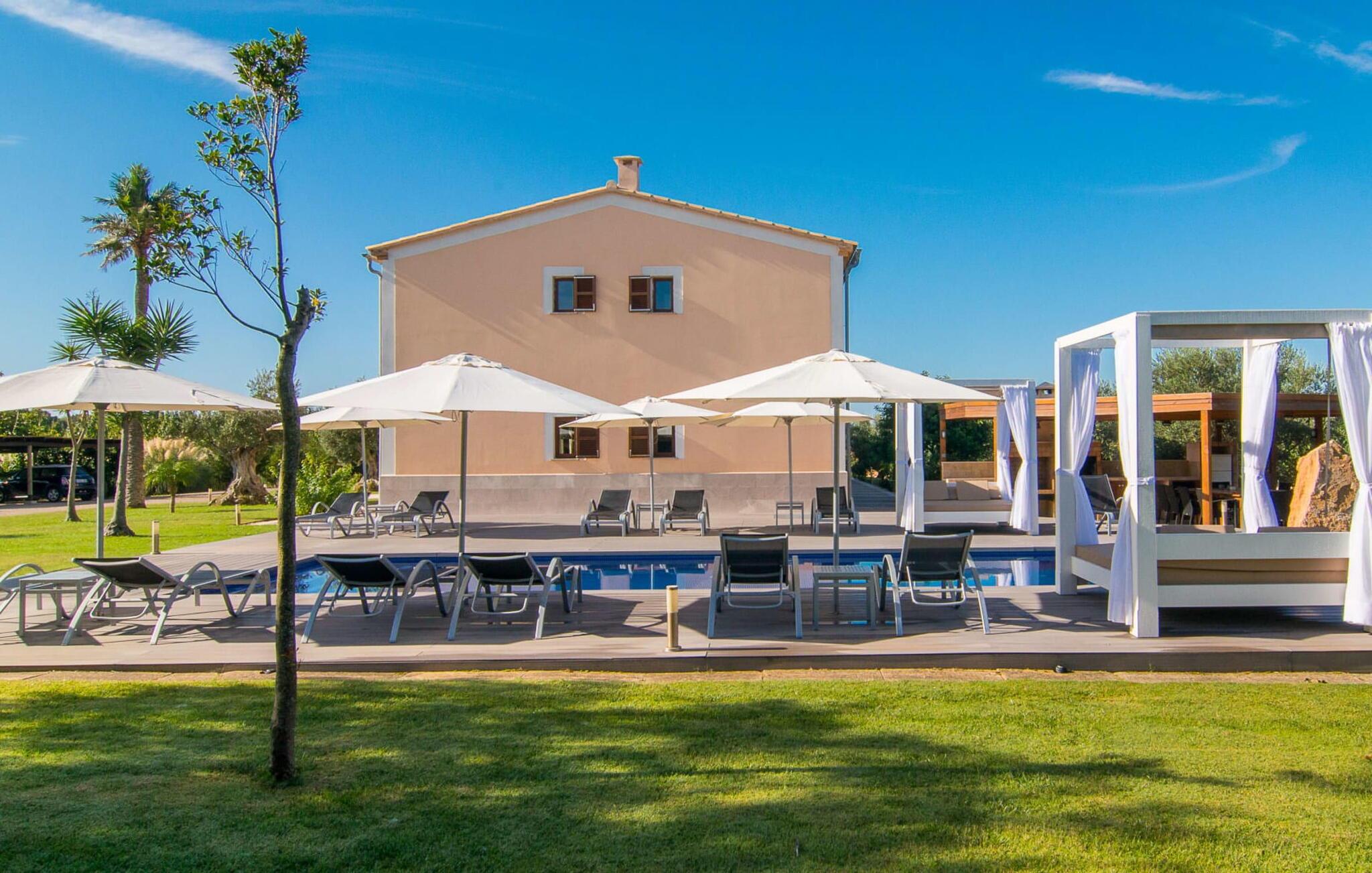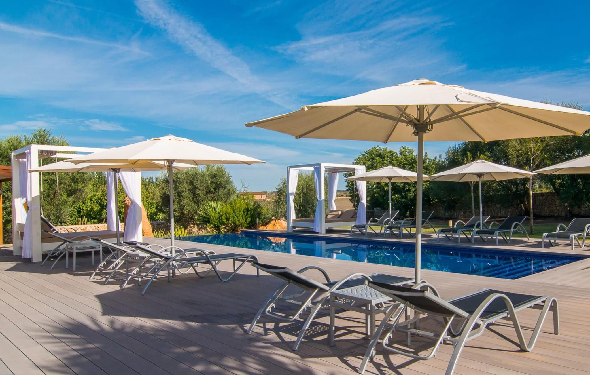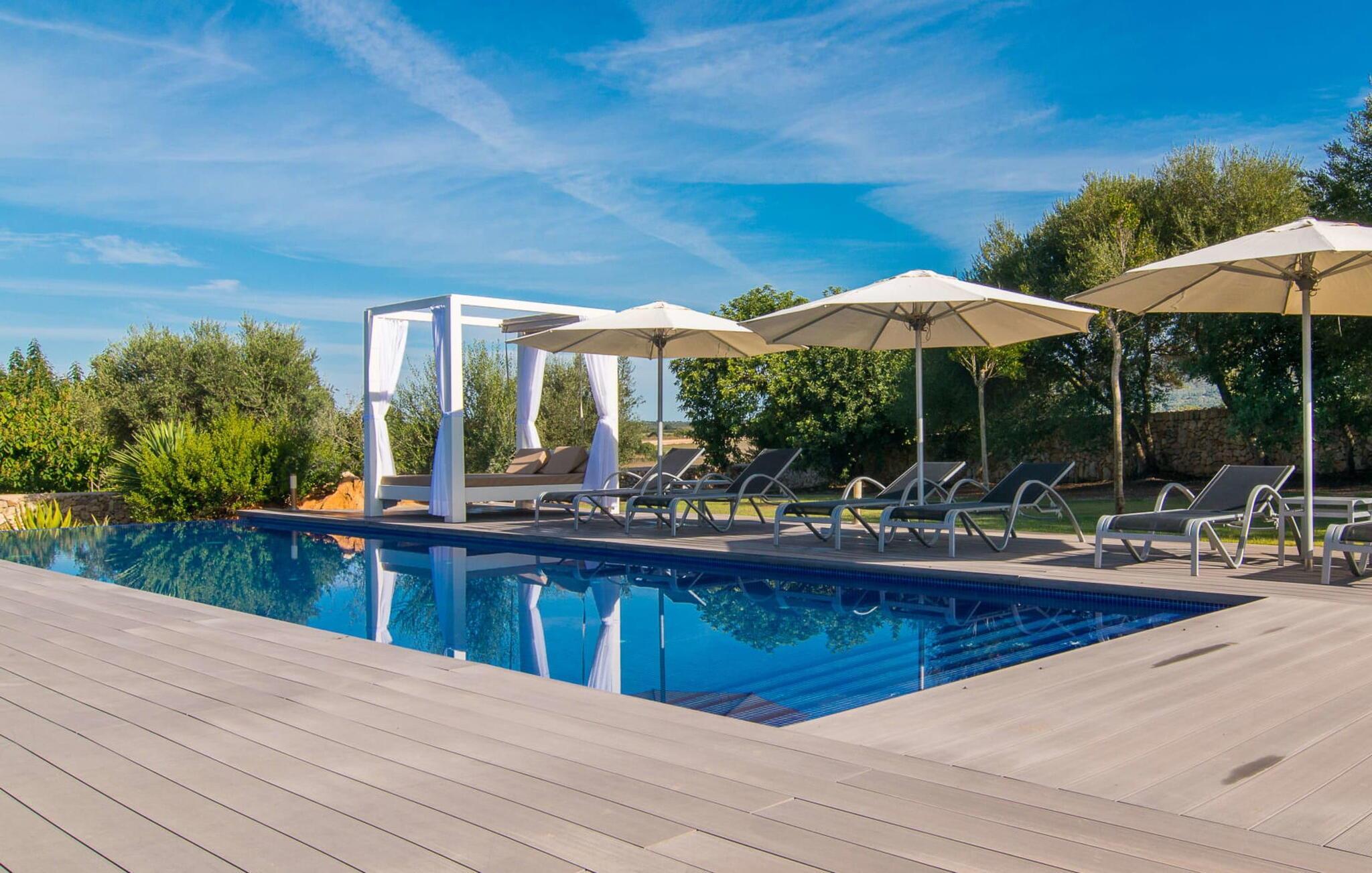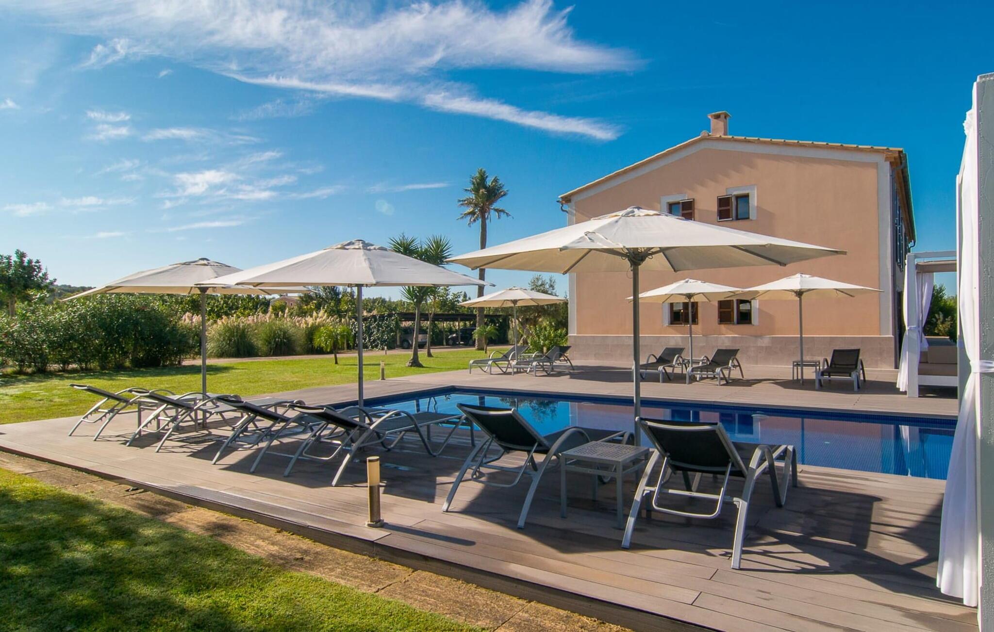 Denne luksuriøse villa "Conies Romani" er beliggende på en 20.000 m² stor grund mellem Manacor og Colonia Sant Pere og tilbyder ultimativ komfort i en fantastisk beliggenhed i udkanten af Son Cifre naturreservat. Dette er et feriehus i Fincallorca. Villaen blev færdiggjort i 2010 og kombinerer moderne design med fuldstændig privatliv, omgivet af store terrasser, der fører til et afsondret poolområde. Poolen med komfortable indgangstrin er omgivet af en frodig græsplæne og modne træer og tilbyder et perfekt afslapningsrum. Slap af på den balinesiske seng eller liggestole, mens en parasol giver skygge, hvis det er nødvendigt. Et højdepunkt ved villaen er det overdækkede udekøkken med grill, køleskab og opvaskemaskine, som er perfekt til fællesspisning på lune aftener. Indenfor er den rummelige, airconditionerede opholdsstue med komfortable siddepladser, en pejs og moderne bekvemmeligheder. Det fuldt udstyrede køkken og den store spiseplads er velegnet til en ferie med egen forplejning. Villaen har seks stilfulde, airconditionerede, stilfuldt designede en-suite soveværelser, to i stueetagen. og fire luksuriøse suiter med dobbeltseng (1,80 x 2,00 m) og boblebad på øverste etage. Med centralvarme overalt sikrer villaen komfort hele året rundt. Villaen er beliggende i den naturligt smukke Son Cifre-region i den østlige del af Mallorca. Dette naturreservat strækker sig fra Artà til Manacor. Manacor ligger kun 4 km væk og byder på flere store supermarkeder samt nogle meget gode restauranter. Med en lejebil kan du hurtigt nå strandene i sydøst, såsom Cala Varquez, eller i nordøst, såsom Son Serra de Marina. Bugten Colonia de St. Pere, en lille søvnig fiskerlandsby, ligger kun 15 minutter væk i bil.