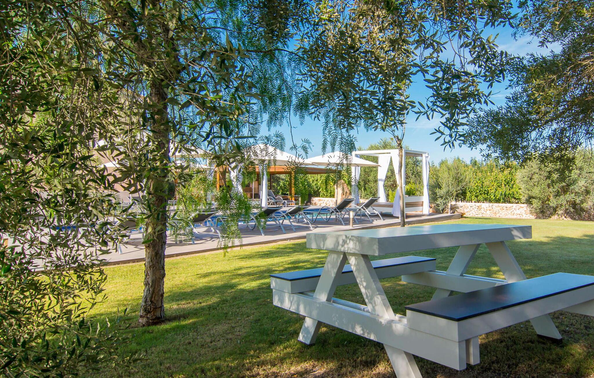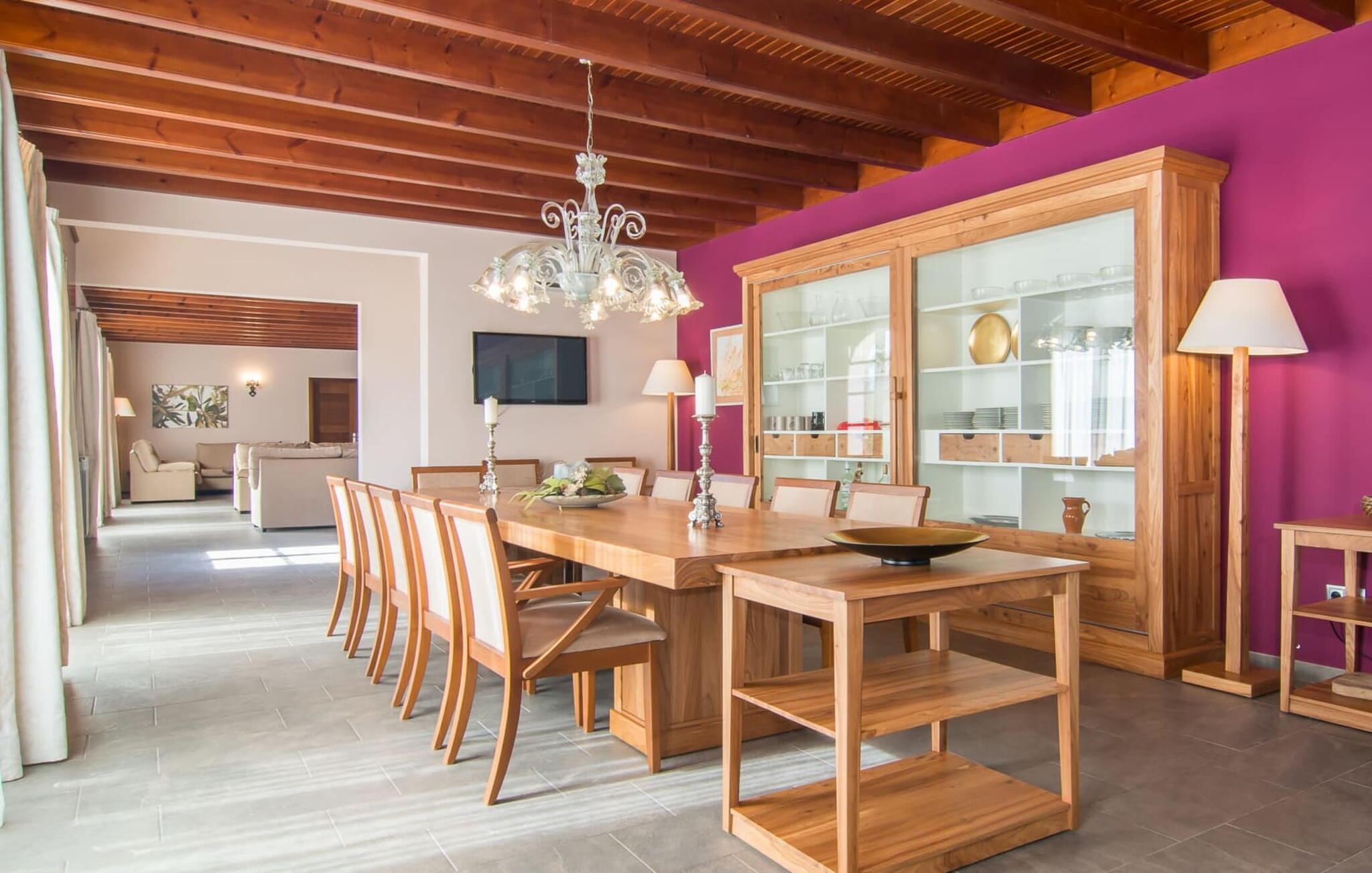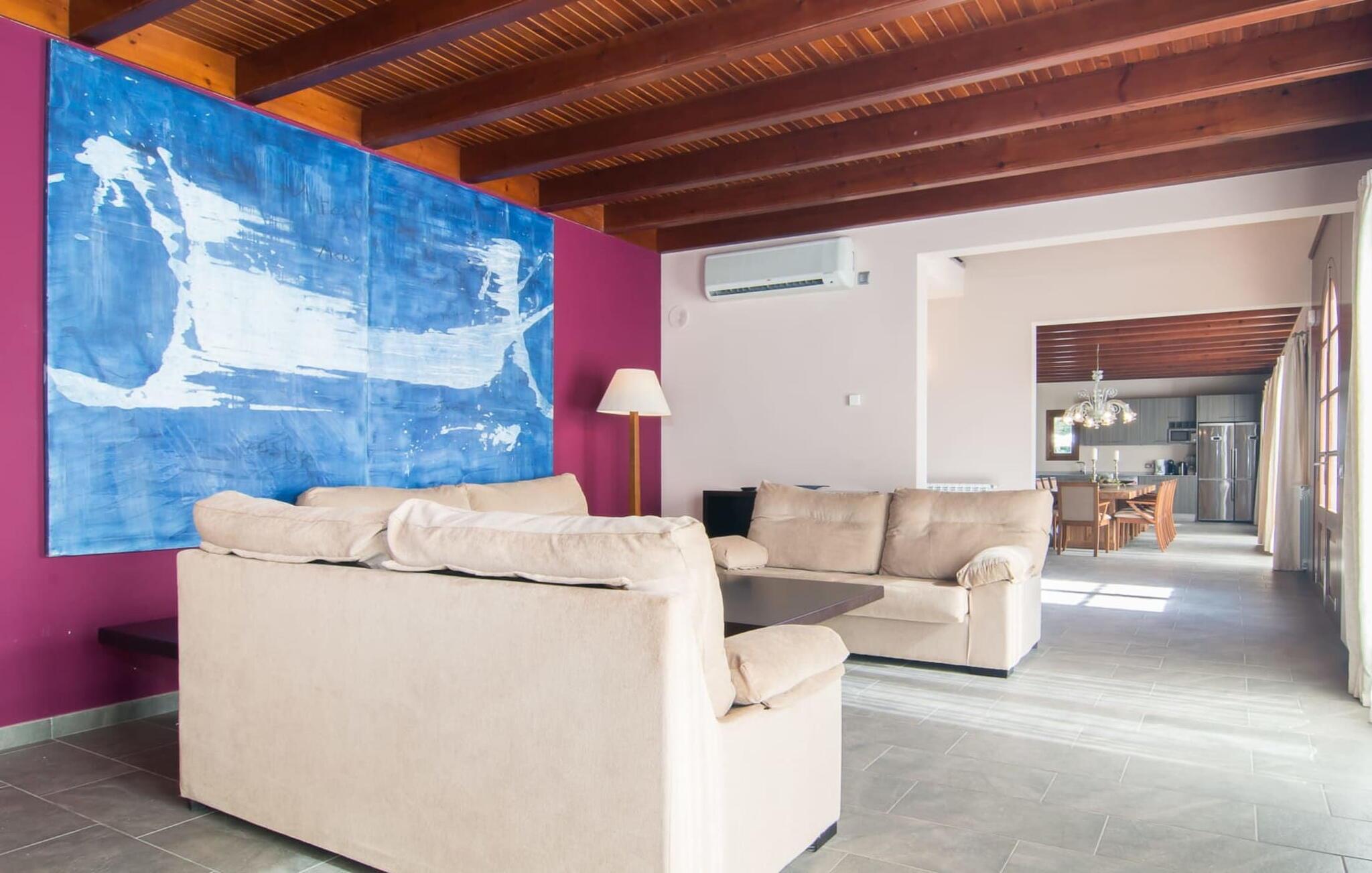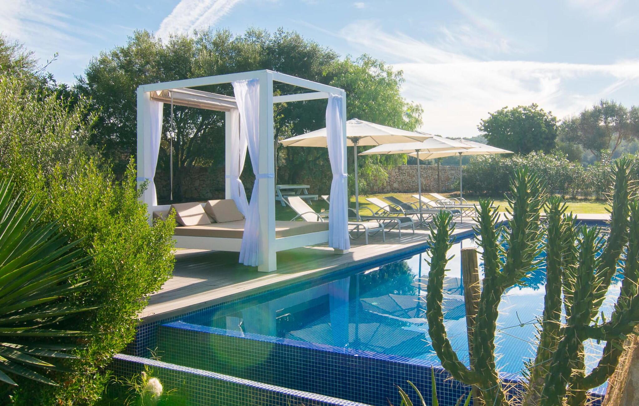 Denne luksuriøse villa "Conies Romani" er beliggende på en 20.000 m² stor grund mellem Manacor og Colonia Sant Pere og tilbyder ultimativ komfort i en fantastisk beliggenhed i udkanten af Son Cifre naturreservat. Dette er et feriehus i Fincallorca. Villaen blev færdiggjort i 2010 og kombinerer moderne design med fuldstændig privatliv, omgivet af store terrasser, der fører til et afsondret poolområde. Poolen med komfortable indgangstrin er omgivet af en frodig græsplæne og modne træer og tilbyder et perfekt afslapningsrum. Slap af på den balinesiske seng eller liggestole, mens en parasol giver skygge, hvis det er nødvendigt. Et højdepunkt ved villaen er det overdækkede udekøkken med grill, køleskab og opvaskemaskine, som er perfekt til fællesspisning på lune aftener. Indenfor er den rummelige, airconditionerede opholdsstue med komfortable siddepladser, en pejs og moderne bekvemmeligheder. Det fuldt udstyrede køkken og den store spiseplads er velegnet til en ferie med egen forplejning. Villaen har seks stilfulde, airconditionerede, stilfuldt designede en-suite soveværelser, to i stueetagen. og fire luksuriøse suiter med dobbeltseng (1,80 x 2,00 m) og boblebad på øverste etage. Med centralvarme overalt sikrer villaen komfort hele året rundt. Villaen er beliggende i den naturligt smukke Son Cifre-region i den østlige del af Mallorca. Dette naturreservat strækker sig fra Artà til Manacor. Manacor ligger kun 4 km væk og byder på flere store supermarkeder samt nogle meget gode restauranter. Med en lejebil kan du hurtigt nå strandene i sydøst, såsom Cala Varquez, eller i nordøst, såsom Son Serra de Marina. Bugten Colonia de St. Pere, en lille søvnig fiskerlandsby, ligger kun 15 minutter væk i bil.