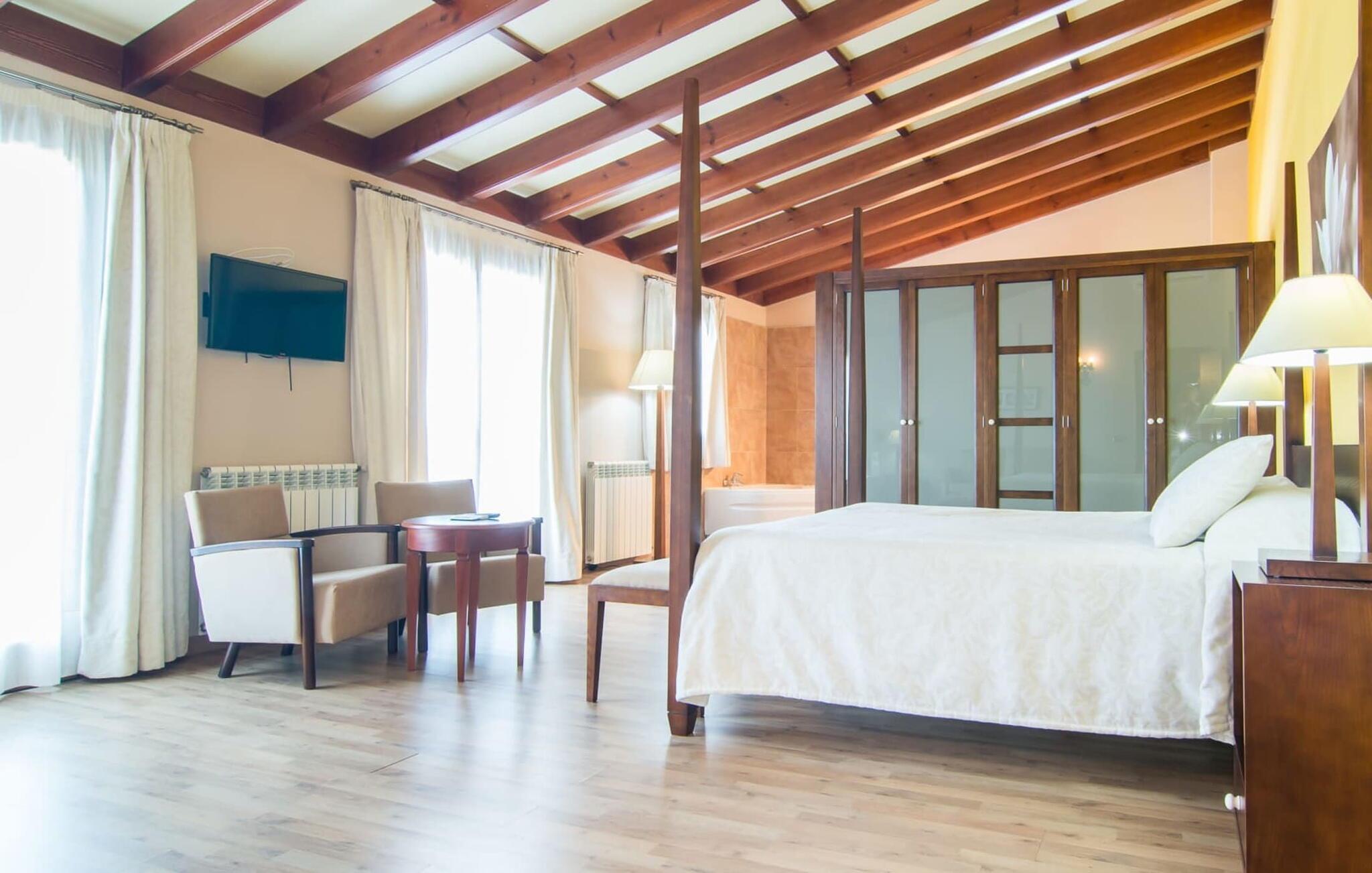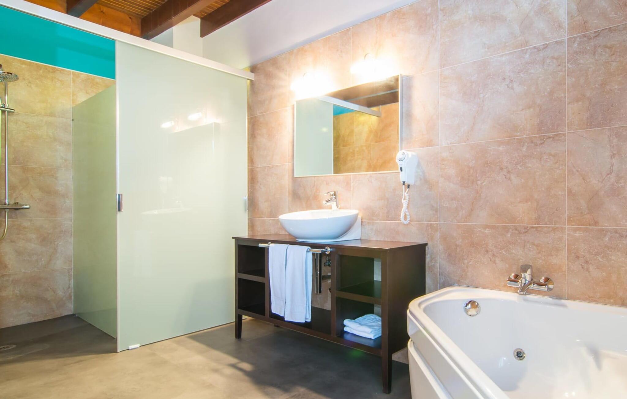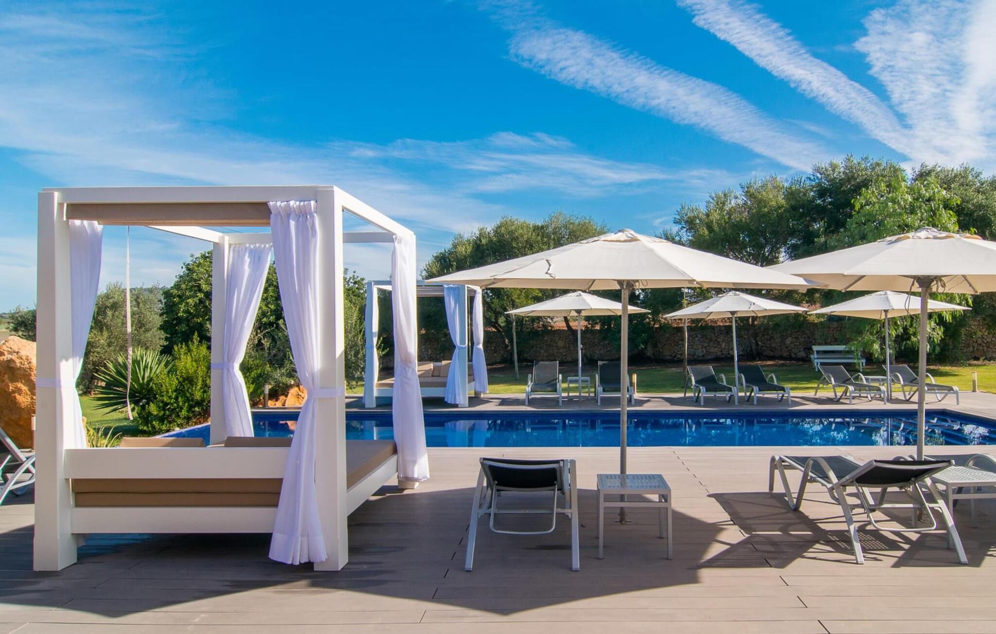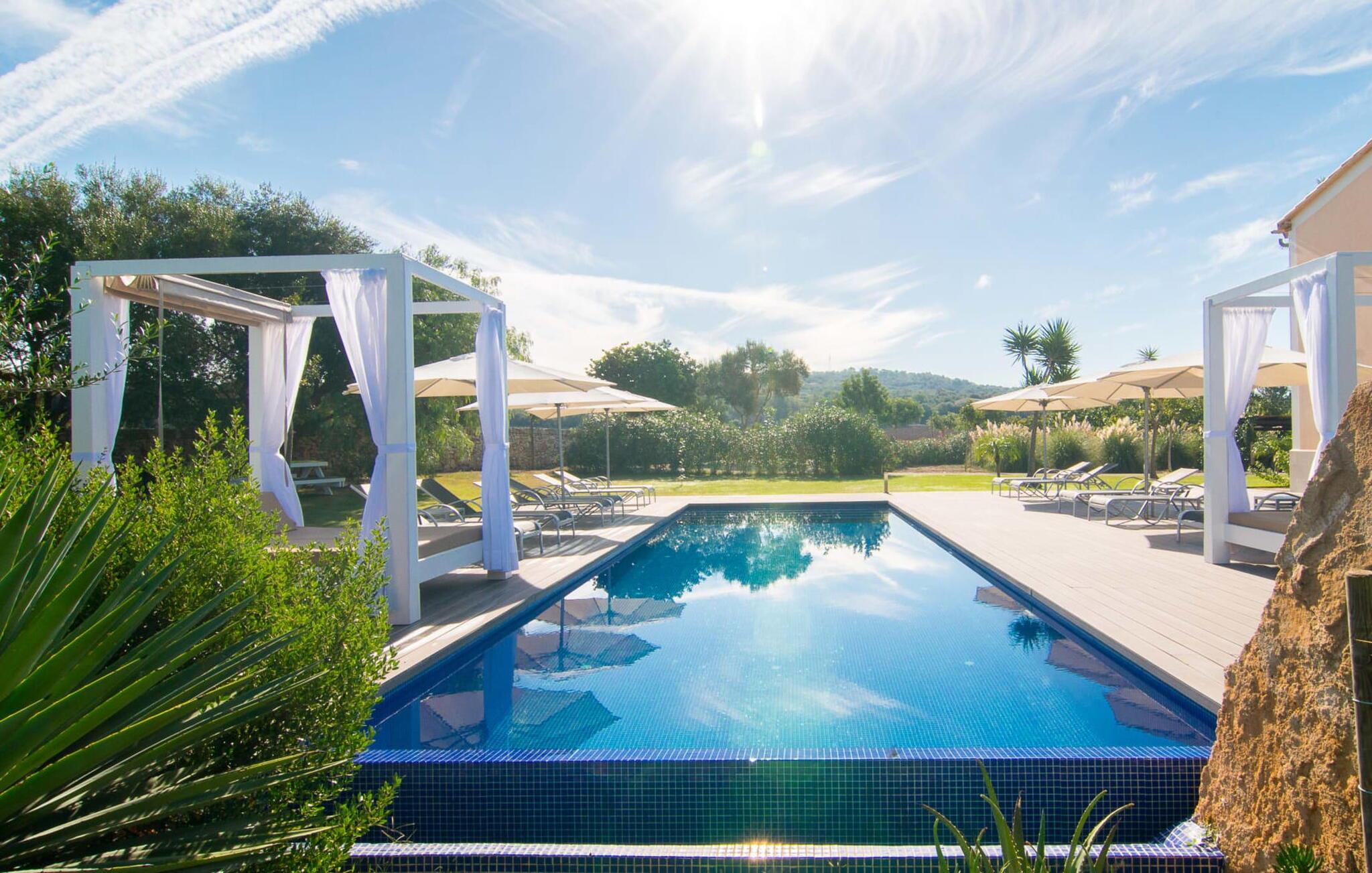 Denne luksuriøse villa "Conies Romani" er beliggende på en 20.000 m² stor grund mellem Manacor og Colonia Sant Pere og tilbyder ultimativ komfort i en fantastisk beliggenhed i udkanten af Son Cifre naturreservat. Dette er et feriehus i Fincallorca. Villaen blev færdiggjort i 2010 og kombinerer moderne design med fuldstændig privatliv, omgivet af store terrasser, der fører til et afsondret poolområde. Poolen med komfortable indgangstrin er omgivet af en frodig græsplæne og modne træer og tilbyder et perfekt afslapningsrum. Slap af på den balinesiske seng eller liggestole, mens en parasol giver skygge, hvis det er nødvendigt. Et højdepunkt ved villaen er det overdækkede udekøkken med grill, køleskab og opvaskemaskine, som er perfekt til fællesspisning på lune aftener. Indenfor er den rummelige, airconditionerede opholdsstue med komfortable siddepladser, en pejs og moderne bekvemmeligheder. Det fuldt udstyrede køkken og den store spiseplads er velegnet til en ferie med egen forplejning. Villaen har seks stilfulde, airconditionerede, stilfuldt designede en-suite soveværelser, to i stueetagen. og fire luksuriøse suiter med dobbeltseng (1,80 x 2,00 m) og boblebad på øverste etage. Med centralvarme overalt sikrer villaen komfort hele året rundt. Villaen er beliggende i den naturligt smukke Son Cifre-region i den østlige del af Mallorca. Dette naturreservat strækker sig fra Artà til Manacor. Manacor ligger kun 4 km væk og byder på flere store supermarkeder samt nogle meget gode restauranter. Med en lejebil kan du hurtigt nå strandene i sydøst, såsom Cala Varquez, eller i nordøst, såsom Son Serra de Marina. Bugten Colonia de St. Pere, en lille søvnig fiskerlandsby, ligger kun 15 minutter væk i bil.