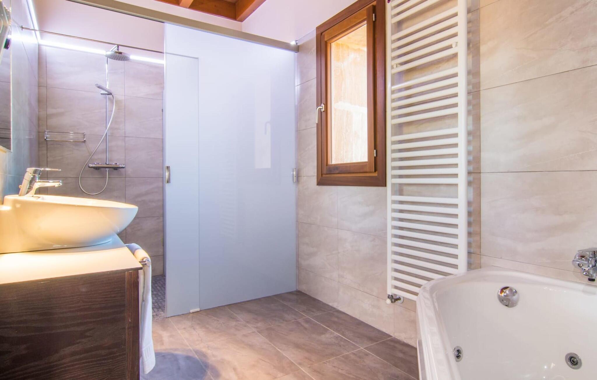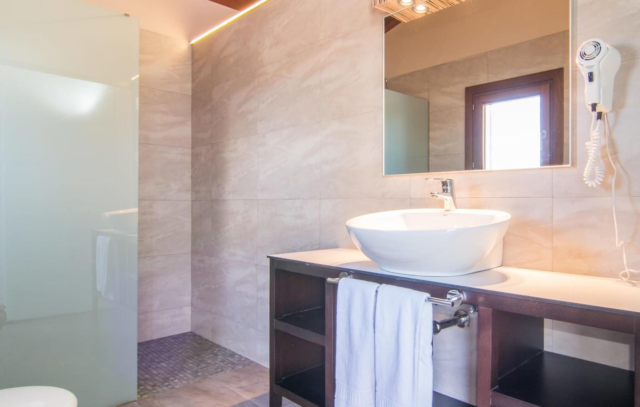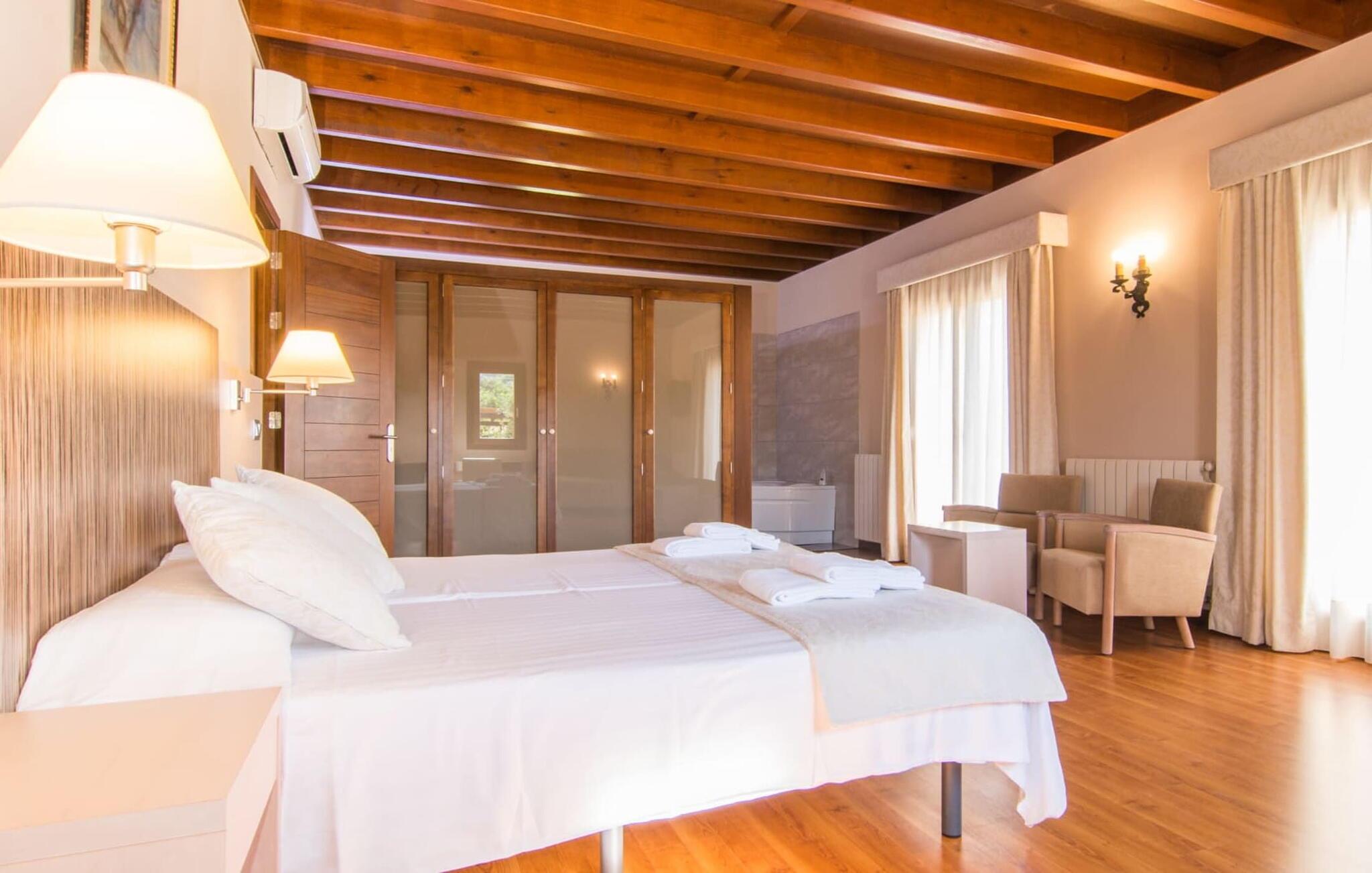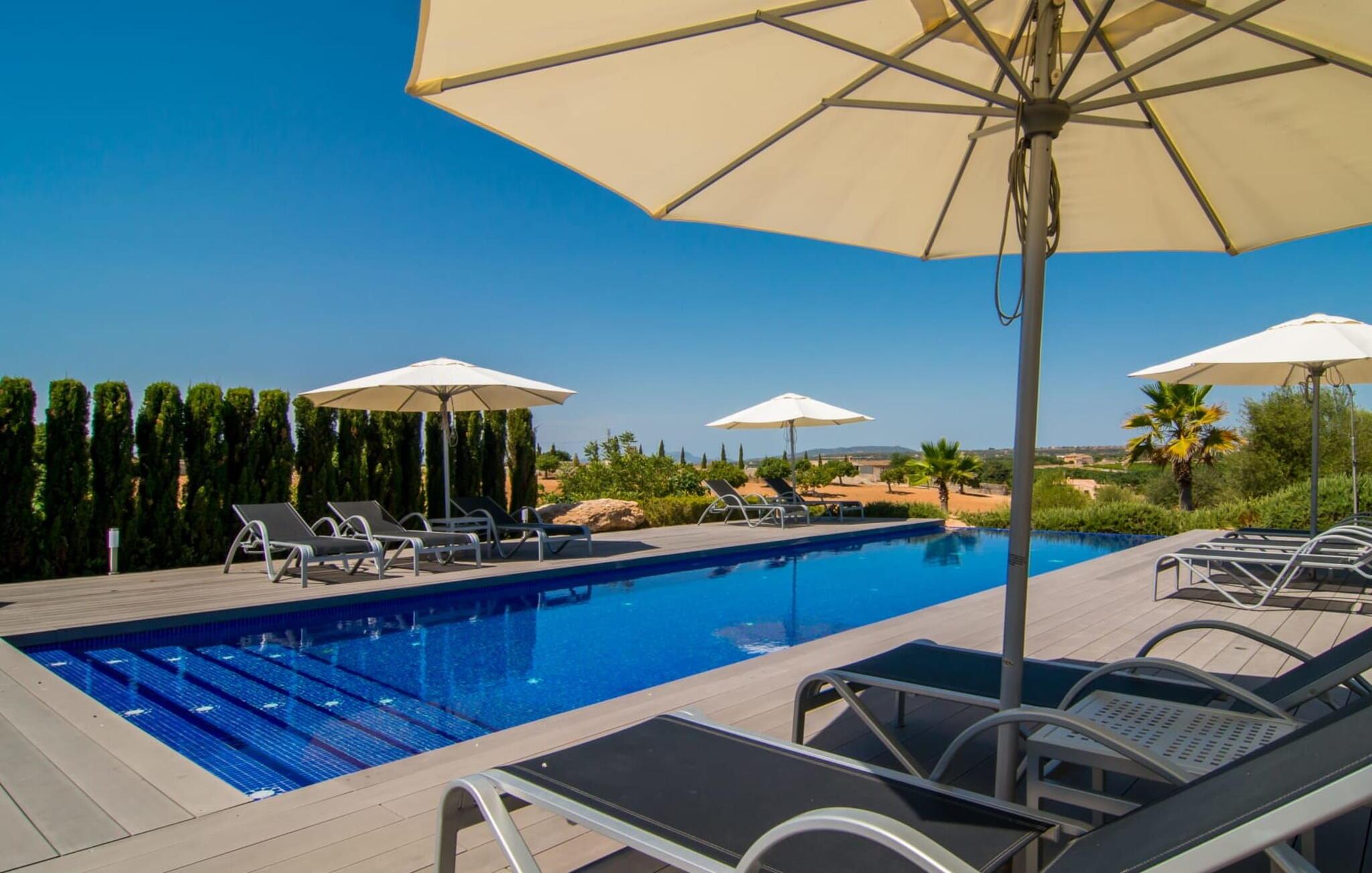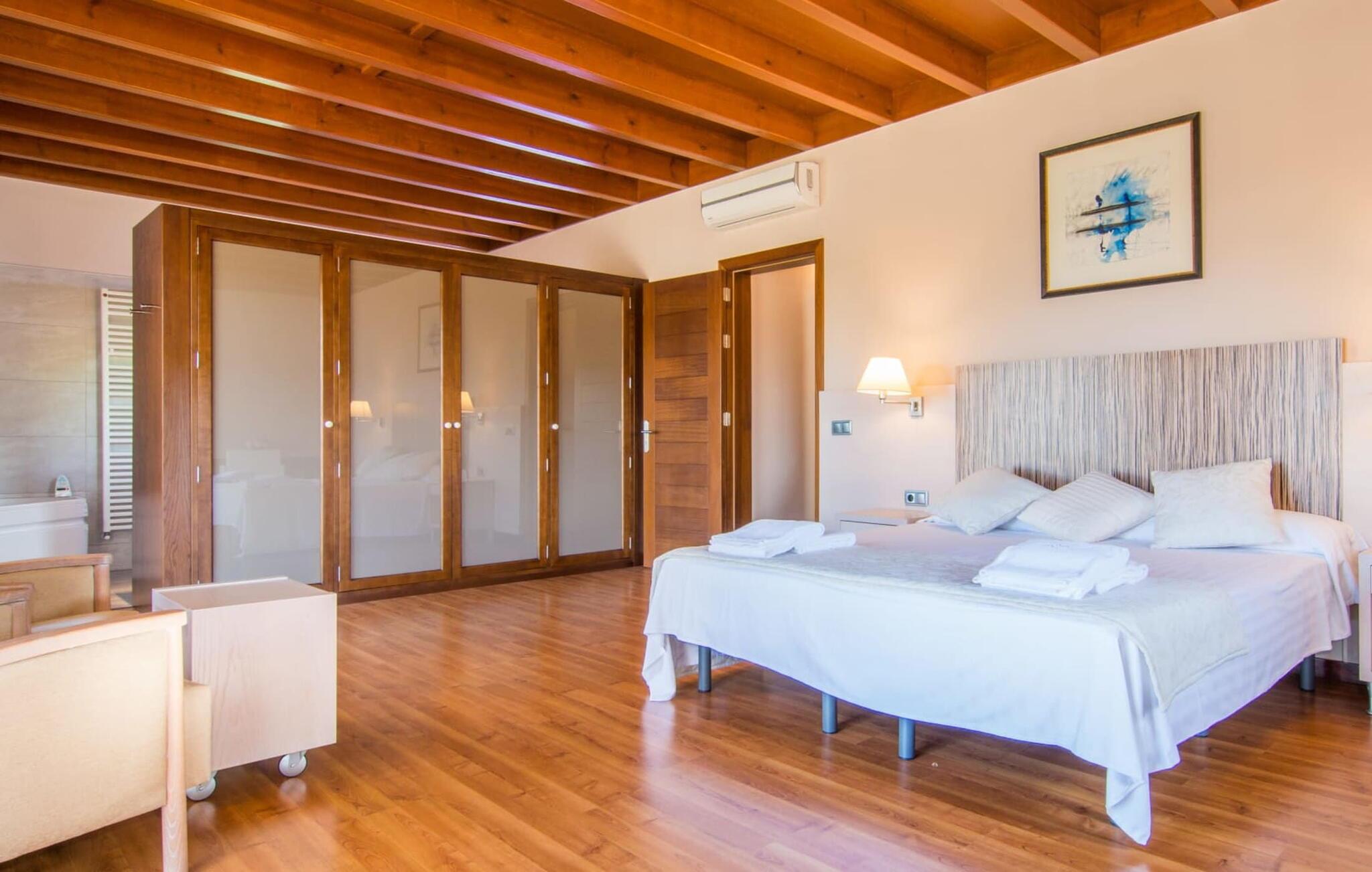 Denne luksuriøse villa "Conies Salvia" er beliggende på en 20.000 m² stor grund mellem Manacor og Colonia Sant Pere og tilbyder et tilflugtssted, der er uden sidestykke på Mallorca. Bygget i 2010 i udkanten af Son Cifre-naturreservatet, kombinerer det moderne design med fuldstændig privatliv. Dette er et feriehus i Fincallorca. Store terrasser omgiver villaen og fører til et separat poolområde med en velplejet græsplæne og modne træer, hvilket skaber et roligt miljø, hvor man kan slappe af. Det overdækkede udekøkken med grill og rummeligt spisebord er perfekt til at nyde måltider på lune aftener. Indvendigt har villaen rummelige, moderne værelser. Opholdsstuen har komfortable sofaer, pejs og fladskærms-tv. Det fuldt udstyrede køkken med stilfulde røde fliser tilbyder alle de faciliteter, du har brug for til en ferie med selvforplejning. I stueetagen er der tre soveværelser med hvert sit badeværelse. Ovenpå er der fire store suiter med dobbeltsenge (1,8 x 2 m), sofa, fladskærms-tv, pengeskab, minibar og luksuriøst badeværelse med spabad. Med centralvarme overalt er denne villa det ideelle tilflugtssted for komfort året rundt. Luksusvillaen ligger midt i den naturligt smukke Son Cifre-region i den østlige del af Mallorca. Dette naturreservat strækker sig fra Artà til Manacor. Hvis du vil shoppe, har Manacor flere store supermarkeder og meget hyggelige restauranter, både mallorcanske og internationale. Med en lejebil kan du nemt og hurtigt nå strande i sydøst, såsom Cala Varquez, eller i nordøst, såsom Son Serra de Marina. Bugten Colonia de Sant Pere, en lille rolig fiskerby, ligger kun 15 minutters kørsel derfra.