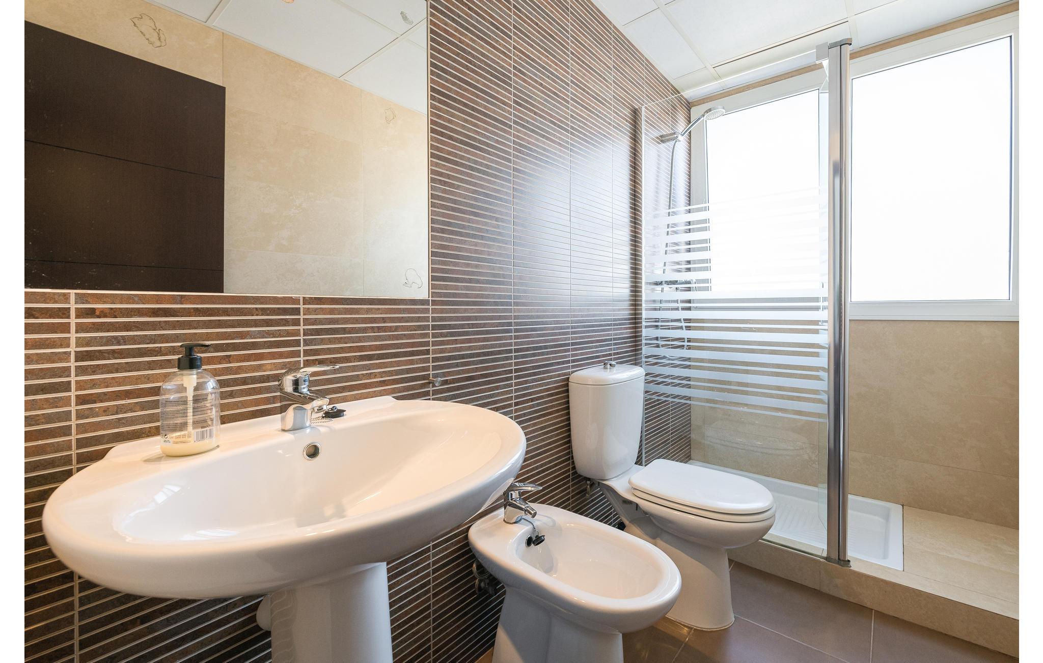 Huset er stilfuldt og moderne og har alt, I behøver, for at få en dejlig og vellykket ferie. Feriehuset er rummeligt og har 4 soveværelser og 3 badeværelser. Et kæledyr er også velkomment her. Takket være aircondition er temperaturen i sommerhuset altid behagelig, selv om sommeren.