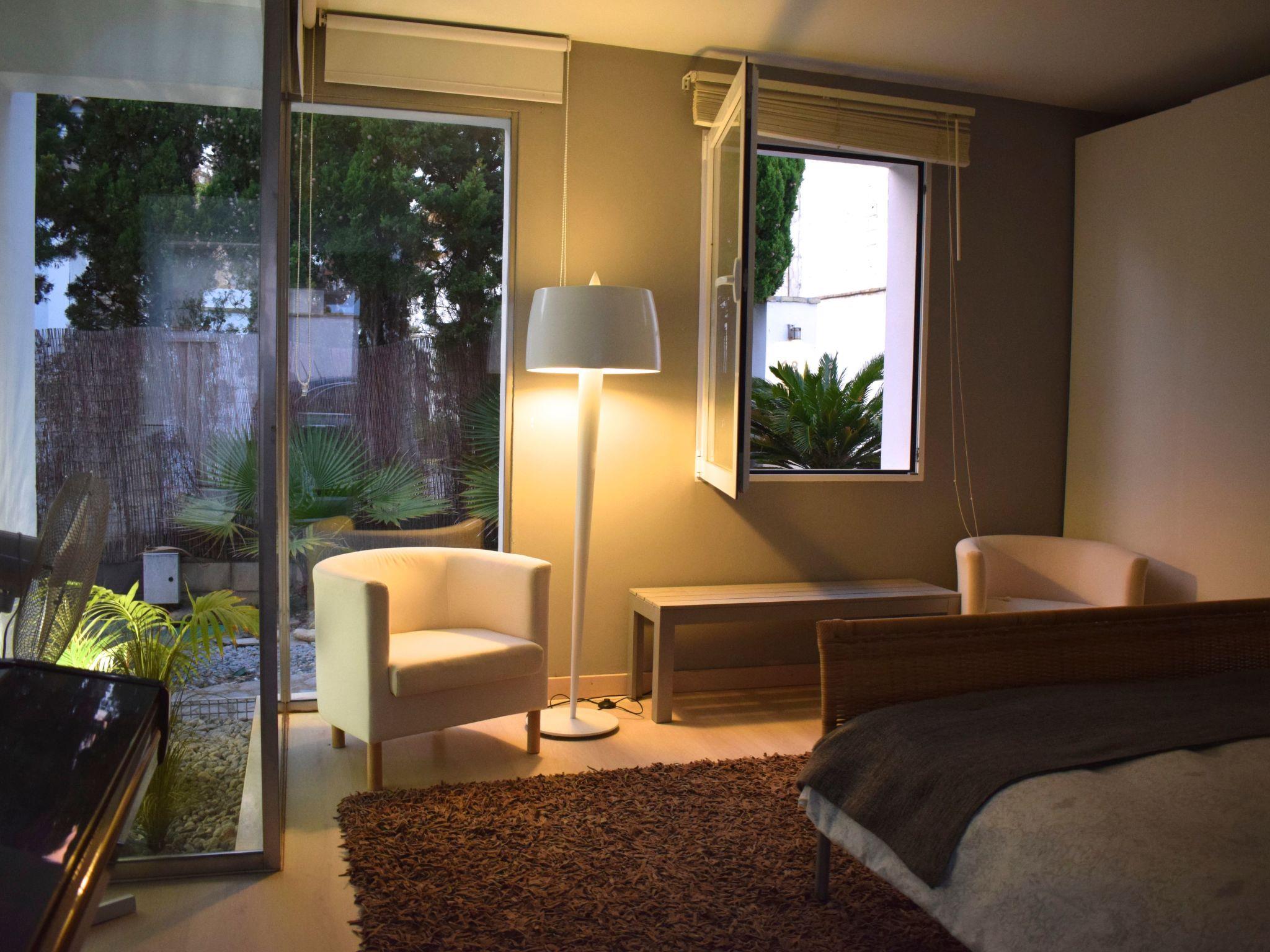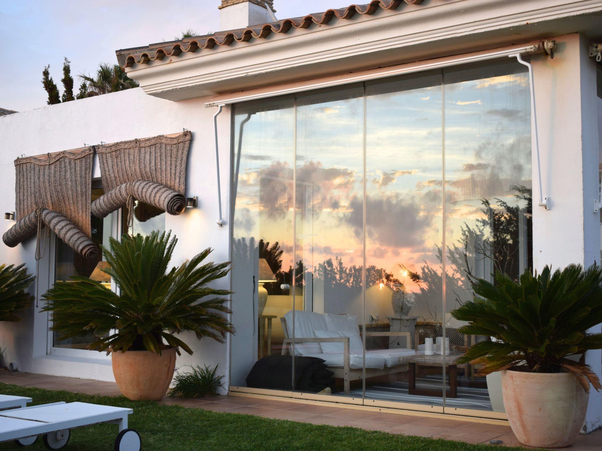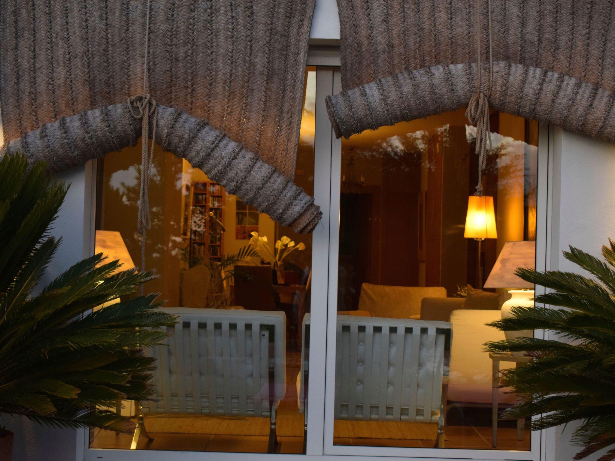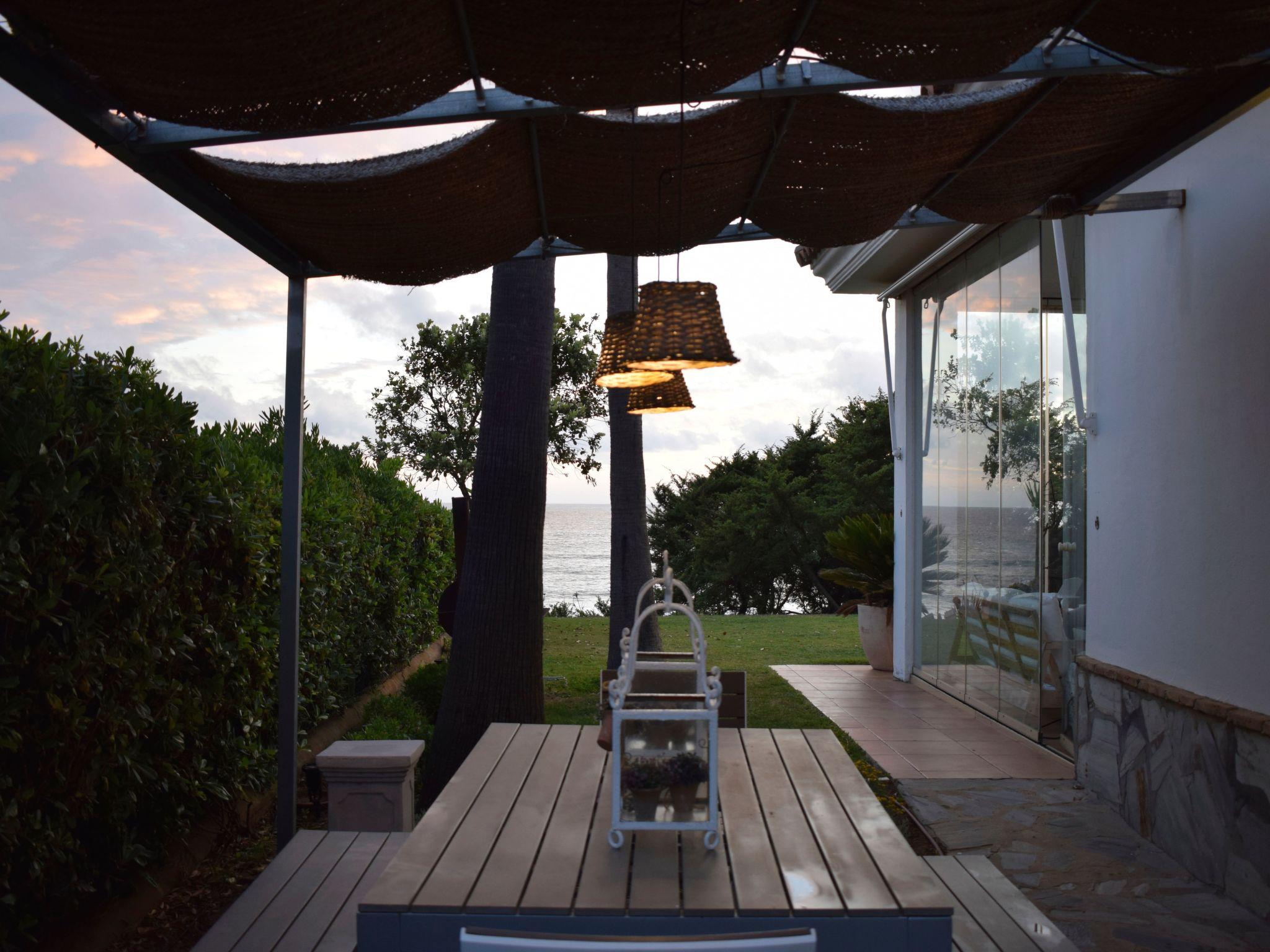 Living is oriented towards the sea. Next to the kitchen door there is an outdoor dining area with a barbecue next to it. Under the juniper trees there is a sitting area to fight the intense sun and relax. At the entrance to the house there are ponds that provide freshness and a certain Andalusian style. The access to the beach is by a staircase made of wooden sleepers, overcoming the height of the cliff.