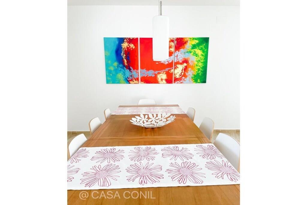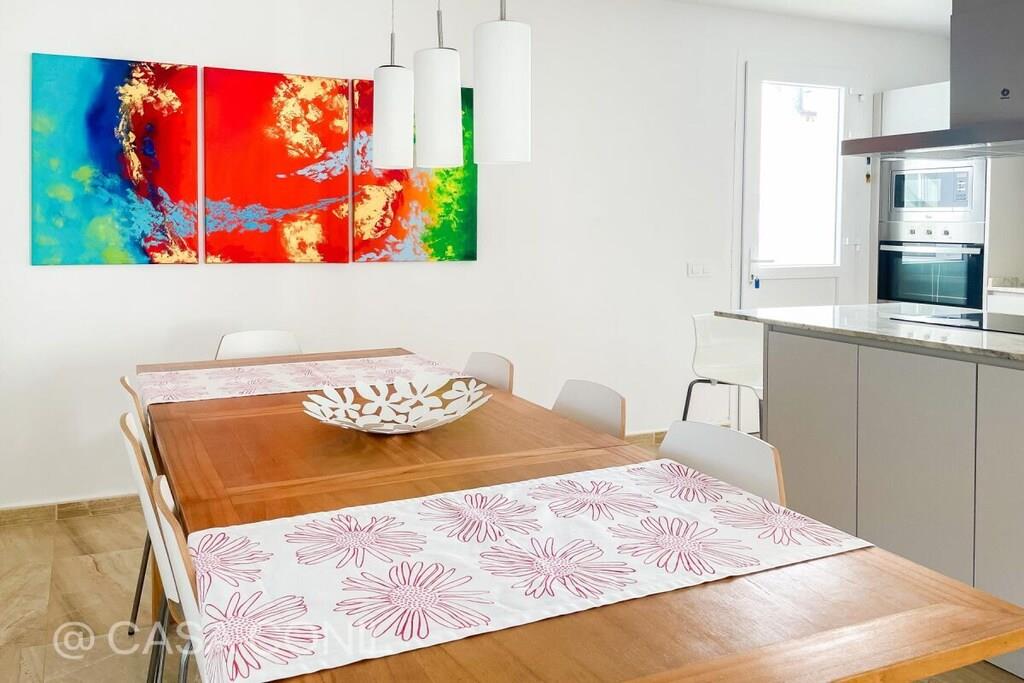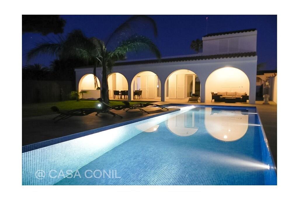 Denne poolvilla ligger i det eksklusive boligområde Fuente del Gallo. Den er nyrenoveret i moderne stil og lader ikke meget tilbage at ønske, hvad angår beliggenhed og faciliteter. Et særligt højdepunkt er den 11 meter lange pool og den rummelige veranda med grillplads og komfortable loungemøbler. Med fire soveværelser og to stuer tilbyder villaen rigelig plads til op til otte personer. Den smukke sandstrand Fuente del Gallo ligger kun omkring 200 meter fra huset. Der er 3 airconditionanlæg (i soveværelset, centralt placeret i gangen til de andre soveværelser, og i stuen), Wi-Fi, 2 satellit-tv'er, et topmoderne køkken med kogeø, induktionskogeplade, opvaskemaskine, ovn i arbejdshøjde, mikrobølgeovn, Nespresso-maskine osv. To soveværelser med dobbeltsenge (henholdsvis 1,80 m og 1,60 m brede og 2 m lange) og to soveværelser med to enkeltsenge hver (0,90 m x 1,90 m), så det er velegnet til op til 8 personer. To moderne badeværelser med store regnbrusere. To stuer med sofaer, fladskærms-tv'er, dvd-afspillere og iPad-dockingstationer. Havudsigt fra tagterrassen, som også har en skyggefuld veranda og et chill-out-område. En 11 meter lang (x 3,5 m bred) swimmingpool ligger foran terrassen. En solopvarmet udendørs bruser er tilgængelig i poolområdet. Haven har stole, borde, liggestole, en græsplæne og subtropiske planter. Huset er i alt cirka 180 kvadratmeter stort, plus 40 kvadratmeter overdækkede terrasser. Ejendommen måler cirka 700 kvadratmeter. Ud over køkken og spisebord (til 8 personer) er der et udendørs køkken med en dejlig gasgrill. Huset er fuldt indhegnet og tilbyder fred og ro. Registreringsnummer: VFT/CA/00564