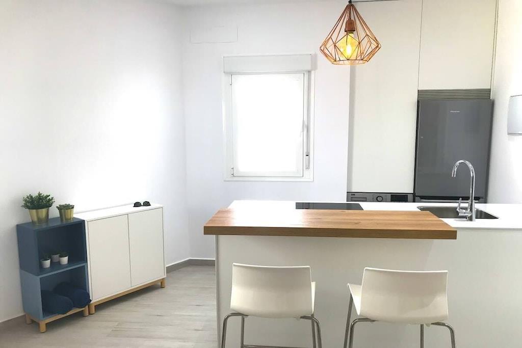 Dette nybyggede, private rækkehus er fremragende udstyret og smagfuldt møbleret og ligger i det populære fiskerkvarter Conils. Det tilbyder en komfortabel ferie i andalusisk atmosfære for 2-3 personer (2 voksne og et barn), kun få skridt fra stranden og en kort gåtur fra Conils' gamle bydel. Begge private terrasser er møbleret – den største tilbyder havudsigt, chill-out-møbler og liggestole til at nyde udendørslivet. Detaljer: - Soveværelse med dobbeltseng (1,80 x 2,0 m) - kan laves om til to enkeltsenge (0,90 m hver), med stort klædeskab, aircondition og Wi-Fi internet - Badeværelse med moderne bruser - Stue med sofa (kan laves om til en barneseng), Smart TV med tyske og internationale satellitkanaler og hurtigt Wi-Fi internet via fiberoptisk forbindelse - Moderne, åbent køkken med opvaskemaskine, vaskemaskine, ovn, induktionskogeplade, stort køleskab med fryser og alle andre nødvendige køkkenapparater og redskaber Adgang til terrasserne sker via en privat trappe inde i huset. Den nederste terrasse er møbleret med et spisebord og komfortable stole. Få trin højere op kommer du til den øvre, større terrasse med havudsigt. Her finder du en sofa og lænestole, et ekstra bord og to moderne liggestole. Huset er ideelt egnet til par med et lille barn, da komplet babyudstyr (barneseng, højstol) er inkluderet. Registreringsnummer: VFT/CA/04250