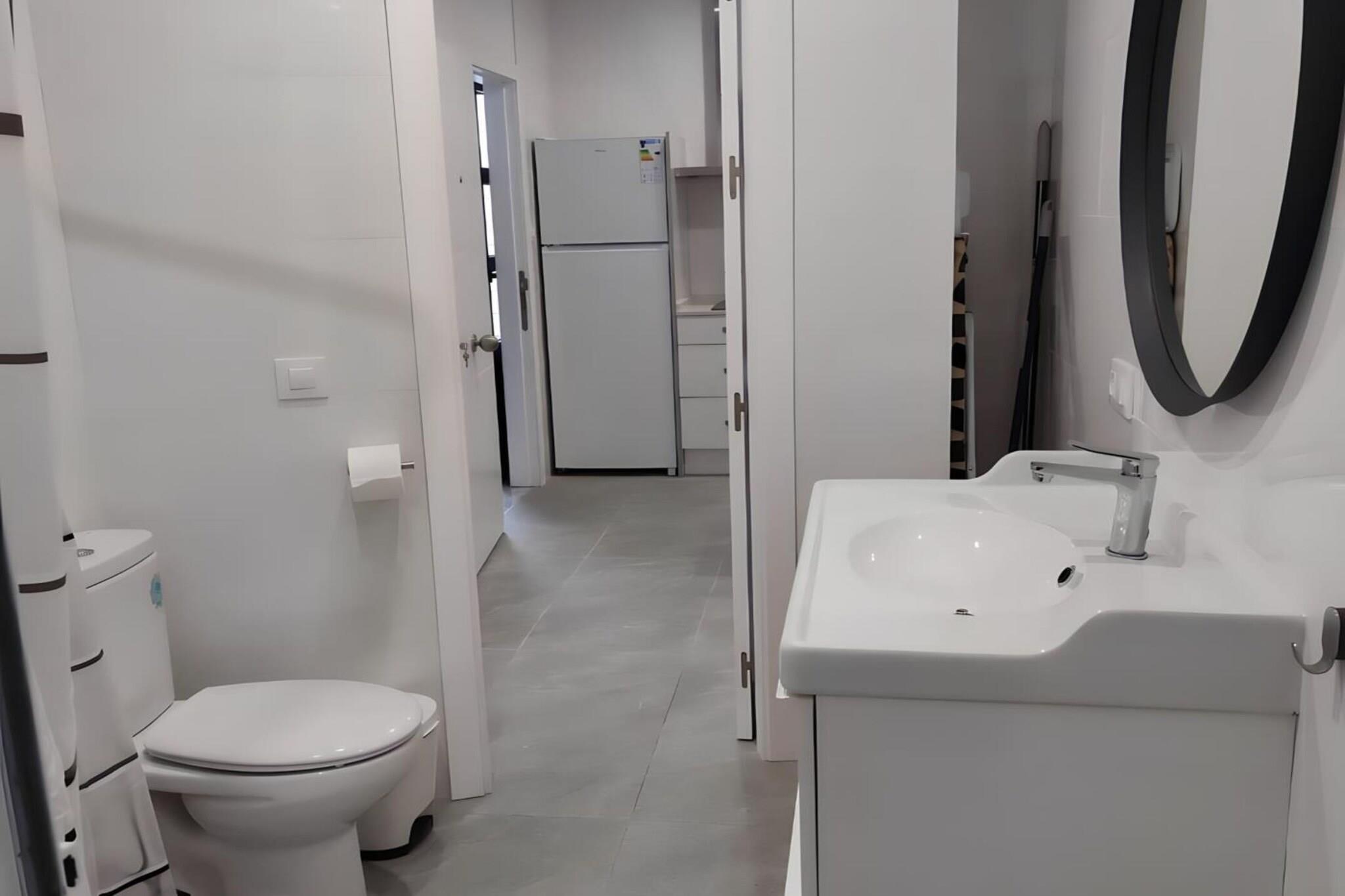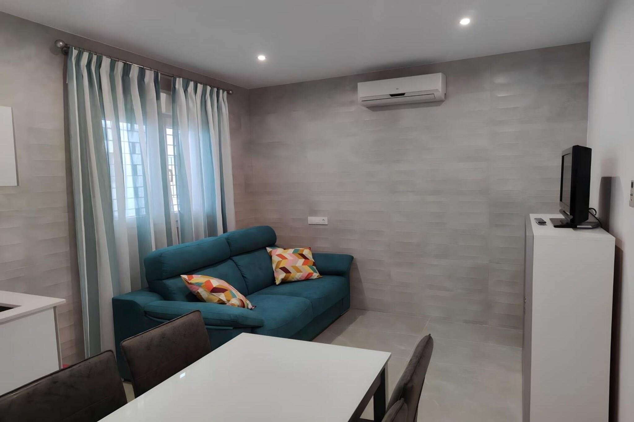 Denne moderne lejlighed med terrasse tilbyder et praktisk og komfortabelt ophold i Conil de la Frontera, perfekt til par, venner eller små familier. Den er lys og gennemtænkt indrettet og har alt, hvad du behøver for at nyde din ferie tæt på havet. Lejligheden har to soveværelser: det ene med en 150 cm seng og det andet med en 135 cm seng, begge med garderobeskabe og store spejle. Et fuldt udstyret badeværelse med bruser åbner ud til en lille gårdhave, hvor du finder en vaskemaskine for ekstra bekvemmelighed. Det åbne køkken og stuen er fuldt udstyret med mikroovn, opvaskemaskine, induktionskomfur, køleskab, sovesofa (135 cm), tv, wi-fi og aircondition, mens soveværelserne er udstyret med loftsventilatorer for at sikre komfort. Sengelinned er inkluderet, men gæsterne skal medbringe deres egne håndklæder. Ejendommen er fuldt elektrisk, med varmt vand fra solceller, hvilket gør den til et miljøvenligt valg. En fælles tagterrasse med bord og stole er også tilgængelig på begrænsede tidspunkter og tilbyder et behageligt sted at slappe af udendørs.