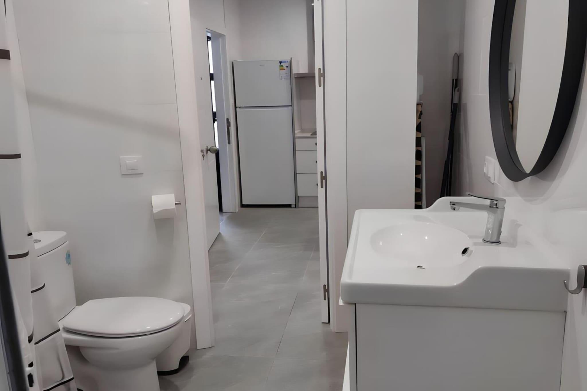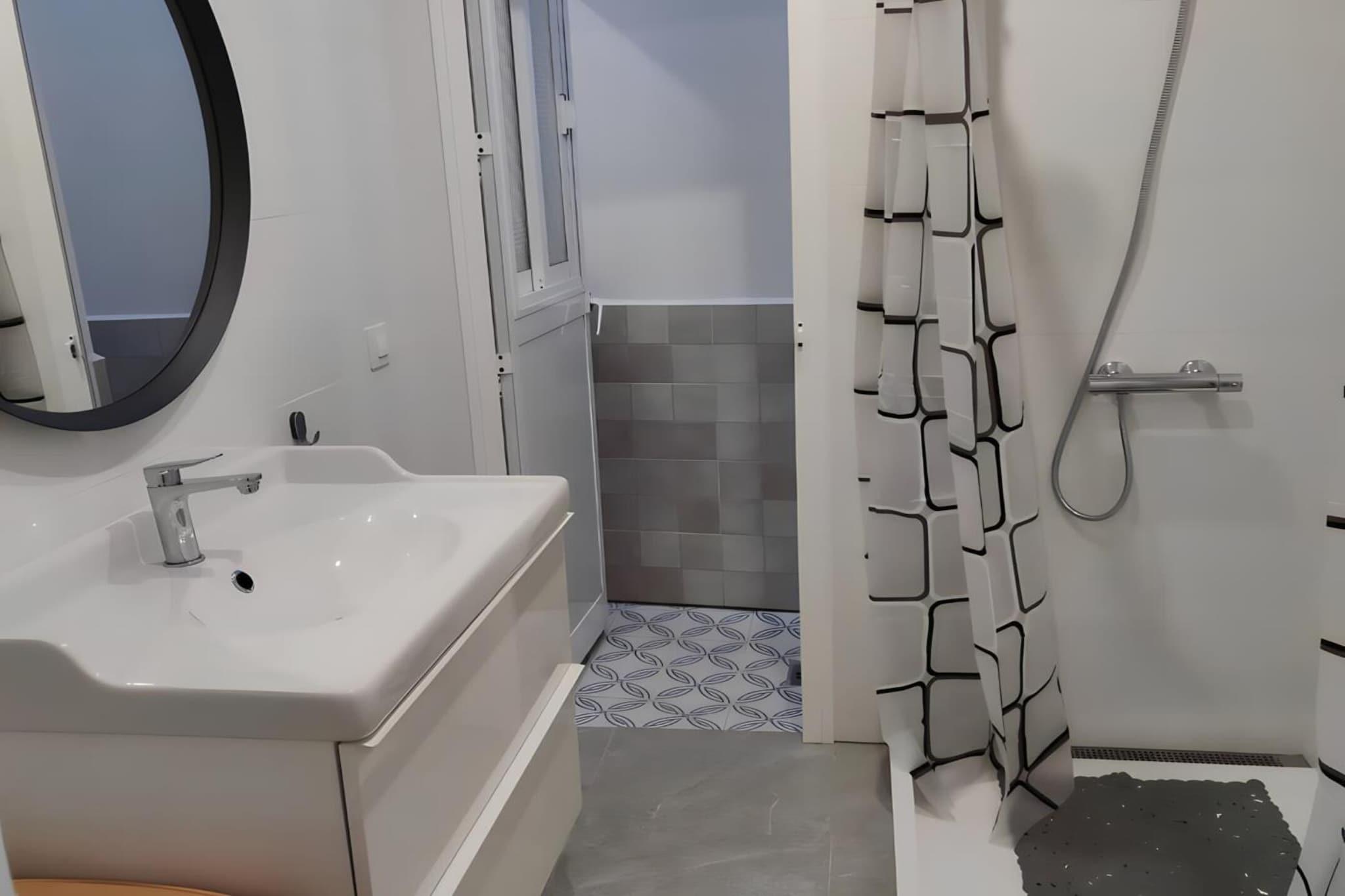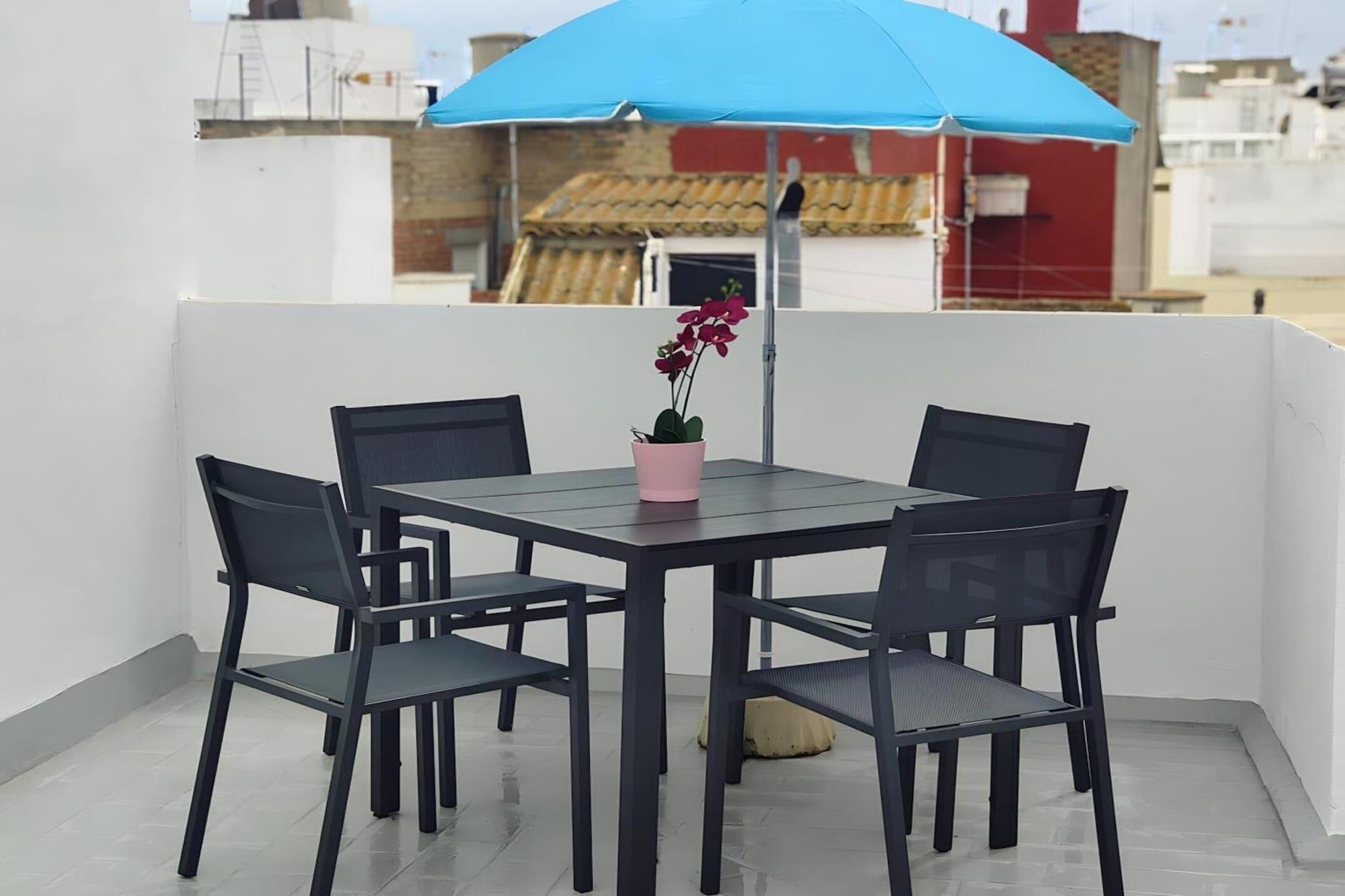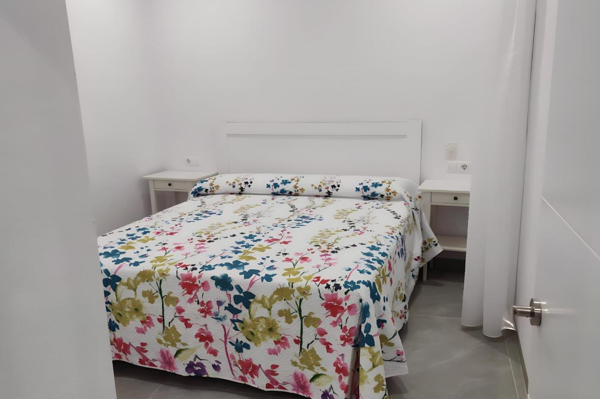 Beliggende i hjertet af Conil de la Frontera tilbyder denne lyse og gennemtænkte lejlighed den perfekte balance mellem kystafslapning og hverdagskomfort - ideel til par, venner eller en lille familie, der ønsker at opleve det sydlige Spanien i et afslappet, solrigt tempo. Indenfor byder lejligheden dig velkommen med en åben og luftig planløsning. Opholdsstuen løber ud i et fuldt udstyret åbent køkken med induktionskogeplade, mikrobølgeovn, opvaskemaskine, køleskab, Wi-Fi, tv og aircondition - alt hvad du behøver for en ubesværet ferieoplevelse. To komfortable soveværelser giver afslappende nætter: det ene med en dobbeltseng, det andet med to enkeltsenge, begge med garderobeskabe, store spejle og loftsventilatorer til varme andalusiske aftener. Det moderne badeværelse med bruser er forbundet med en lille privat terrasse, hvor en vaskemaskine giver ekstra bekvemmelighed til længere ophold eller strandfyldte dage. Bæredygtighed er en del af oplevelsen her: Ejendommen er fuldt elektrisk, og varmt vand genereres af solpaneler, hvilket gør dit ophold både behageligt og miljøbevidst. Når du er klar til at slappe af udendørs, kan du nyde rolige øjeblikke på den fælles tagterrasse, der er møbleret med bord og stole – et roligt sted til morgenkaffe eller samtaler om solnedgangen, når det er muligt. Herfra er Conils strande, lokale restauranter, caféer og charmerende gader i den gamle bydel inden for rækkevidde og inviterer dig til at tilbringe dine dage med svømmeture i havet, frokoster med fisk og skaldyr og gåture langs kysten i de gyldne timer. Dette er kystliv, simpelthen gjort rigtigt.