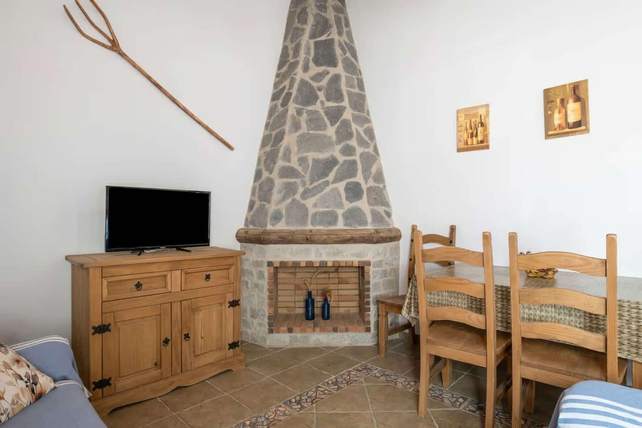 , , , Indgang , Køkken(kakkelovn, brødrister, kaffemaskine, mikrobølgeovn, køle-fryseskab, , ), stue / spisestue(Fjernsyn, spisebord, pejs, sofahjørne), soveværelse(dobbeltseng), soveværelse(3x enkeltseng), badeværelse(bruser, håndvask, toilet), Parkering, Strand, tremmeseng, vaskemaskine, balkon eller terrasse, have, solstole, swimmingpool(deles med andre gæster, udendørs), strygejern, , Long term stays allowed
