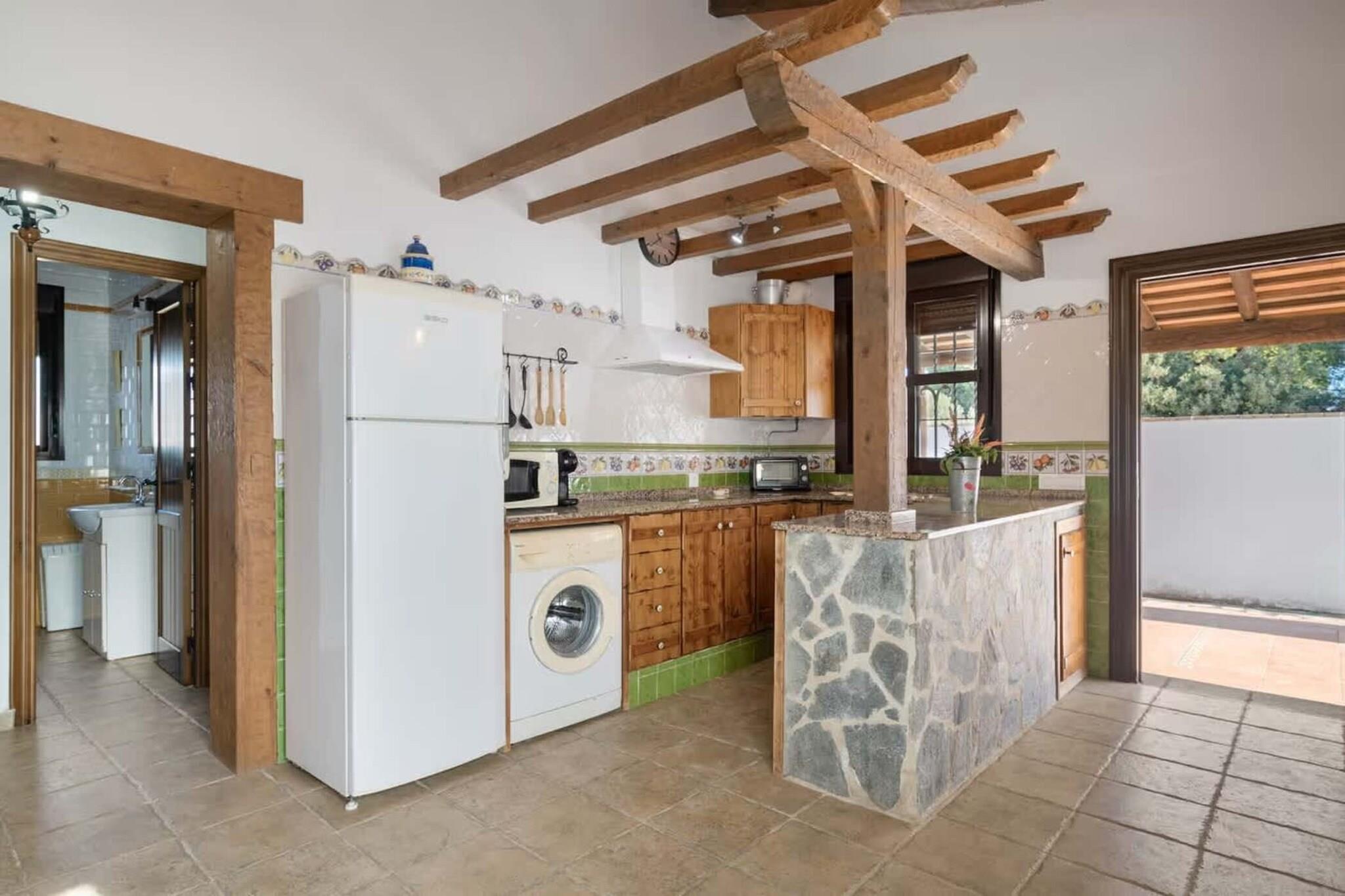 Undslippe til Andalusiens charme i Casa Mariló, et hyggeligt landligt hjem beliggende i det rolige Cortijo Entrepinares-kompleks i Conil de la Frontera. Dette indbydende fristed er designet til familier eller små grupper og tilbyder den perfekte blanding af komfort, funktionalitet og fredelige omgivelser. Med 65 m² gennemtænkt indrettet plads kan huset komfortabelt rumme op til 5 gæster fordelt på to soveværelser, mens et fuldt udstyret badeværelse og køkken gør hverdagen nem. Træd indenfor og oplev et varmt og praktisk interiør med højhastigheds-wi-fi, ventilator, tv og vaskemaskine. Familier med små børn vil sætte pris på, at der er mulighed for at få en barneseng og en højstol efter anmodning. Den private veranda med en lille have og liggestole er et roligt sted at nyde morgenkaffen eller slappe af om aftenen, mens den fælles udendørs swimmingpool tilbyder en forfriskende pause under den andalusiske sol. Udenfor tilføjer en privat parkeringsplads ekstra bekvemmelighed, og det rolige miljø sikrer et afslappende ophold. Casa Mariló er perfekt placeret til at udforske Conils fantastiske kystlinje: på kun 6 minutters kørsel kan du nå Calas del Quinto, Calas de Camacho og Playa Fuente del Gallo, som alle byder på gyldne sandstrande og krystalklart vand. Uanset om du søger et fredeligt tilbagetog, en familieudflugt eller et eventyr ved havet, tilbyder Casa Mariló et mindeværdigt ophold med alle hjemmets bekvemmeligheder.