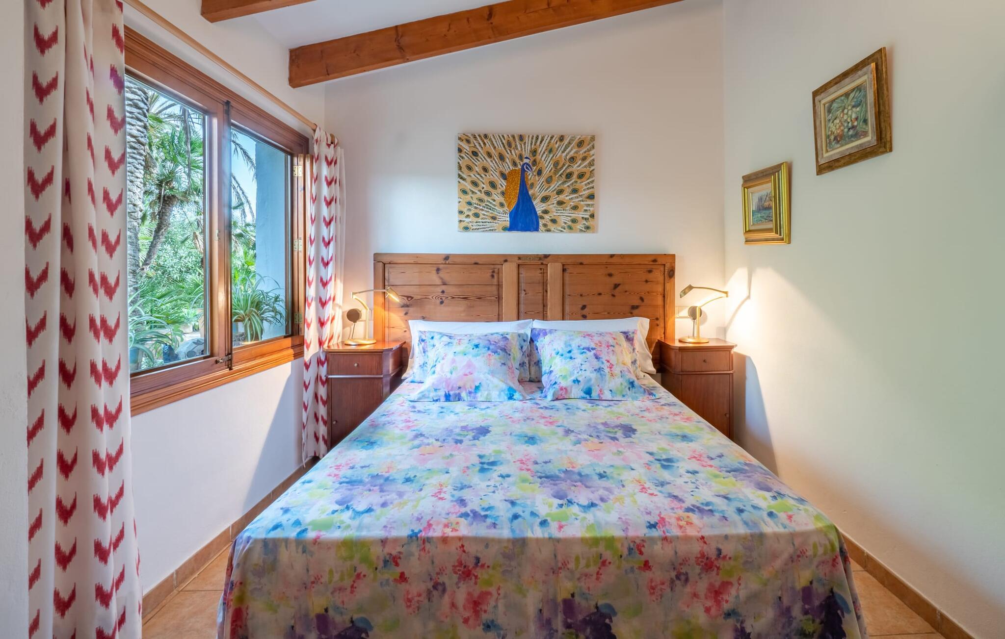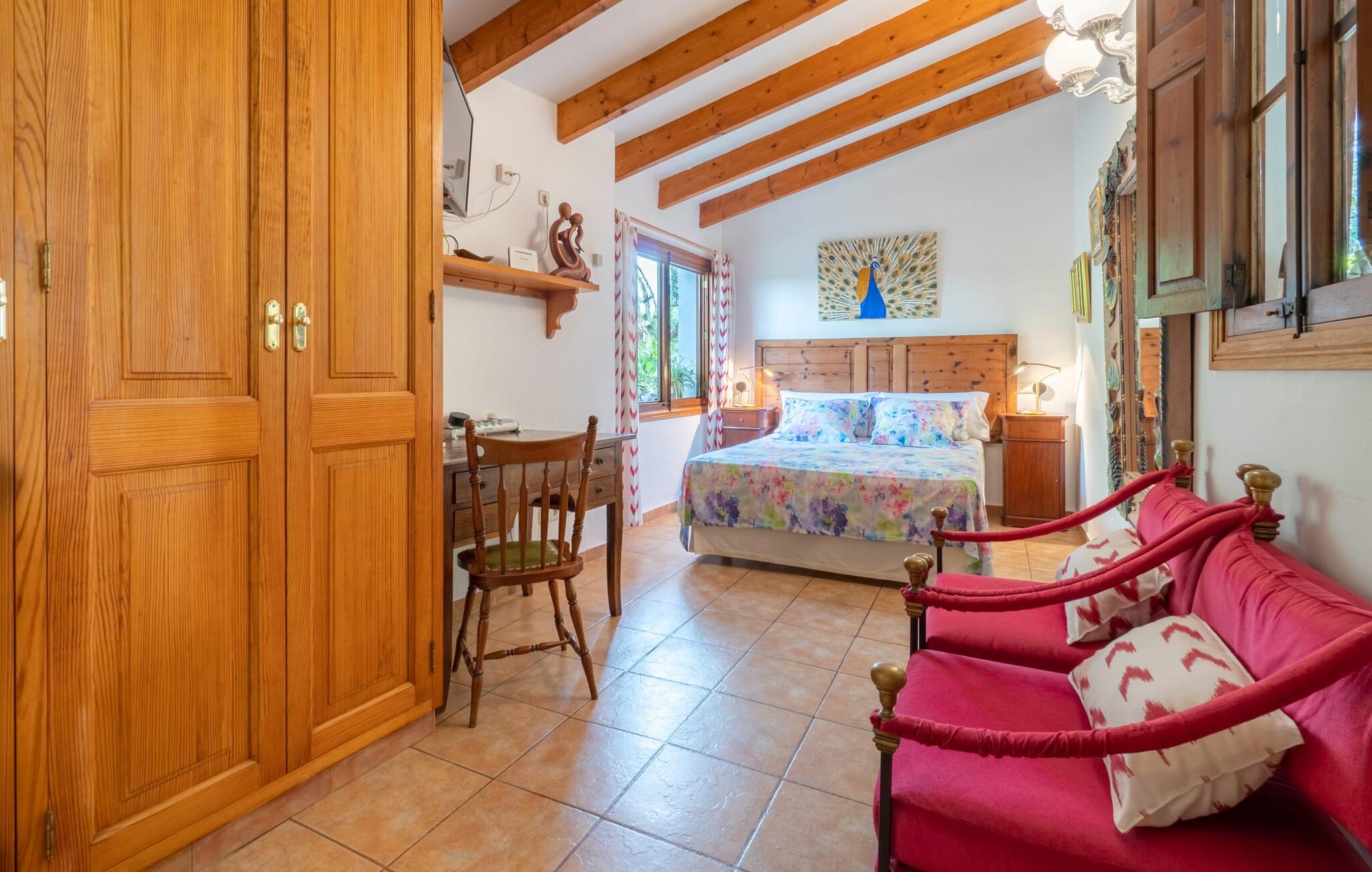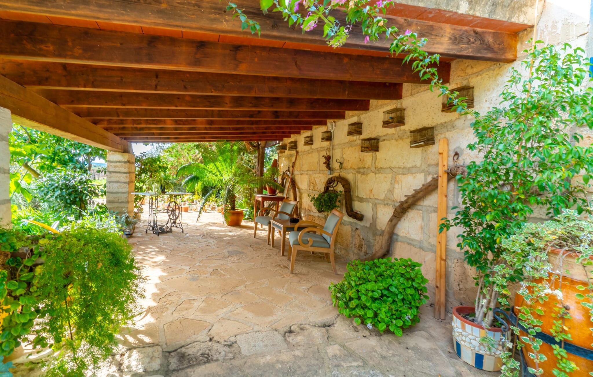 Den charmerende villa "Consell" er en af de sjældne ejendomme, der kun har et soveværelse. Det er derfor rent 2-personers overnatning og er derfor særdeles velegnet til par, der ønsker at tilbringe en uforglemmelig ferie som par eller med deres baby. Villaen byder på alt, hvad et par kan ønske sig til en afslappende ferie i en behagelig atmosfære. Huset ligger på en frodig grøn 10.000 m² grund. I dette udendørs område finder I en vidunderlig atmosfære og utrolige stenterrasser, der tilbyder en række muligheder for et behageligt udendørs ophold. Her sidder I i små nicher, overdækket eller under åben himmel, altid i vished om, at I er omgivet af dekorativ bevoksning og et overordnet meget velholdt havelandskab. En række siddemøbler inviterer jer til at slappe af og blive hængende. Et rigtigt højdepunkt er den overdækkede udendørs spisestue, hvor I kan spise med en vidunderlig udsigt over landskabet og stadig blive forkælet i en allround hjemlig atmosfære. Når vejret er godt, gør denne villa det nemt at tilbringe hele dagen udenfor fra morgen til aften. Komfortable liggestole ved poolen runder de udendørs tilbud af på en indbydende måde. Efter en dukkert i poolen kan I frit slappe af på terrassen med en drink i hånden eller slappe af på en af liggestolene eller læse en bog. Hvis I vil, kan I nemt finde et sted, der er luftigt og naturligt skyggefuldt. Med en længde på 10 m er swimmingpoolen virkelig elegant og ideel til at svømme et par længder, måske endda ved daggry, før en foryngende morgenmad, som I kan nyde i et af udendørsområderne. Der er dyr på den store grund (en hest og fugle), som helt sikkert vil glæde dem blandt jer, der elsker dyr og natur. Ejeren kommer dagligt for at fodre dyrene og tage sig af poolen; han passer meget på ikke at forstyrre gæsterne.