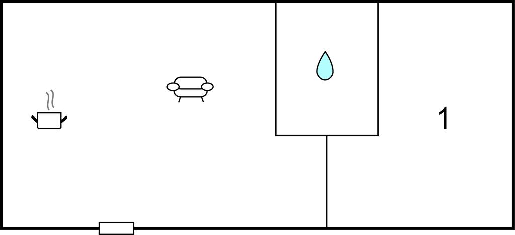 Opholdsstue/køkken 35m2 - 2 Sovepladser. (Sofa, madras eller lignende).