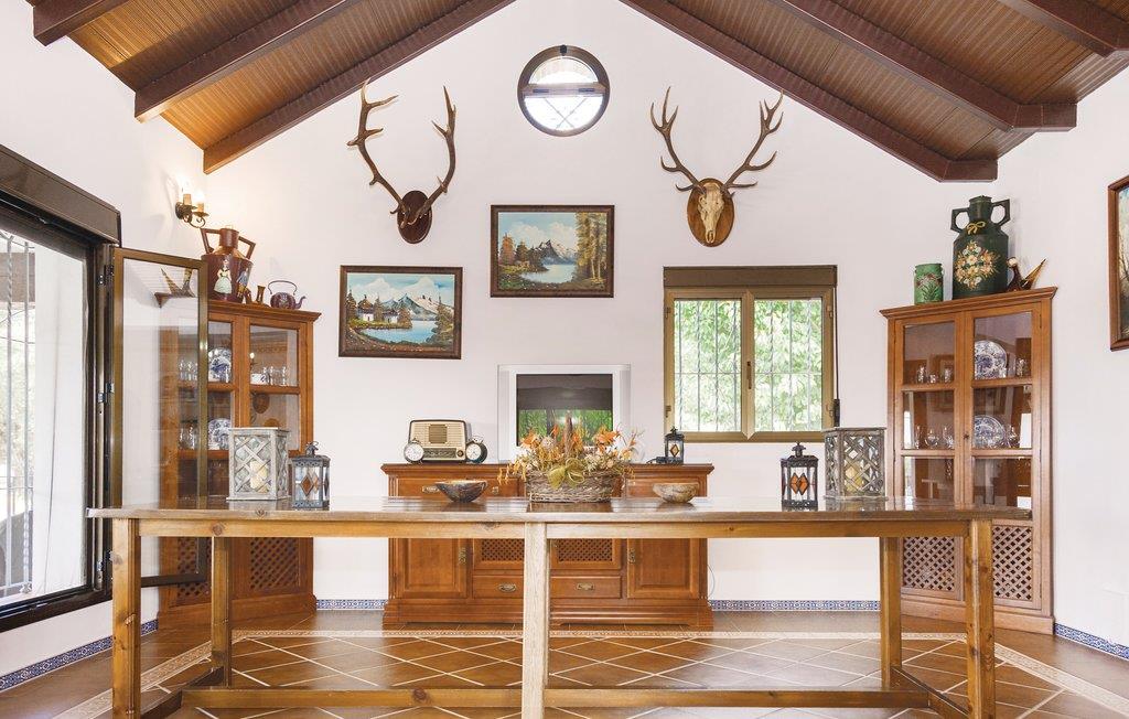 Dette skønne feriehus ligger midt i San Jorge vingården der ligger mellem bjergene i det indre Andalusien kun to km fra den skønne by Constantina. Det ligger i et plan, med en stor stue med kamin, et åbent køkken, tre soveværelser og en stor veranda og en garage. Fra den fine veranda kan I nyde den betagende udsigt over bjergene og vinplantagerne. Hvis vejret er for varmt kan I køle af i den private pool eller nyde et glas koldt hvidvin i skyggen, mens I nyder stilheden og naturens rolige atmosfære. Om aftenen kan I spise på den overdækkede terrasse med hele familien. I september og oktober kan I få en hel unik oplevelse, når husejerne inviterer jer med ud og høste på vinmarken, hvorefter I kan være med til at producere jeres helt egen vin.