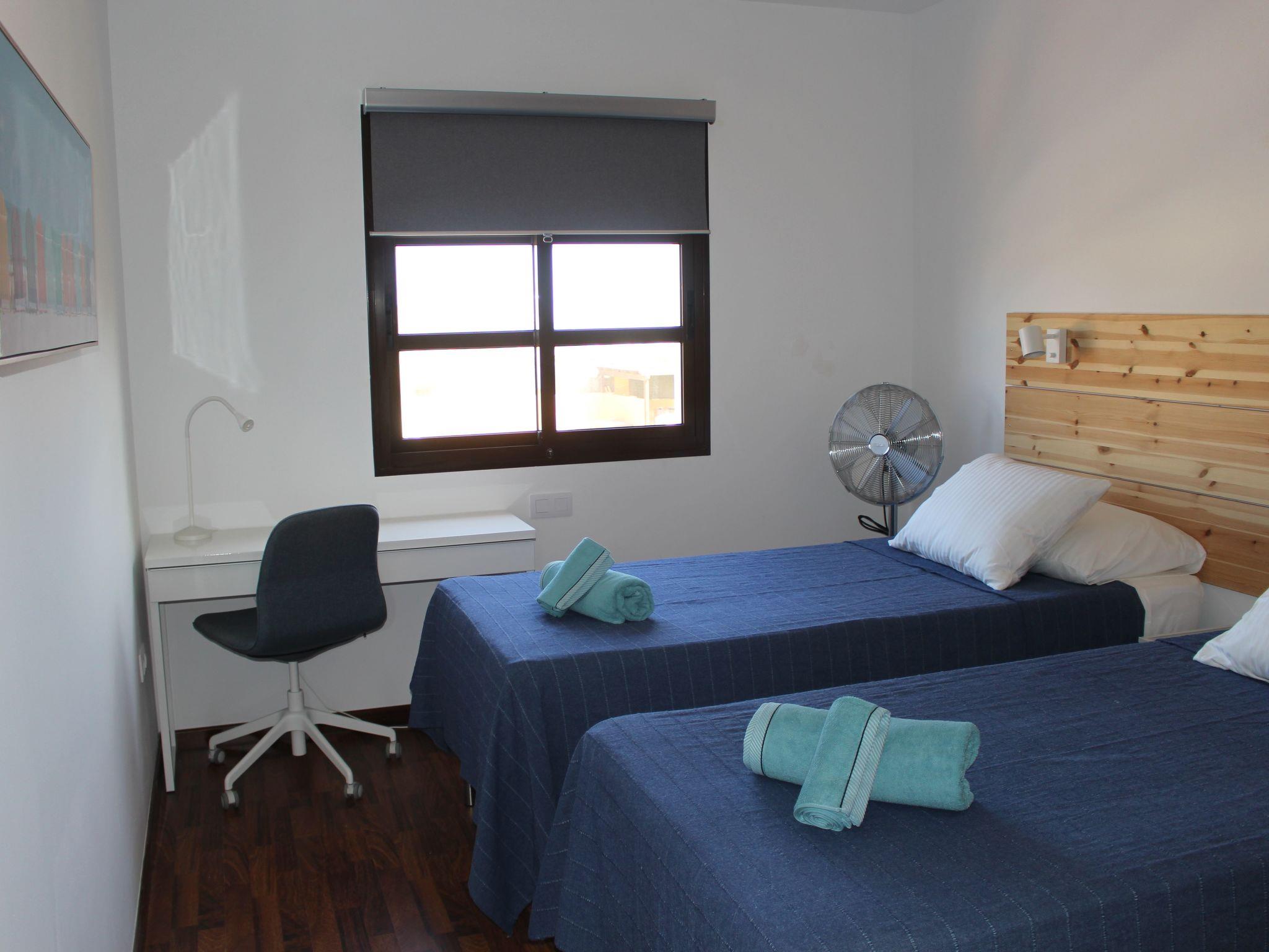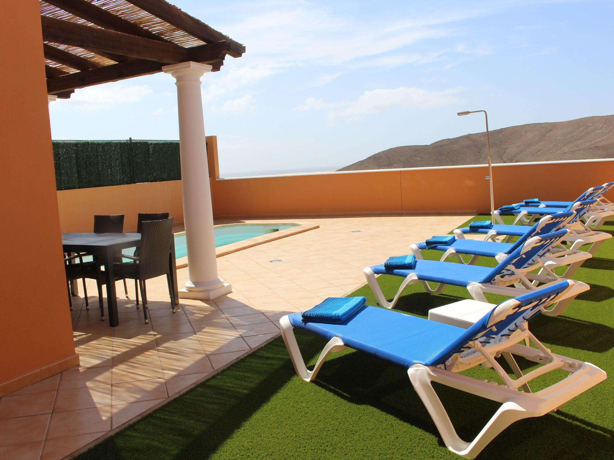 Located in a quiet residential area on the heights of Corralejo (right next to the Olympic pool), less than 10 minutes by car from the town centre and beaches, it enjoys panoramic views over the volcanic landscape, the Dunes Natural Park, the ocean and Los Lobos Island.