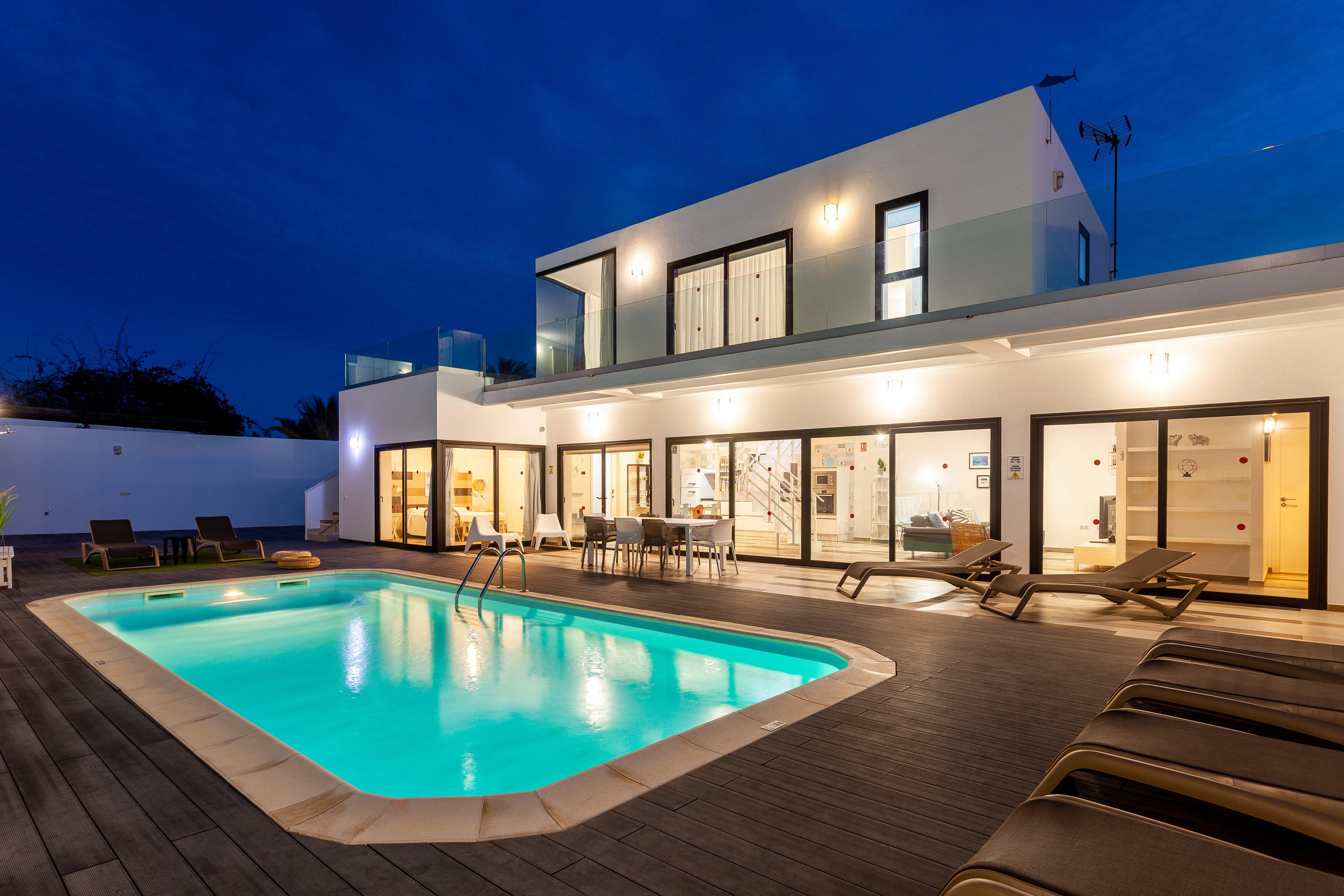 " Willkommen in der Villa Luxury Azul auf Fuerteventura, unserer exklusiven Villa, nur 28 Meter vom Waikiki-Strand entfernt im touristischen Herzen von Corralejo. Diese Villa mit 4 Schlafzimmern bietet Ihnen eine Oase der Ruhe und Eleganz. Genießen Sie Ihren privaten Pool und Grill, umgeben von einem modernen und minimalistischen Design.