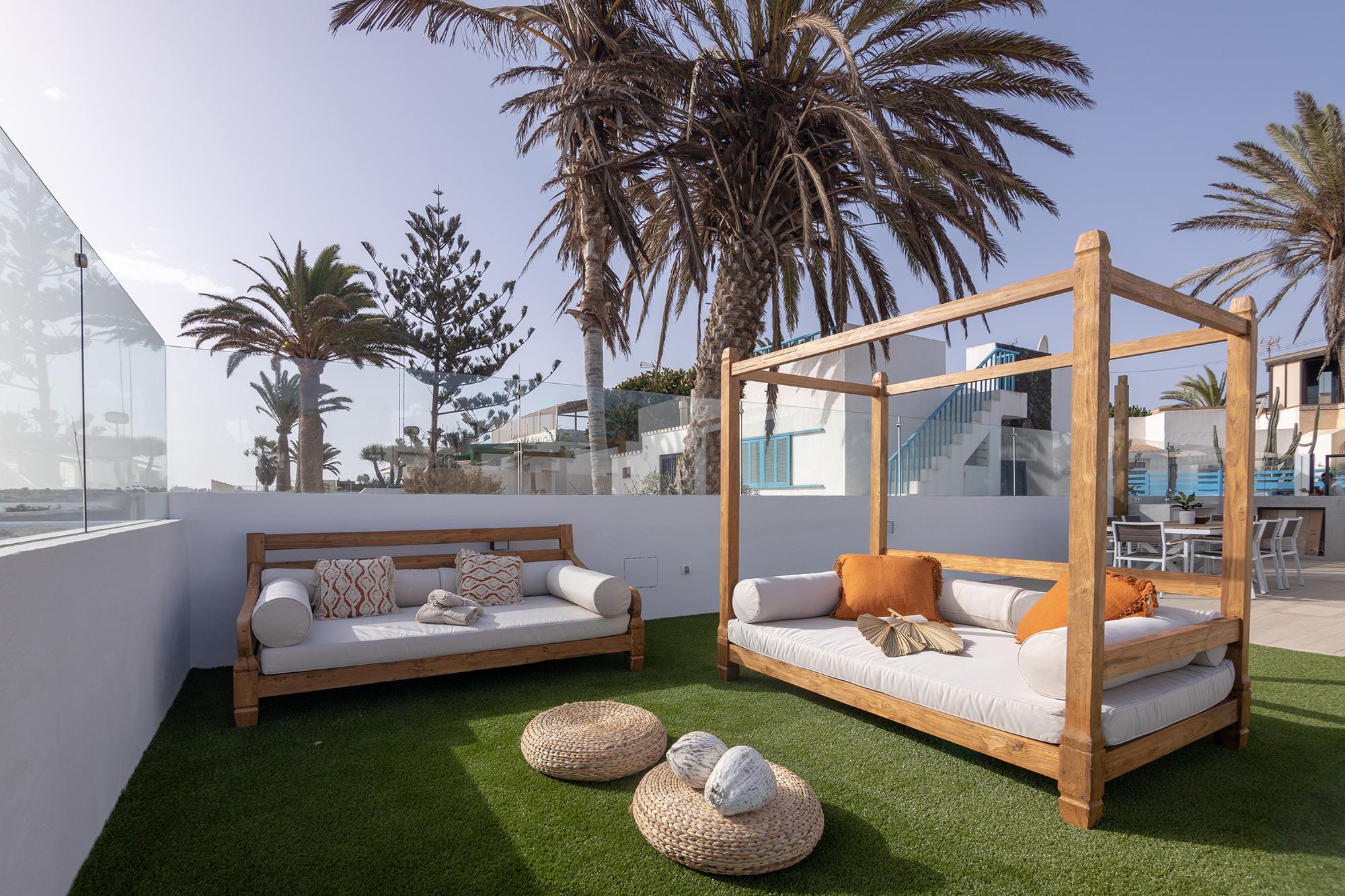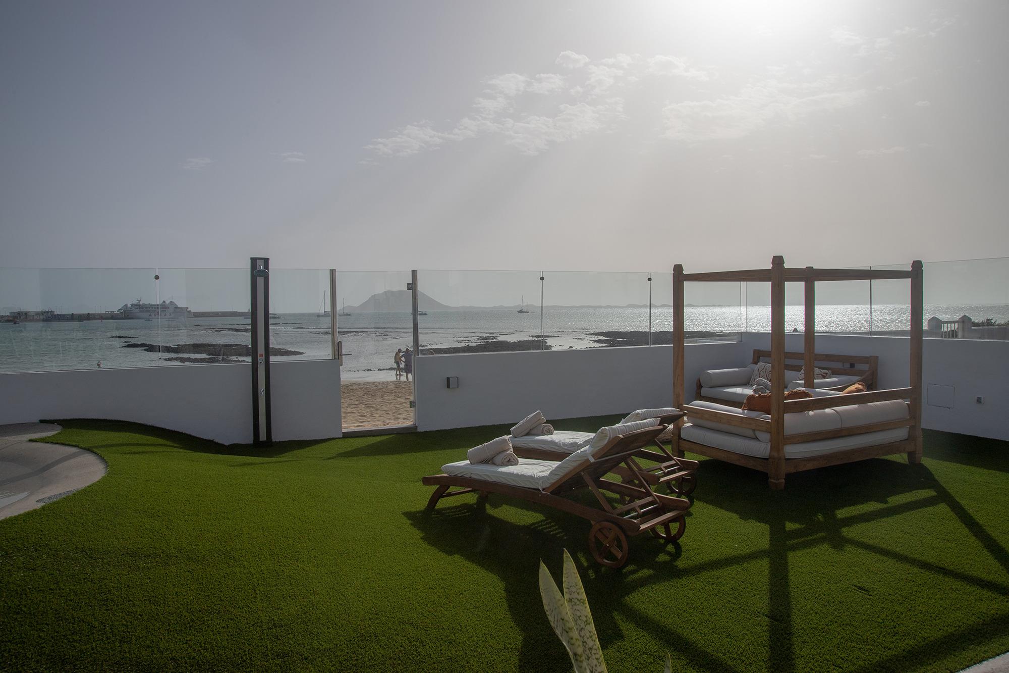 " Wir begrüßen Sie in unserer Ferienvilla Edén auf Fuerteventura, im Herzen der Touristengemeinde Corralejo, nur wenige Meter vom Meer entfernt, wo Sie diese Ecke der Ruhe und Eleganz in ihrem wunderschönen privaten Garten mit natürlichem Salzwasserpool und unglaublicher Aussicht genießen können der Insel Lobos und Lanzarote.