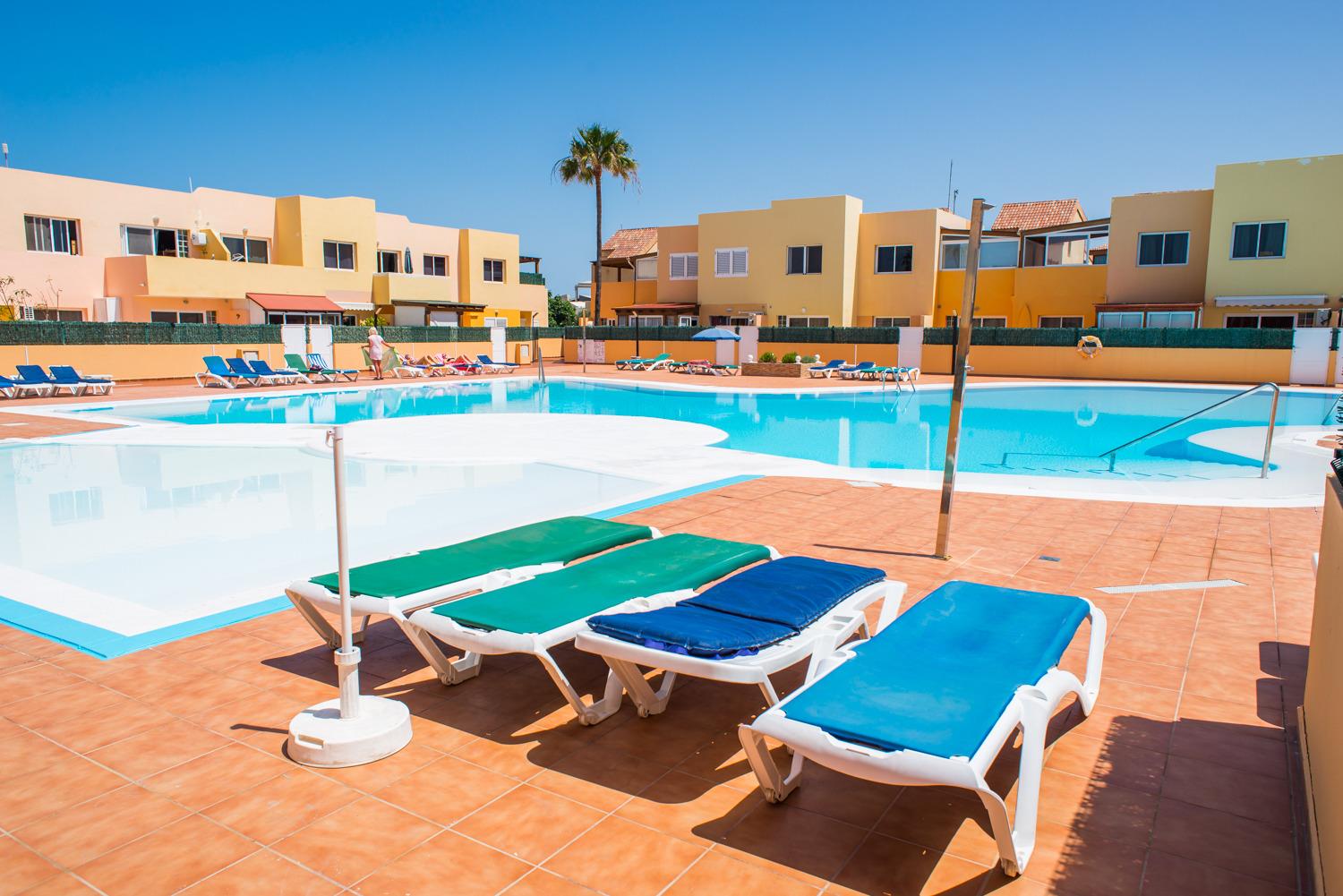 " Willkommen im Delfines Sand Apartment auf Fuerteventura. Dieser charmante, 42 m² große Raum liegt in der Touristengemeinde Corralejo, nur 100 Meter vom Strand entfernt. Genießen Sie die Ruhe einer ruhigen Gegend, während Sie im großen Pool der Anlage entspannen.