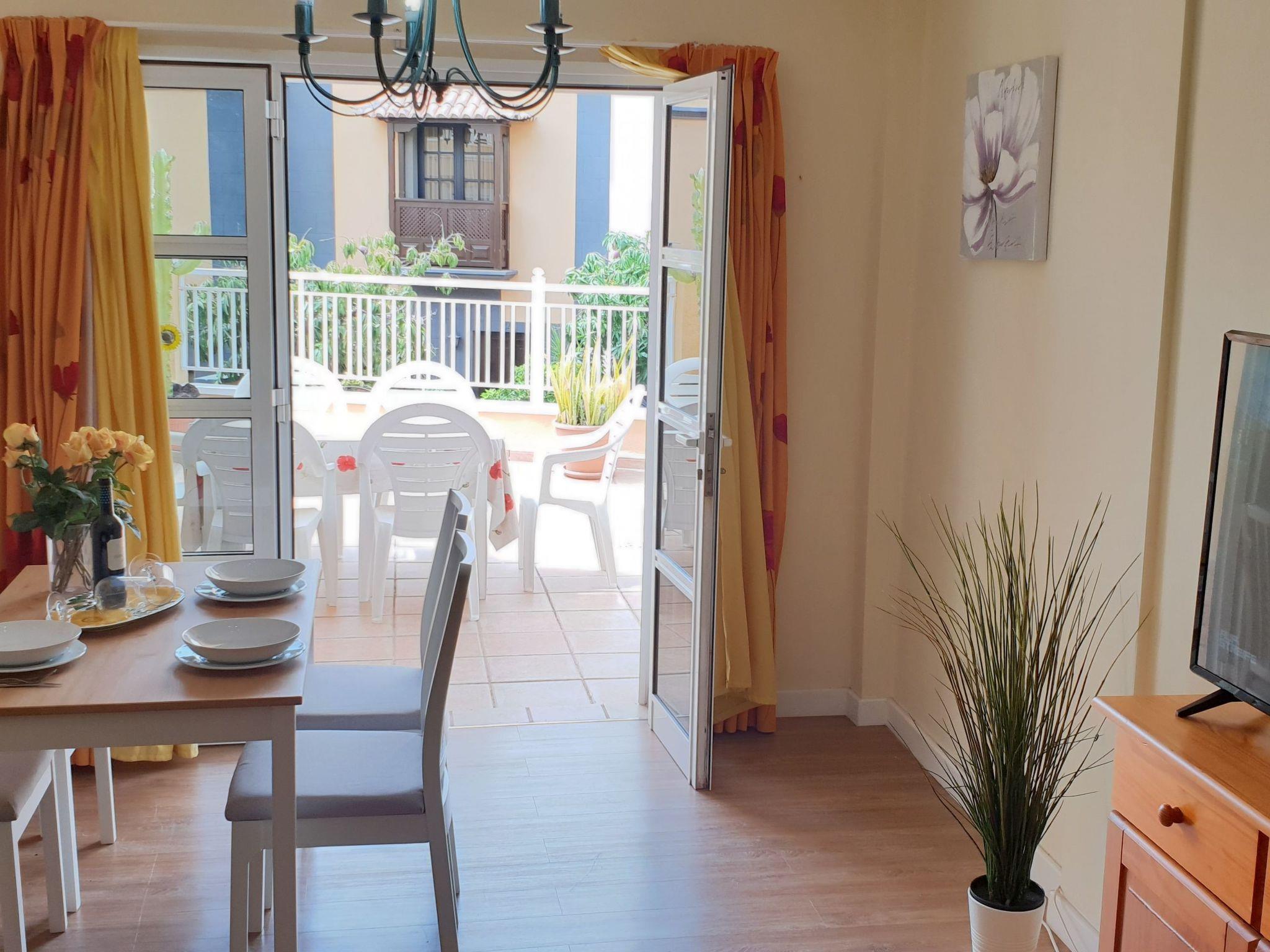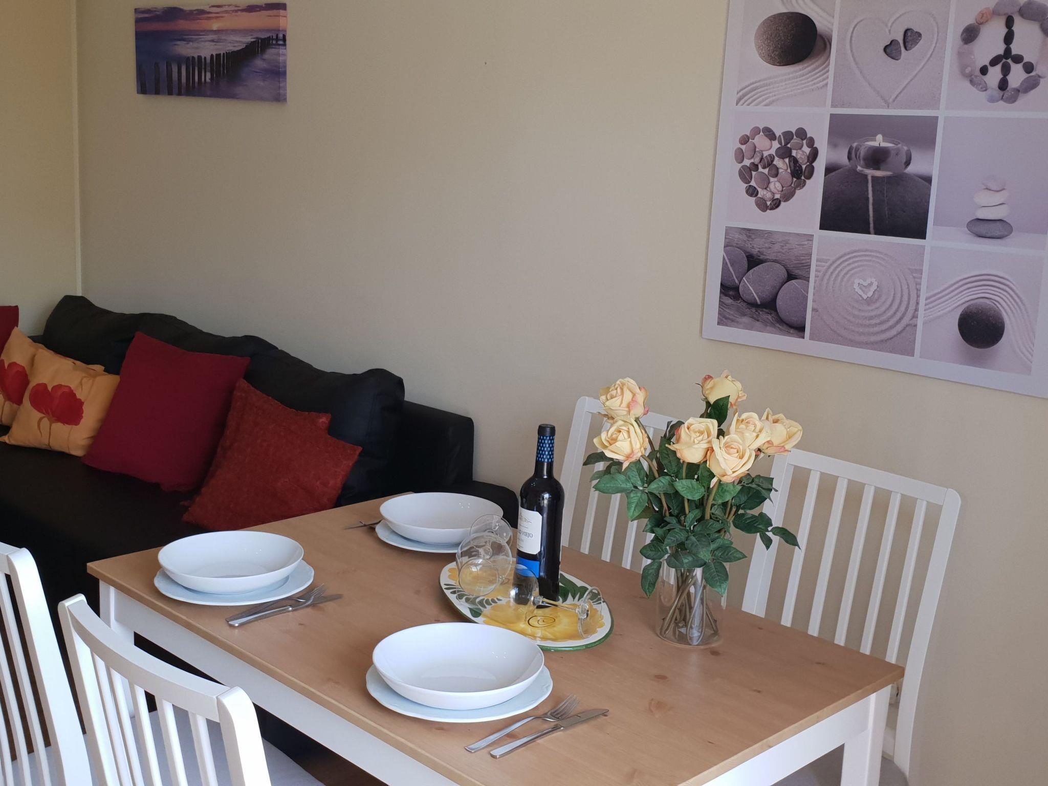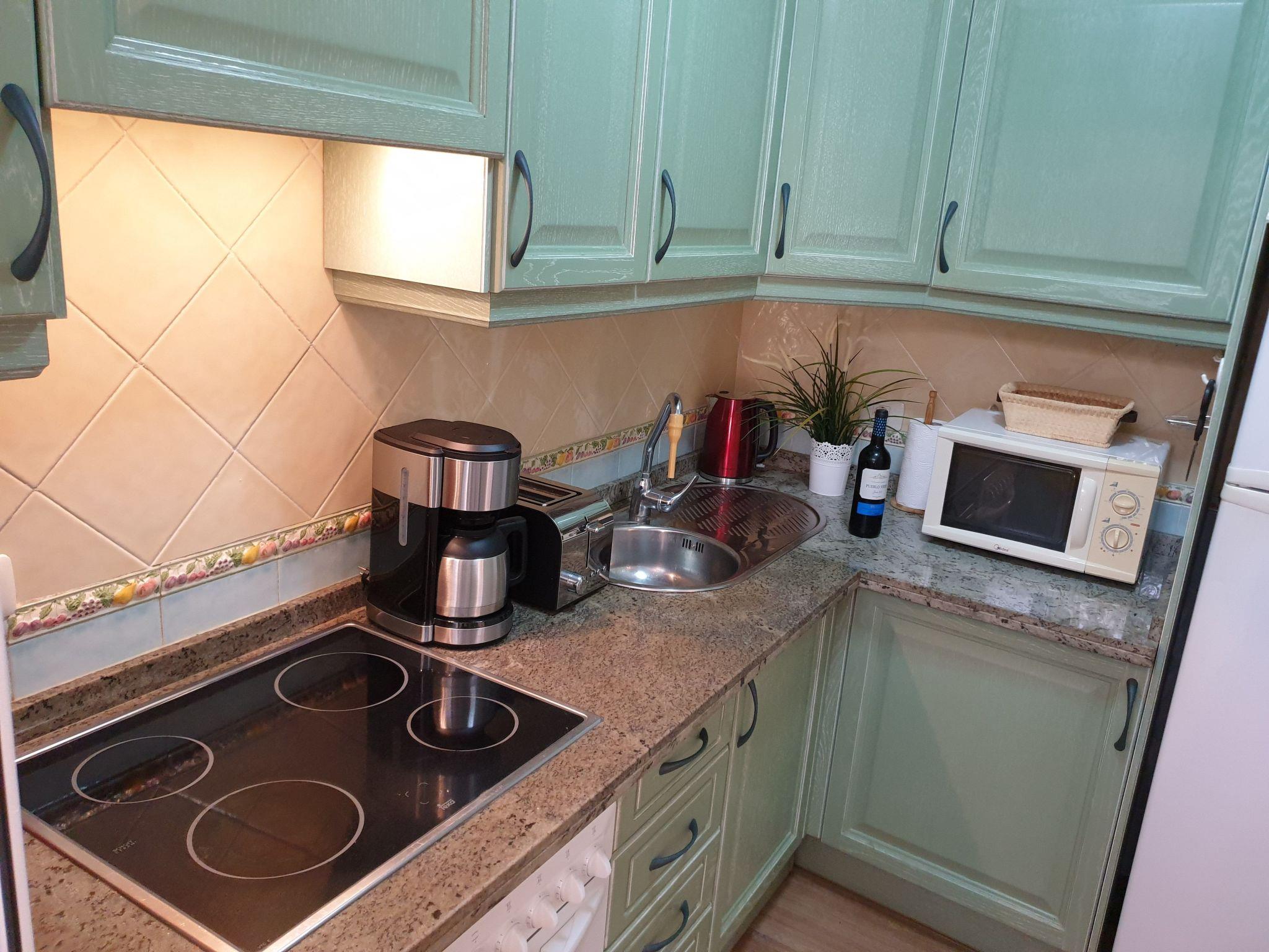 The apartment Benimar is located on the ground floor in the popular district "El Duque" not far from the beach. The distance to the sea is about 750 meters. The apartment has a fully equipped kitchen with dishwasher, oven, ceramic hob, fridge-freezer, microwave, electric kettle, toaster and coffee machine. The living room has a sofa bed that can be pulled out and provides a comfortable place to sleep for 2 more people. In the living room there is a flat screen TV with international TV programmes, Internet via Wifi, DVD player and a stereo system.