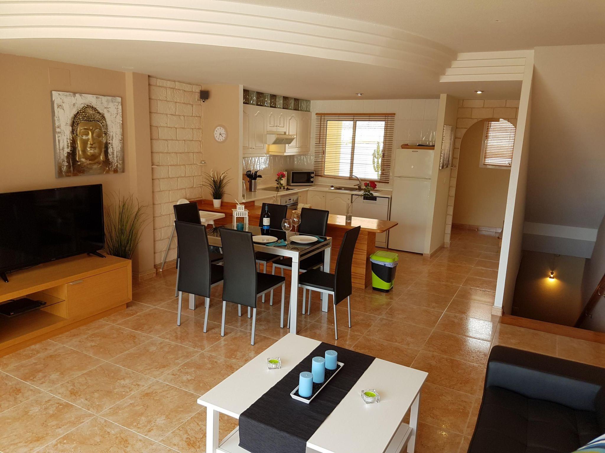 There is a large pool area with sun loungers (Community Pool) which can be used free of charge. On the terrace there is a barbecue available and comfortable seating and 2 sun loungers so that you can spend beautiful barbecue evenings there.You can park your car in the private garage, which is located in the basement of the house. There is also a washing machine.Information about the location:The house is located above the Costa Adeje with spectacular views over the whole coast and Playa de las Americas. In view of the Atlantic you can occasionally see the neighboring island of La Gomera. At night you have a wonderful view of the lights of the city. But also the view up is worth: You can enjoy the mountain panorama to the Roque del Conde (Table Mountain).The location is very quiet and still centrally, since one is by car in a few minutes on the beaches of Costa Adeje and Las Americas. Also at the picturesque port of Los Cristianos is not far away.A major attraction is the largest water park in the world: the SIAM-Park and the adjacent Aqualand.Shops are also nearby, you can get bread on foot and then on the terrace together outdoors breakfast. Las Americas is the tourist center with numerous bars, restaurants and sports and shopping. The climate is mild all year round and warm.