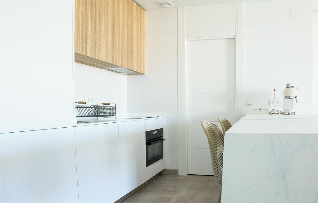Velkommen til Costa Ballena, hvor denne moderne lejlighed venter sine gæster. I vil straks føle jer hjemme i de lyse og indbydende rum. Gulv-til-loft vinduer og i særdeleshed glasfronten i stuen sørger for masser af dagslys i lejlighedens indre. Den enkle, elegante indretning og subtile farvesammensætning gør ferielejligheden til et harmonisk sted, hvor I virkelig kan slappe af. I den åbne planløsning, som også rummer køkkenet, kan I lave mad sammen og dele dagens oplevelser, inden I spiser middag sammen. Efter en aktiv dag i naturen kan I slå jer ned i de komfortable sofaer og nyde tiden sammen. Træd direkte fra stuen ud på terrassen. Mens I solbader her, har I en flot udsigt over fællespoolen, og I kan beslutte, hvornår det er det bedste tidspunkt for en forfriskende dukkert.