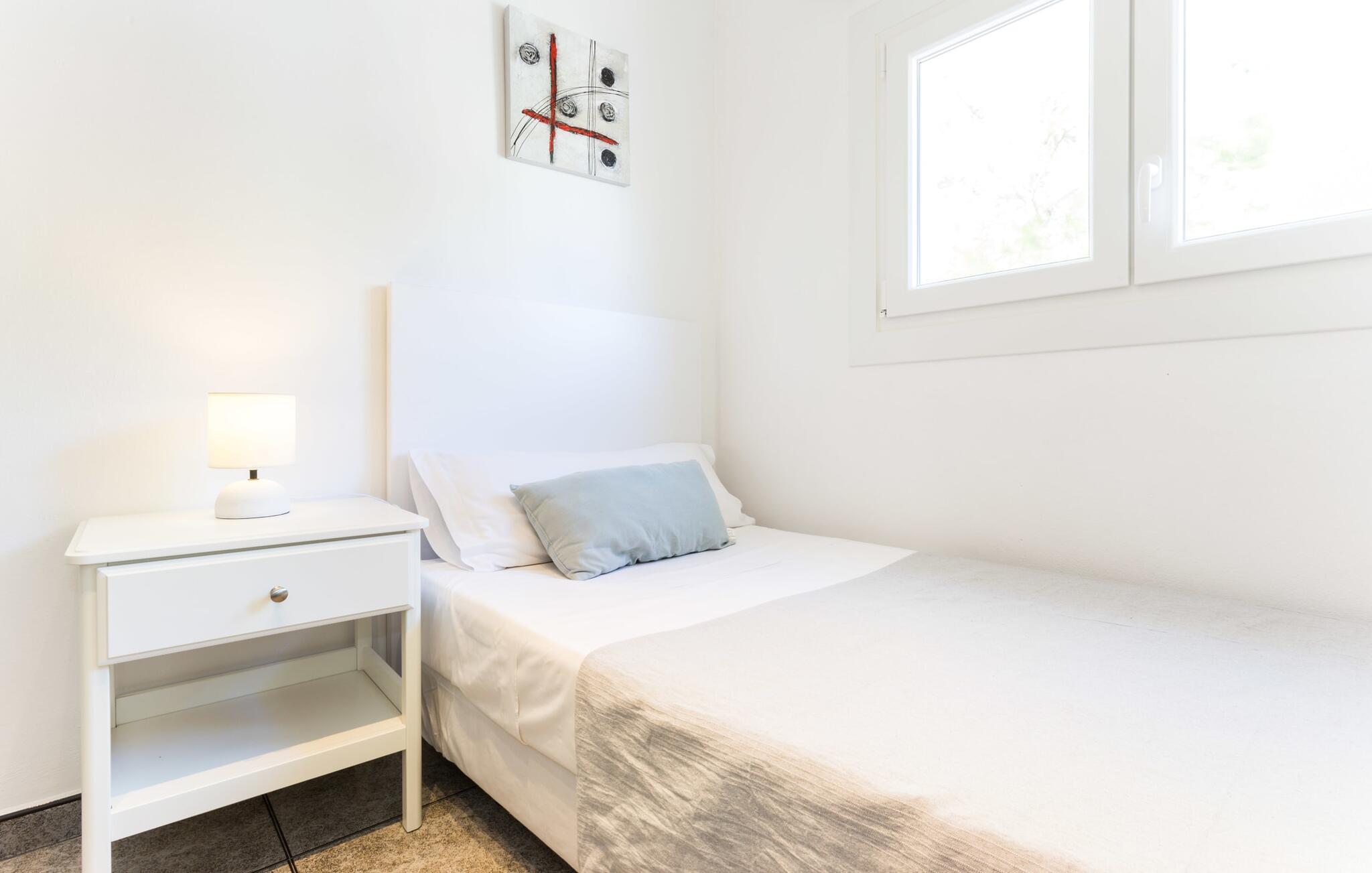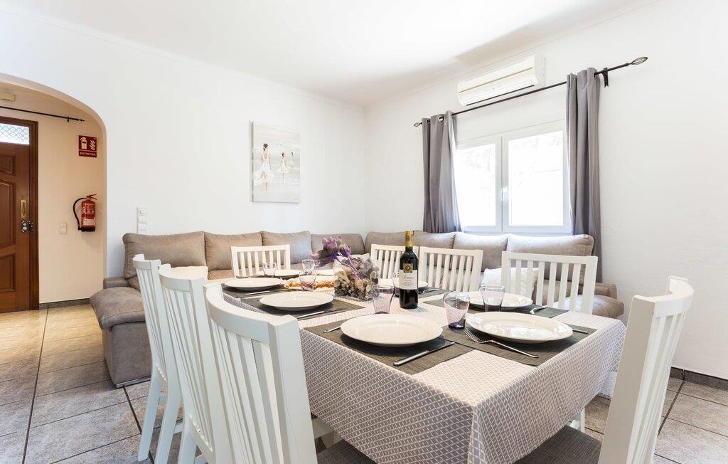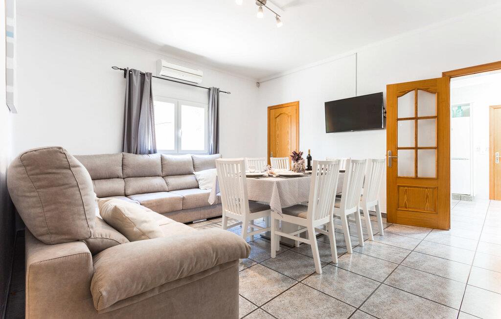 Rækkehuset "Costa d'en Blau" er den perfekte bolig, hvis I ikke vil gå glip af charmen ved byinfrastruktur og samtidig længes efter et hyggeligt tilflugtssted, der også kan rumme større rejsegrupper. En gade med træer fører jer til huset, som er indrettet i okker og orange toner og har en smuk tagterrasse og liggestole på første sal. Her kan I nyde den vidunderlige blå himmel og middelhavsklimaet, mens I forkæler jer selv med en god ferielæsning eller en hyggelig snak. Selve huset er indrettet på en meget moderne måde, domineret af lyse, venlige farver og subtile kunstværker på væggene, som hurtigt formidler en subtil, hjemlig følelse. Indgangspartiet i stueetagen leder ind i en stue med en stor hjørnesofa, hvor I også kan se tv hjemmefra takket være satellitteknologi. Der er også et hvidt spisebord til fælles måltider. Disse kan I tilberede i det rummelige tilstødende køkken, som er fuldt udstyret og gør husarbejdet lettere med mikroovn og opvaskemaskine. I hjørnet af rummet er der en markant sten, der minder om et hjemligt springvand og giver villaen en behagelig atmosfære. Et af soveværelserne med en dobbeltseng er også i stueetagen, ligesom et meget smagfuldt badeværelse med komforten fra et badekar til en sensuel afslutning på dagen. På øverste etage er der yderligere to soveværelser med dobbeltsenge, samt to værelser med hver en enkeltseng og endnu et badeværelse. Grib jeres badedragt og gå på to minutter til den smukke sandstrand, kendt for sin karakteristiske havn og strandpromenade med en særlig maritim flair. Hvis I har lyst til en rolig dag med svømning, anbefaler vi et besøg i Cala Petita naturlige fjord, 3 km væk. S'Illot, 8 km væk, byder også på alt hvad I behøver til en vidunderlig dag på stranden. Efter hjemkomsten kan I slentre gennem den maleriske gamle bydel i Porto Colom og nyde frisk fisk, for eksempel i restauranten Sa Sal. På grund af den centrale beliggenhed kan trafikken høres fra tagterrassen. Hvis I har lyst til at køle af, kan I besøge grottesystemet Coves del Drac, som har den største underjordiske sø i Europa. Blot et stenkast fra den idylliske Playa de Porto Cristo er rækkehuset "Costa d'en Blau" den perfekte mulighed for alle, der leder efter den samlede pakke af hav og urban flair! Promenaden og yachtklubben er inden for gåafstand, det samme er udsøgte restauranter og drypstenshulerne Coves del Drac. En 20-minutters kørsel tager jer til den større by Manacor, hvor I kan shoppe omfattende. De mange attraktive sandstrande på østkysten er også let tilgængelige.