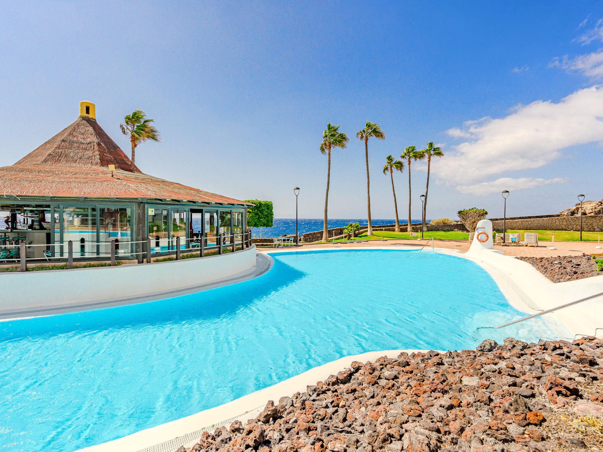 Large, child friendly apartment block "Rocas del Mar", 4 storeys. In the centre of Costa del Silencio, in a secluded, quiet, sunny position, traffic calmed area, 20 m from the sea, 900 m from the beach, in a cul-de-sac. For shared use: garden with lawn and trees, swimming pool secured (depth 110 - 140 cm, seasonal availability: 01.Jan. - 31.Dec. pool opening hours: 10:00-19:00) with internal staircase. Unconventional pool shape. WC in the pool area, children's pool, outdoor shower. In the complex: bar, lift. Shop 200 m, 5 minute walk to the centre, bus stop "La Te" 250 m. Golf course (9 hole) 8 km. Nearby attractions: Playa de Las Americas 16 km, Siam Park 16 km, Acantilados de Los Gigantes 42 km, Masca 50 km, Teide 51 km. Please note: baby equipment on request. The owner does not accept any youth groups. Neighbourhood highly sensitive to noise. Quietness and good behaviour expected.