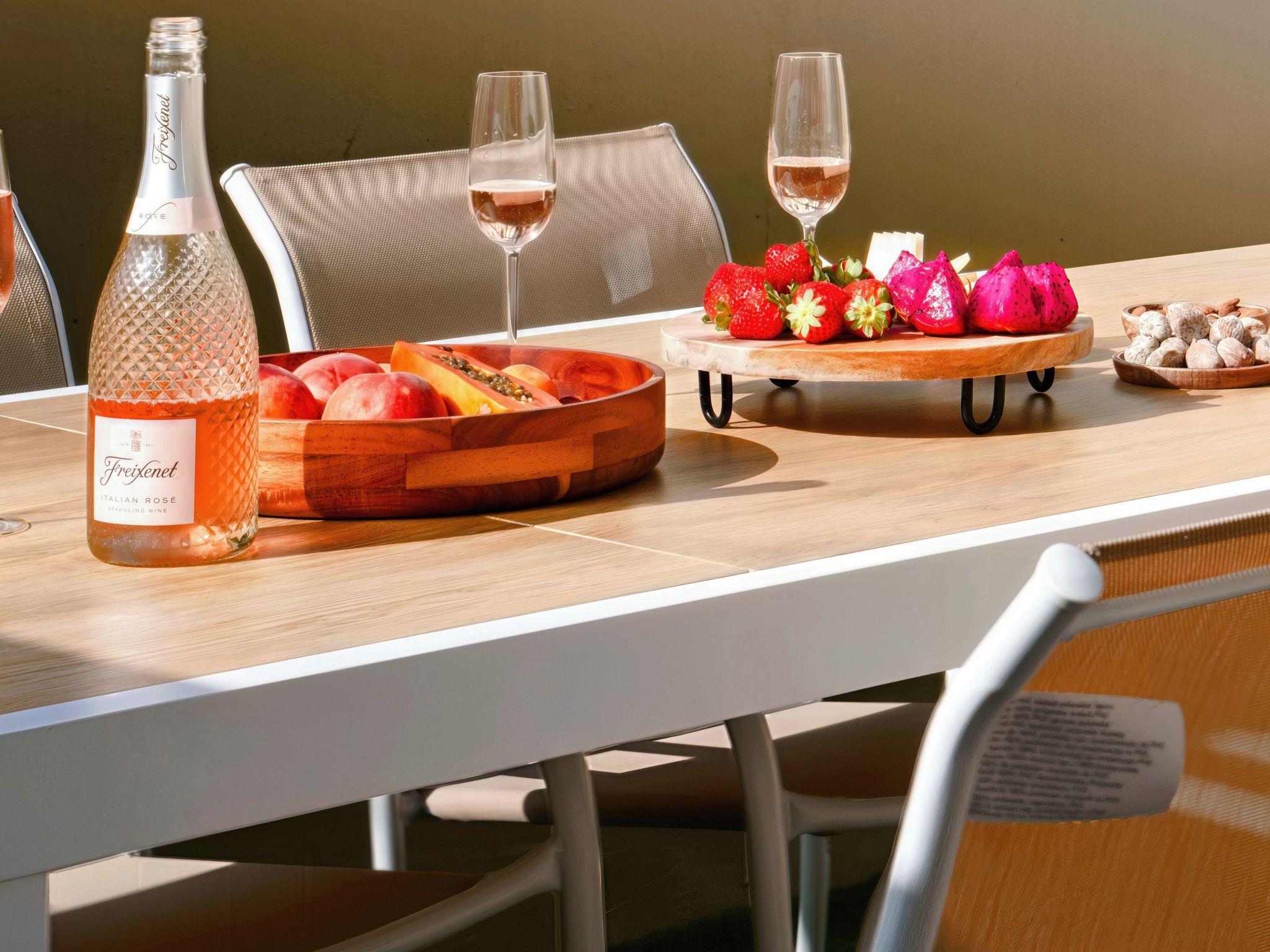 Inside, this spacious two-storey home shines with a bright living room featuring cosy seating and a large Smart TV for streaming Netflix and YouTube, creating an inviting space where you can unwind in style. The home boasts elegant yet homely décor with carefully chosen details that ensure a warm and welcoming atmosphere. The fully equipped kitchen caters to all your culinary needs with a stovetop, oven, refrigerator, dishwasher, microwave, brand-new Nespresso Vertuo coffee machine, and toaster, complemented by a six-seater dining table for memorable indoor meals or relaxed evenings on the private terrace.