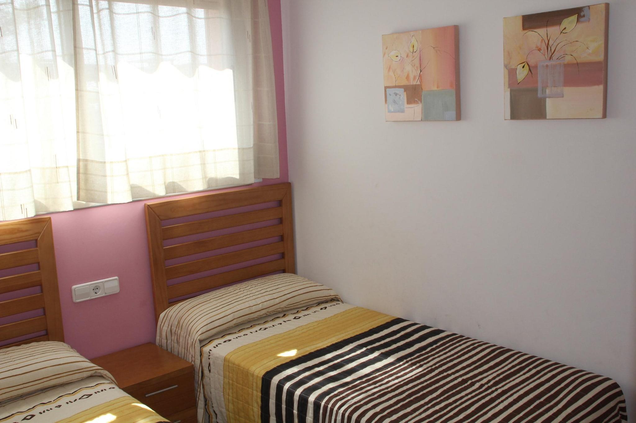 Oplev Hotur Via Augusta, et indbydende feriekompleks beliggende i Creixell, kun 500 meter fra en fantastisk strand med fint sand og krystalklart, lavt vand - ideel til familiesjov og afslapning. Denne lejlighed på 60 m² er perfekt til at rumme op til 4 gæster, hvilket gør den til et fantastisk valg til din næste familieferie. Lejligheden har to hyggelige soveværelser: det ene med en dobbeltseng og det andet med to enkeltsenge, hvilket sikrer en god nats søvn for alle. Det fuldt udstyrede køkken har køleskab, keramisk kogeplade, mikroovn, ovn, opvaskemaskine og alle nødvendige køkkenredskaber, hvilket gør madlavning til en leg. Badeværelset har badekar og toilet, hvilket øger din komfort. Fra komplekset kan du nemt udforske nærliggende attraktioner. Besøg den historiske by Tarragona (15 km) eller begiv dig til de pulserende gader i Barcelona (75 km). For en uforglemmelig dag med eventyr ligger den berømte forlystelsespark Port Aventura kun 30 km væk. Træd udenfor til din private terrasse, møbleret med bord og stole - perfekt til at nyde måltider under åben himmel eller nippe til kaffe i morgensolen. Nyd moderne bekvemmeligheder såsom Wi-Fi og aircondition for et behageligt ophold, mens gratis parkering sikrer bekvemmelighed under dit besøg.