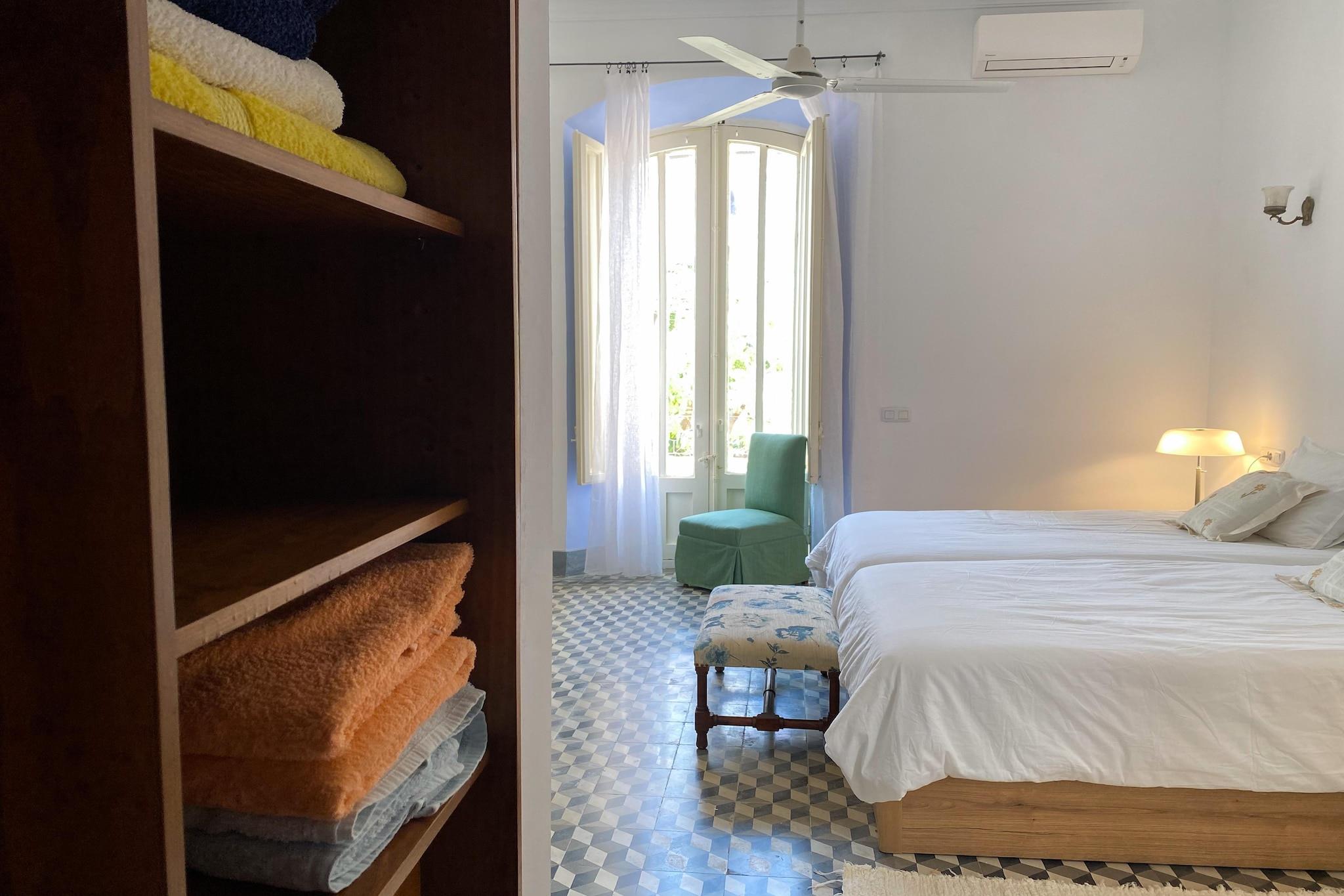 På 1. etage: (gang, Stue(Fjernsyn, sofahjørne, klimaanlæg), spisestue(spisebord), Køkken(spisebord, brødrister, komfur, kaffemaskine, espressomaskine, ovn, mikrobølgeovn, opvaskemaskine , køleskab, Saftpresser, , Wine glasses), Soveværelse med badeværelse(dobbeltseng, badekar med bruser, håndvask, toilet, bidet), Soveværelse med badeværelse(enkeltseng, enkeltseng, badekar eller bruser, håndvask, toilet, bidet), Soveværelse med badeværelse(enkeltseng, enkeltseng, badekar eller bruser, håndvask, toilet), badeværelse(håndvask, toilet), Arbejdsværelse, bibliotek, veranda(spisebord)) På 2. etage: (Soveværelse med badeværelse(dobbeltseng, bruser, håndvask, toilet)) vaskemaskine, havedøre, have, havemøbler, parkering, swimmingpool(privat), føntørrer, (Towels, bed sheets, soap and toilet paper)