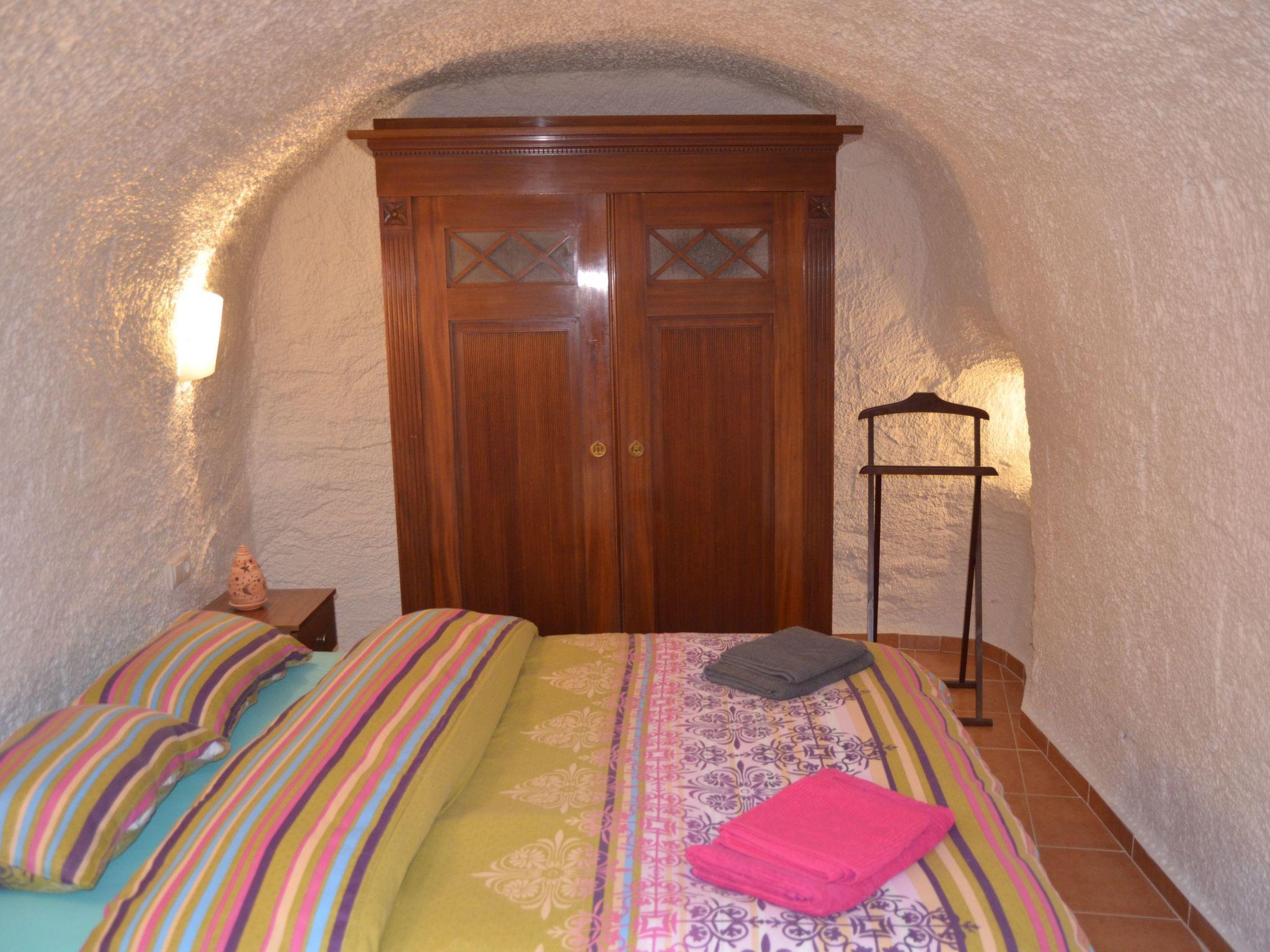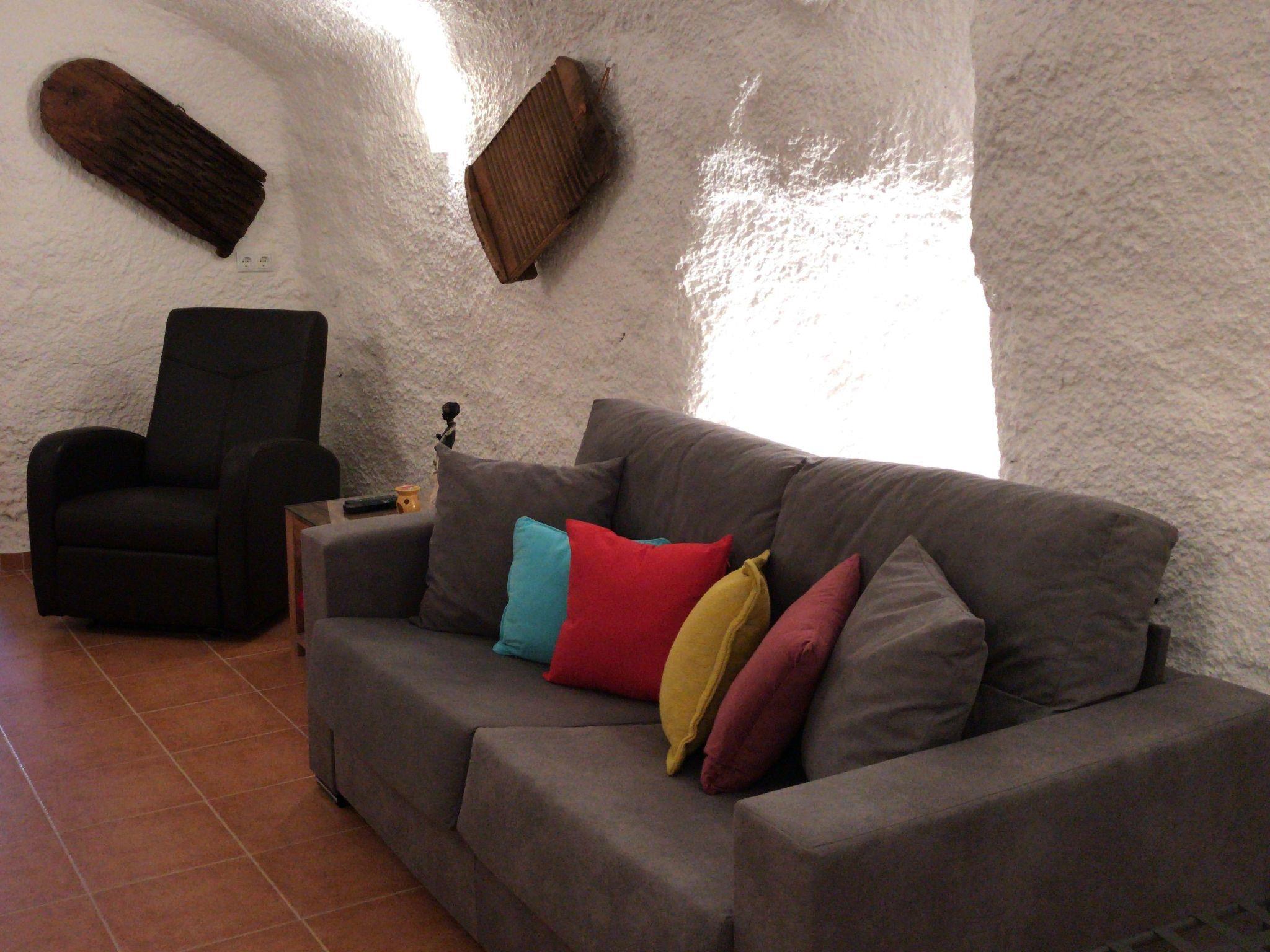 Cueva Murcielago / Cuevas del CampoCave house Cave flat, adventure holiday, pure relaxation holiday* Beautifully renovated cave house. * Only 8 km from one of the largest reservoirs in Spain with a length of 17 km. * Only 80 kilometres from Granada and 85 kilometres from Sierra Nevada, one of the largest ski resorts in Spain, our cave house is furnished and habitable. We have two double bedrooms, one single bedroom and a large pull-out sofa bed for two people. (Two bathrooms, with toilet, shower, bidet and washbasin and electric floor heating.The kitchen is equipped with fridge, cooker and wood stove, washing machine, dryer, toaster, blender, kettle, juicer, coffee maker and crockery with all accessories.A living room with pellet stove, sofa bed, armchair, table, next to the pellet stove is the TV and plenty of space to relax! All rooms are on one floor. On the terrace there is a barbecue area with table and chairs and a sink. This building does not need artificial air conditioning, although it does have a fireplace. The cave is in impermeable natural clay in the mountain. Therefore, the year-round inside temperature is constantly between 18 - 24 degrees Celsius, thanks to the thick natural walls that also insulate the house from noise.large front garden with parasol, table and chairs, sink and gas BBQ. Ideal for relaxing and recharging your batteries after a stressful day at work, the cave houses are well known for their excellent climatic conditions. The temperature in the cave is almost the same in summer and winter. The cave dwellings are always well tempered due to the thick walls and the location in the rock, whether summer or winter, the room temperature is always between 18 and 24 degrees. Our cave is located in Cuevas del Campo (Spain). About 80 kilometres from Granada and about 35 kilometres from the famous cave village of Guadix. Wonderfully situated on one of several reservoirs, where you can pursue your hobby. Swimming with clothing or nudism, fishing for trout and carp, cruising by motorboat or pedal boat, cycling, wonderful motorbike tours. Horse riding and, of course, wonderful hiking tours. 28 kilometres to Castril and the Sierra Cazorla. In the town centre you will find several restaurants with a café-bar, several supermarkets, a butcher and bakery, a pharmacy, a savings bank and several bars. There is a museum in the town centre. The surrounding area is ideal for hiking and cycling. There is also a thermal bath in Zujar which is approx. 20 km away.