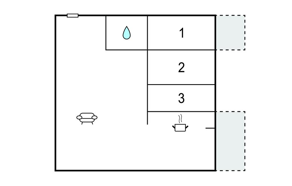 Opholdsstue 30m2 - 1 Soveplads. (Sofa, madras eller lignende).