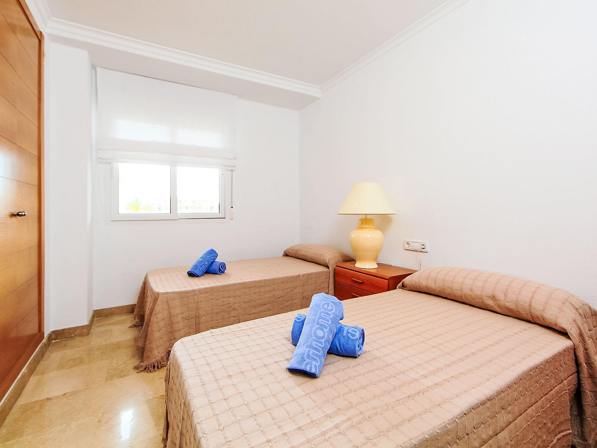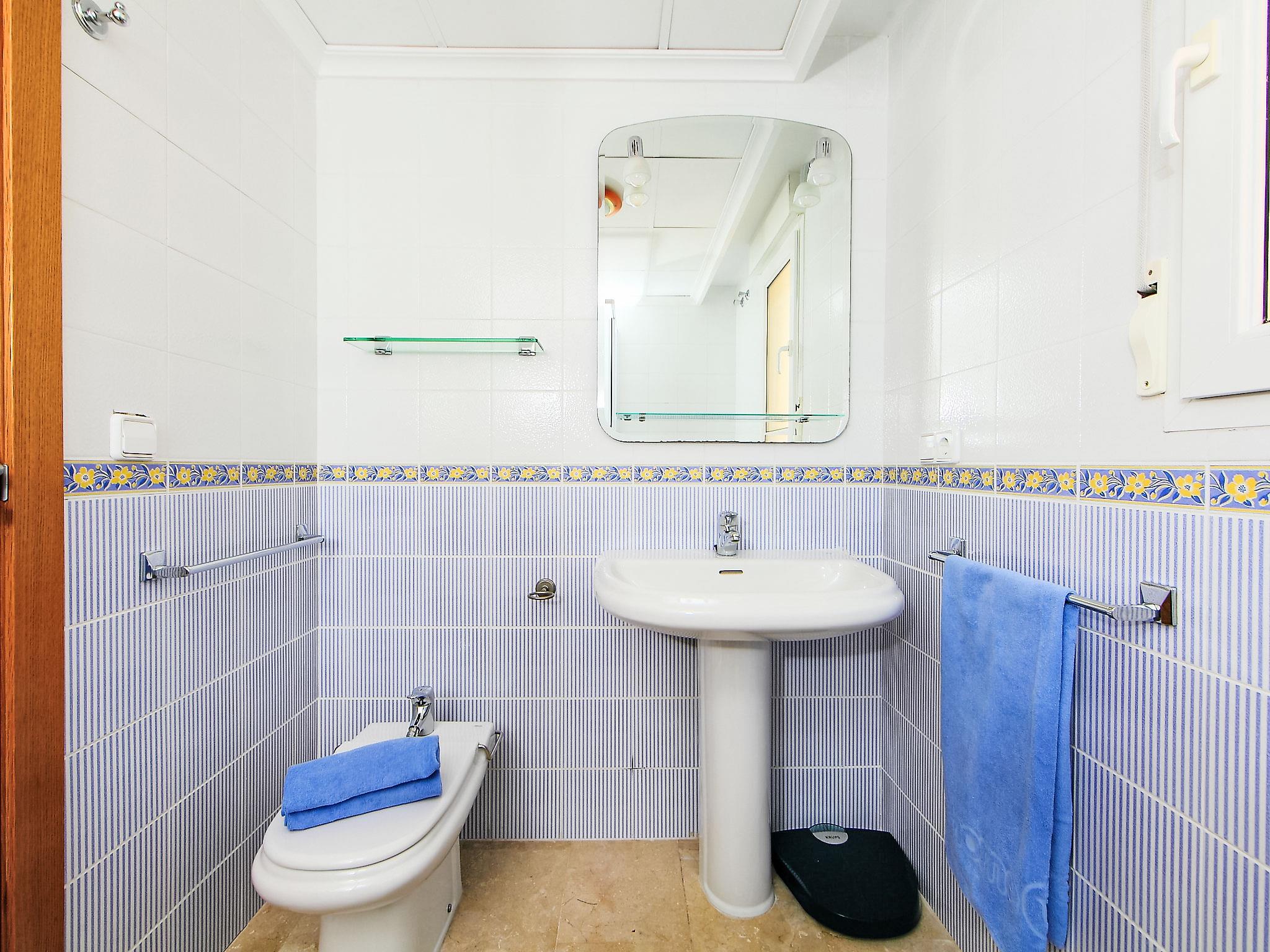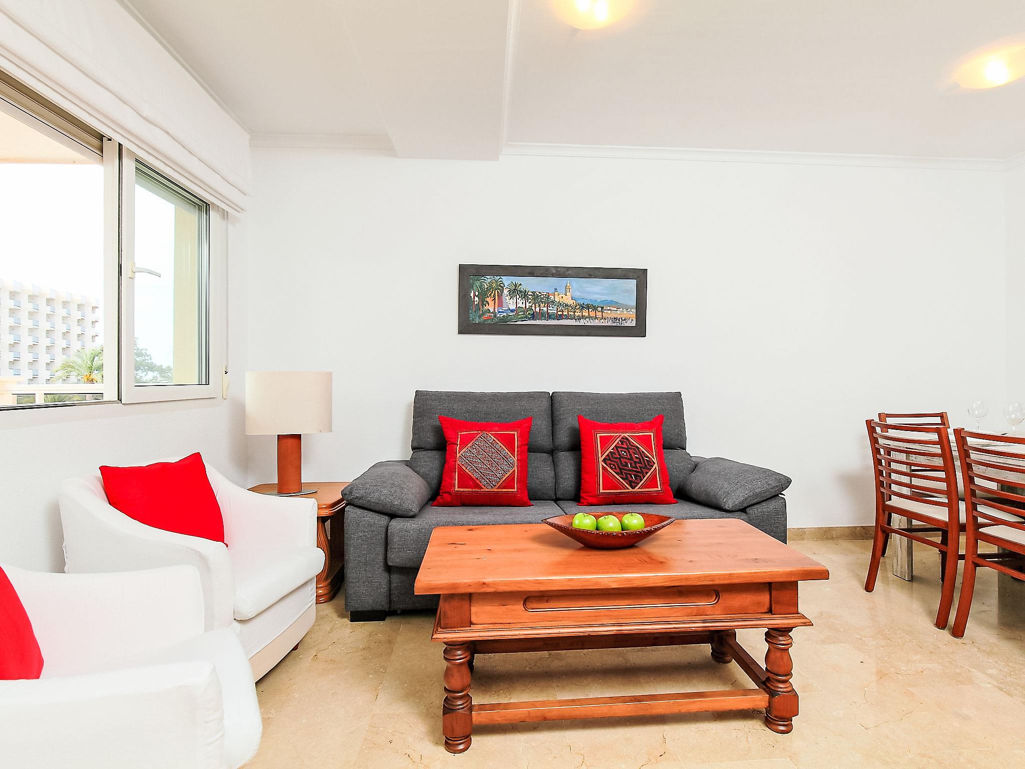 "Estrella del Mar", 3-room apartment on 2nd floor, north-west facing position. Spacious, very comfortable and modern furnishings: living/dining room with satellite TV and international TV channels (flat screen), air conditioning and forced-air heating. Exit to the terrace. 1 room with 1 french bed, bath/bidet/WC, air conditioning and forced-air heating. 1 room with 2 beds (90 cm), air conditioning and forced-air heating. Kitchen (oven, dishwasher, 4 ceramic glass hob hotplates, microwave, freezer, electric coffee machine). Bath/bidet/WC. Facilities: washing machine, iron, hair dryer. Internet (WiFi, free). Garage. Please note: non-smokers only. Maximum 1 pet/ dog allowed. AT-447361-A // Reg. Nr.: ESFCTU00000305500056235200000000000000000AT-447361-A1
