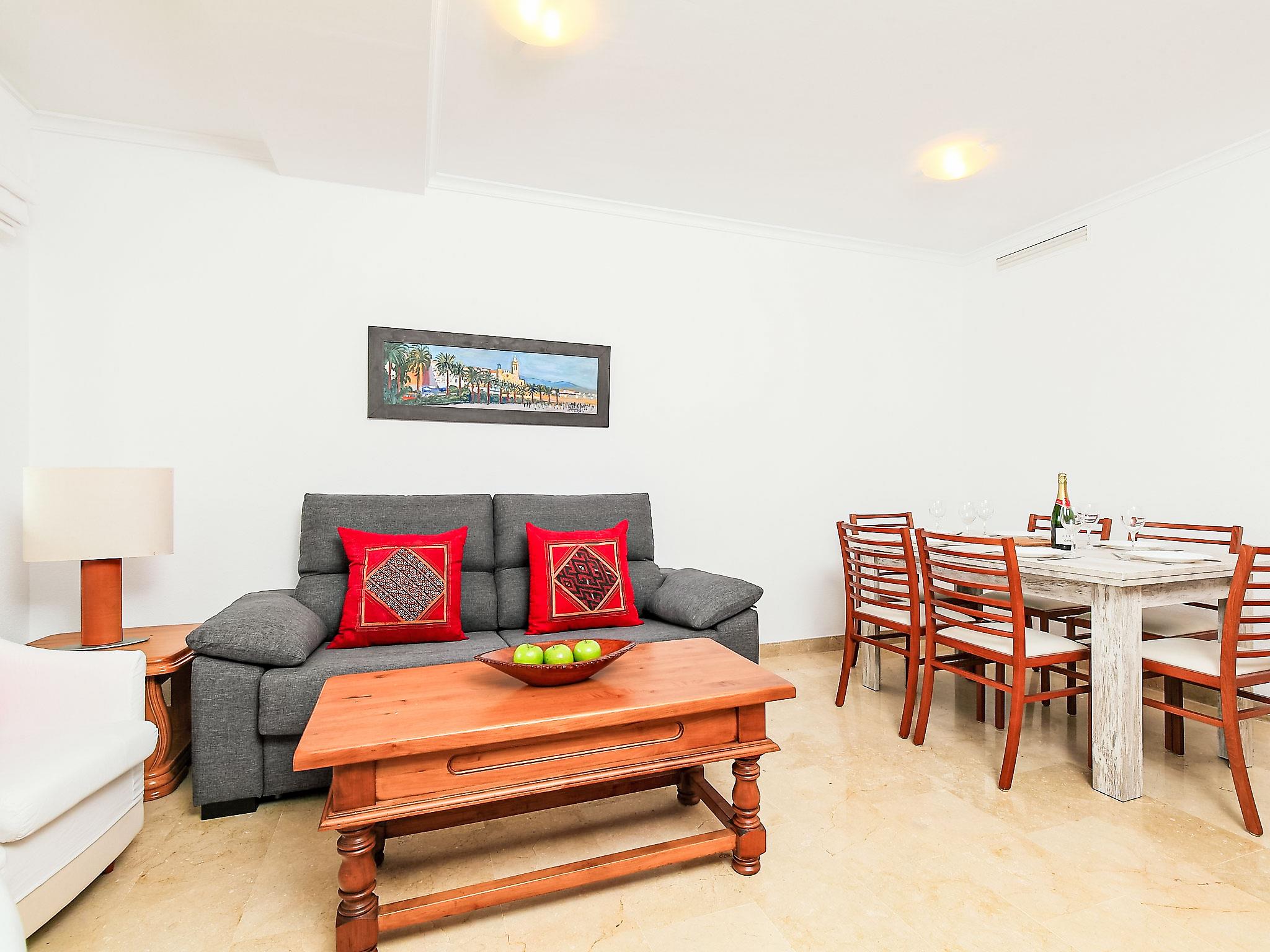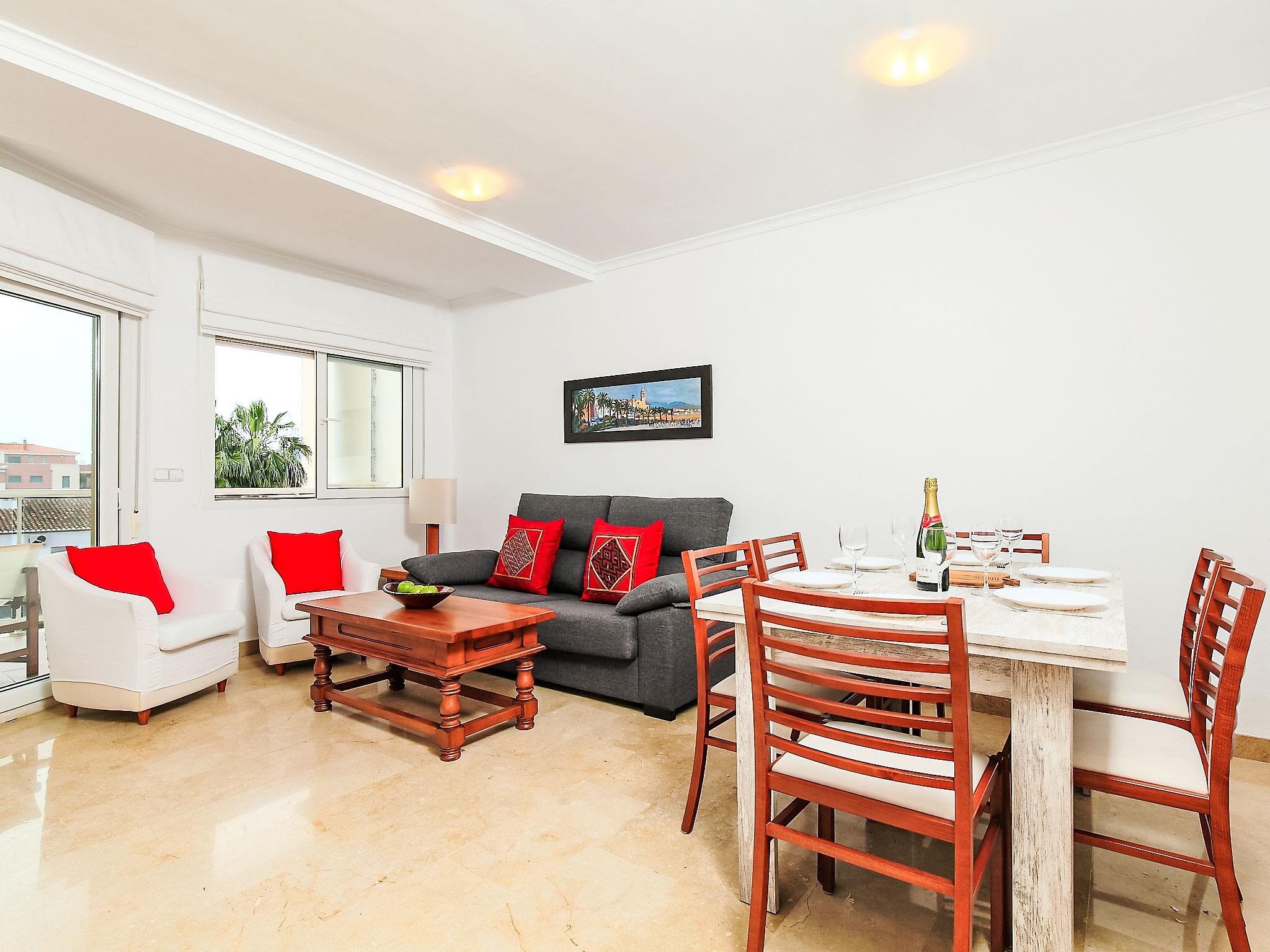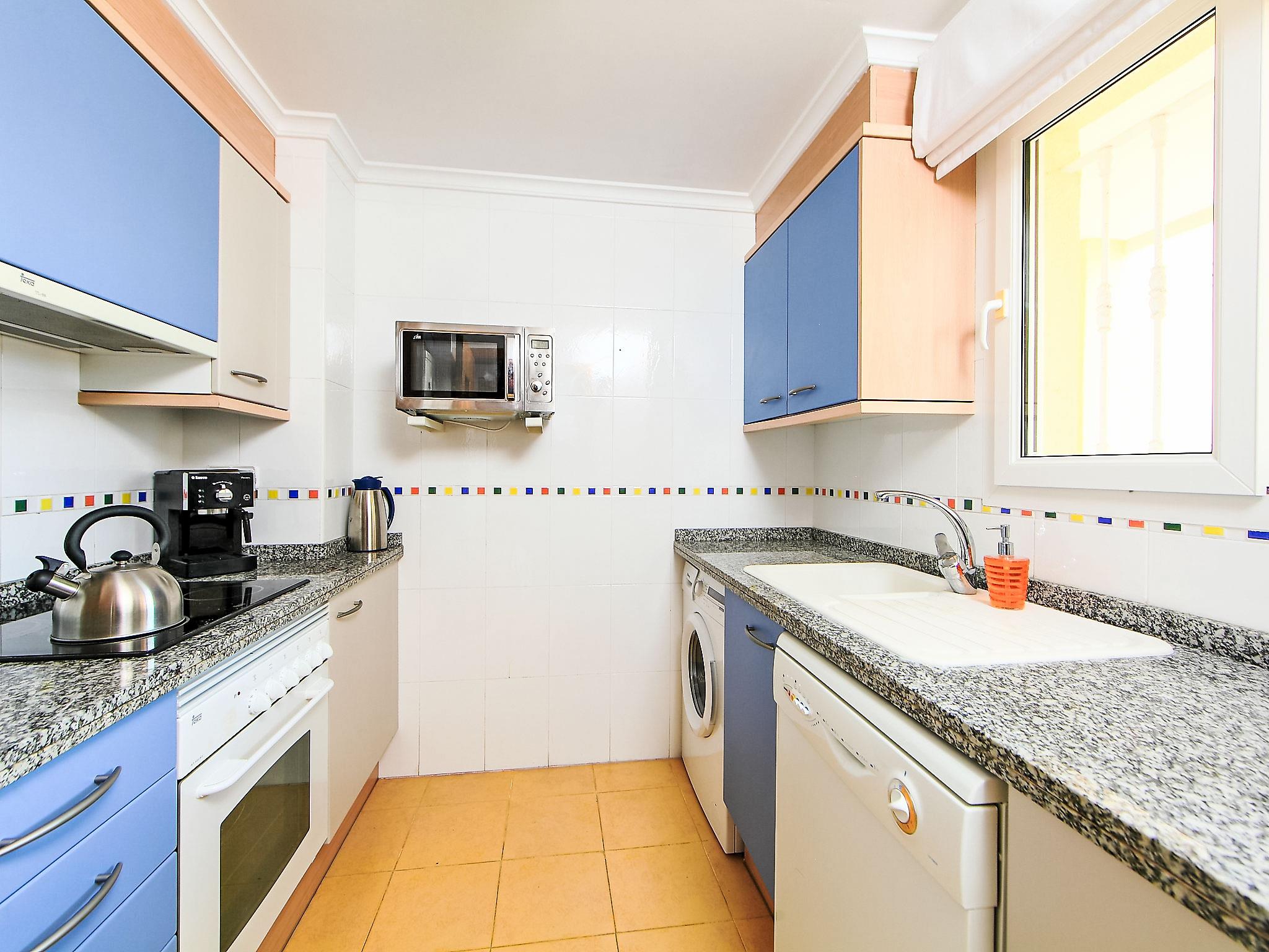 "Estrella del Mar", 3-room apartment on 2nd floor, north-west facing position. Spacious, very comfortable and modern furnishings: living/dining room with satellite TV and international TV channels (flat screen), air conditioning and forced-air heating. Exit to the terrace. 1 room with 1 french bed, bath/bidet/WC, air conditioning and forced-air heating. 1 room with 2 beds (90 cm), air conditioning and forced-air heating. Kitchen (oven, dishwasher, 4 ceramic glass hob hotplates, microwave, freezer, electric coffee machine). Bath/bidet/WC. Facilities: washing machine, iron, hair dryer. Internet (WiFi, free). Garage. Please note: non-smokers only. Maximum 1 pet/ dog allowed. AT-447361-A // Reg. Nr.: ESFCTU00000305500056235200000000000000000AT-447361-A1