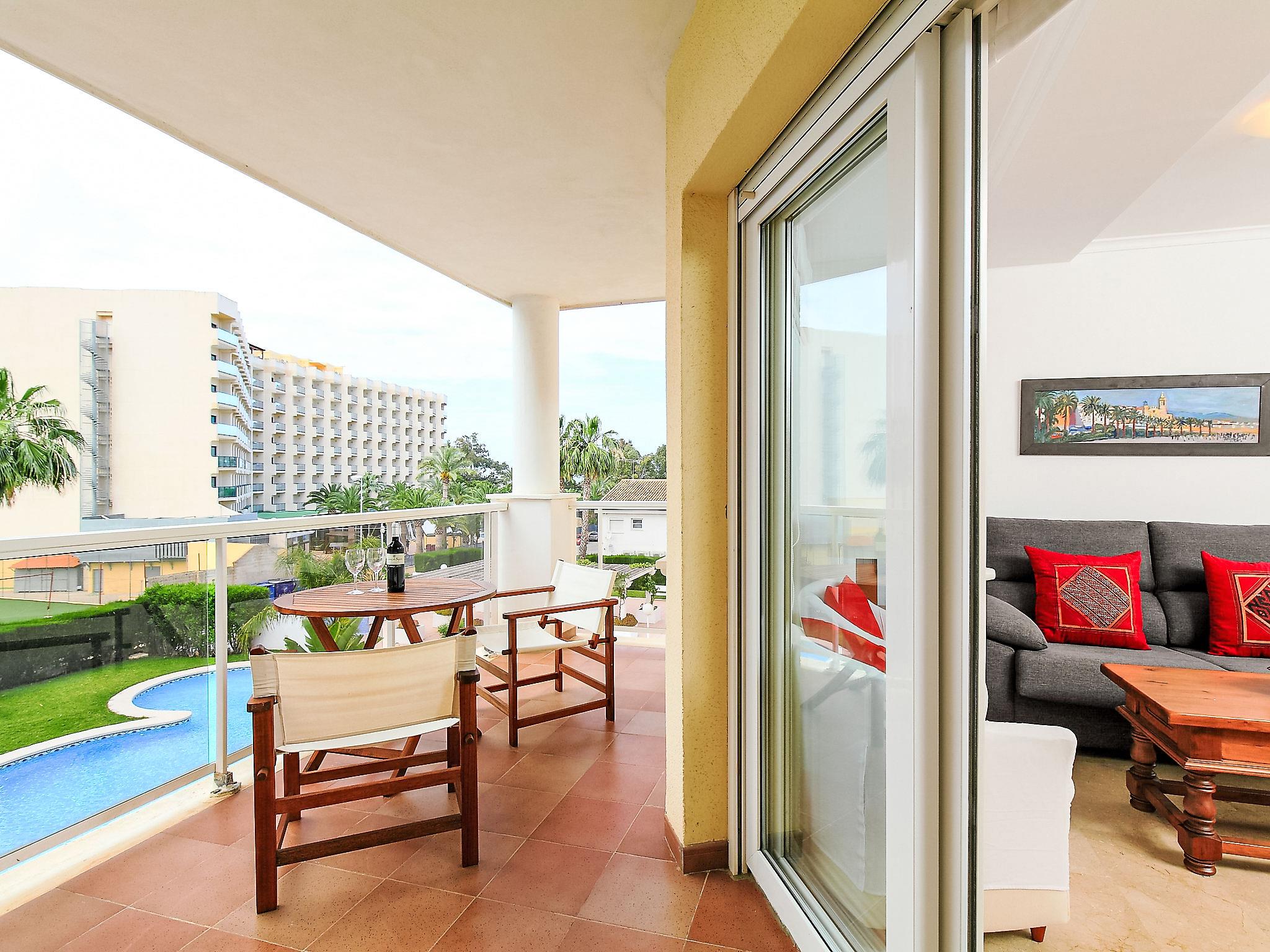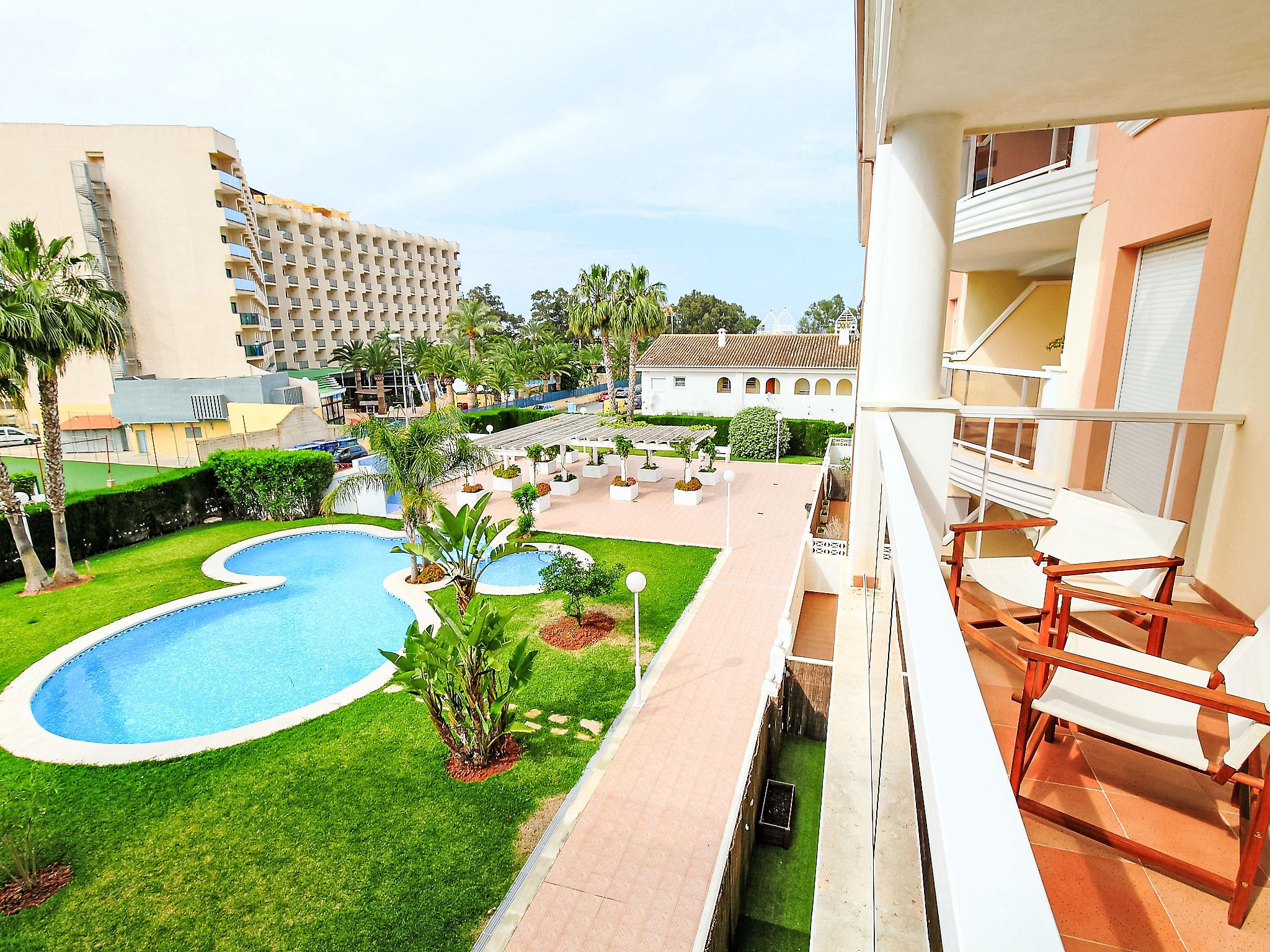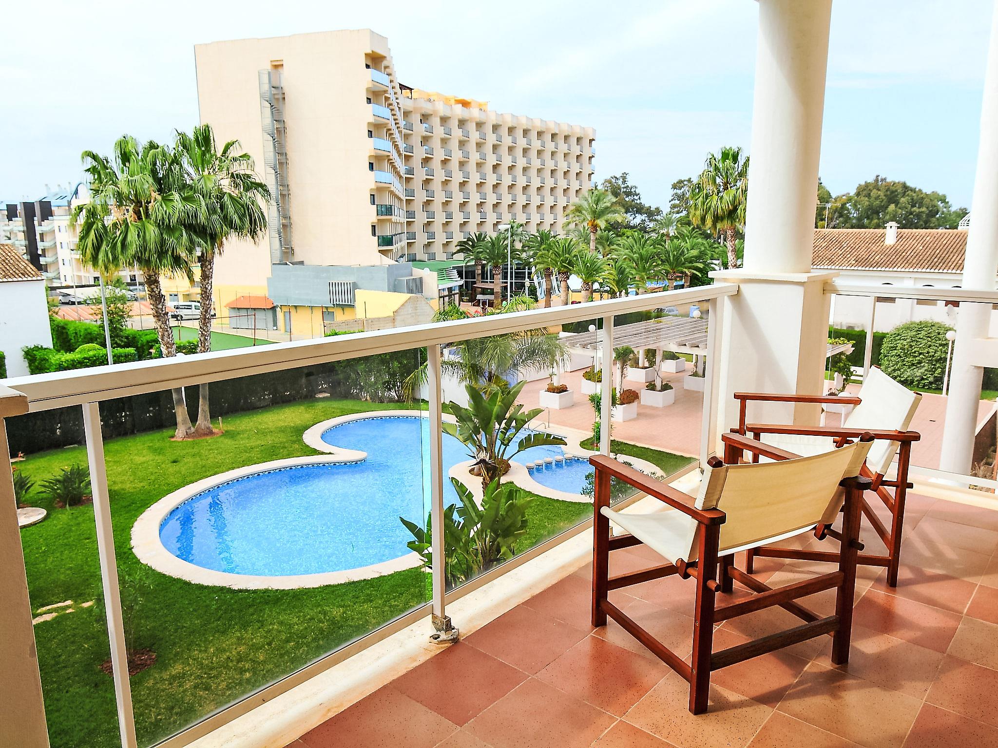 Sorts de la Mar 1 km from Dénia: Very beautiful, comfortable apartment block "Estrella del Mar", 3 storeys. On the outskirts, 1 km from the centre of Dénia, 130 m from the sea, 130 m from the beach, north facing position. For shared use: large garden (fenced) with lawn and trees, swimming pool (12 x 8 m, depth 80 - 210 cm, seasonal availability: 01.Jan. - 31.Dec.). Unconventional pool shape. Children's pool, outdoor shower. Bus stop 500 m, railway station 2.5 km, ferry 2.5 km. Nearby attractions: club náutico 500 m. The owner does not accept any youth groups.