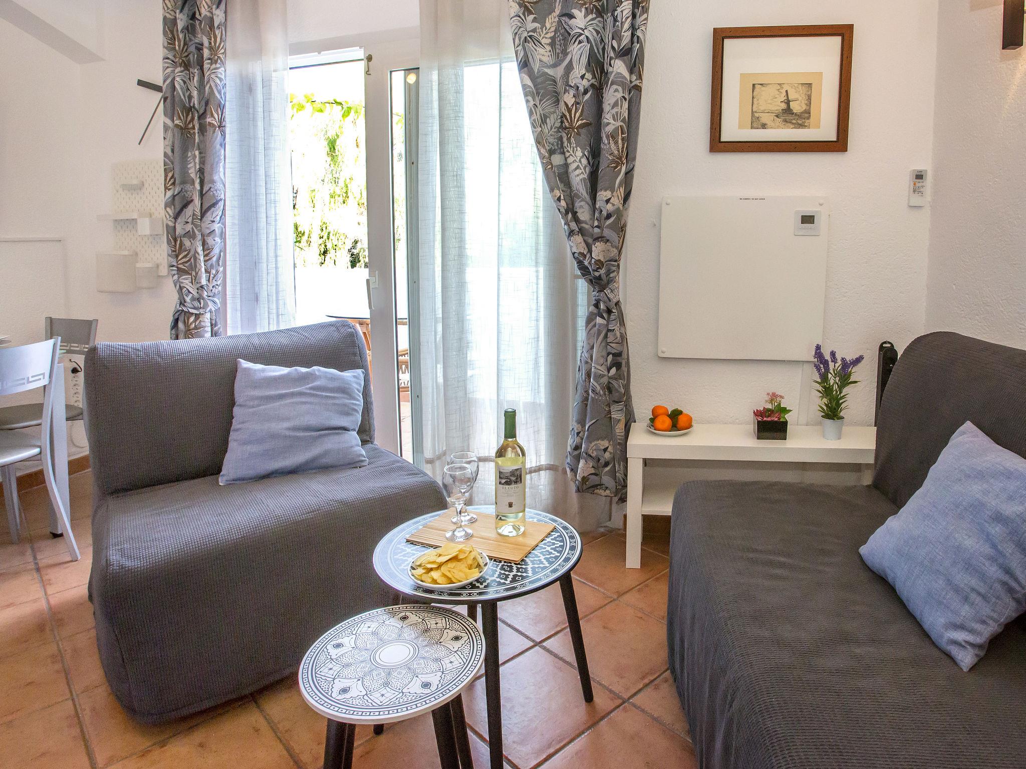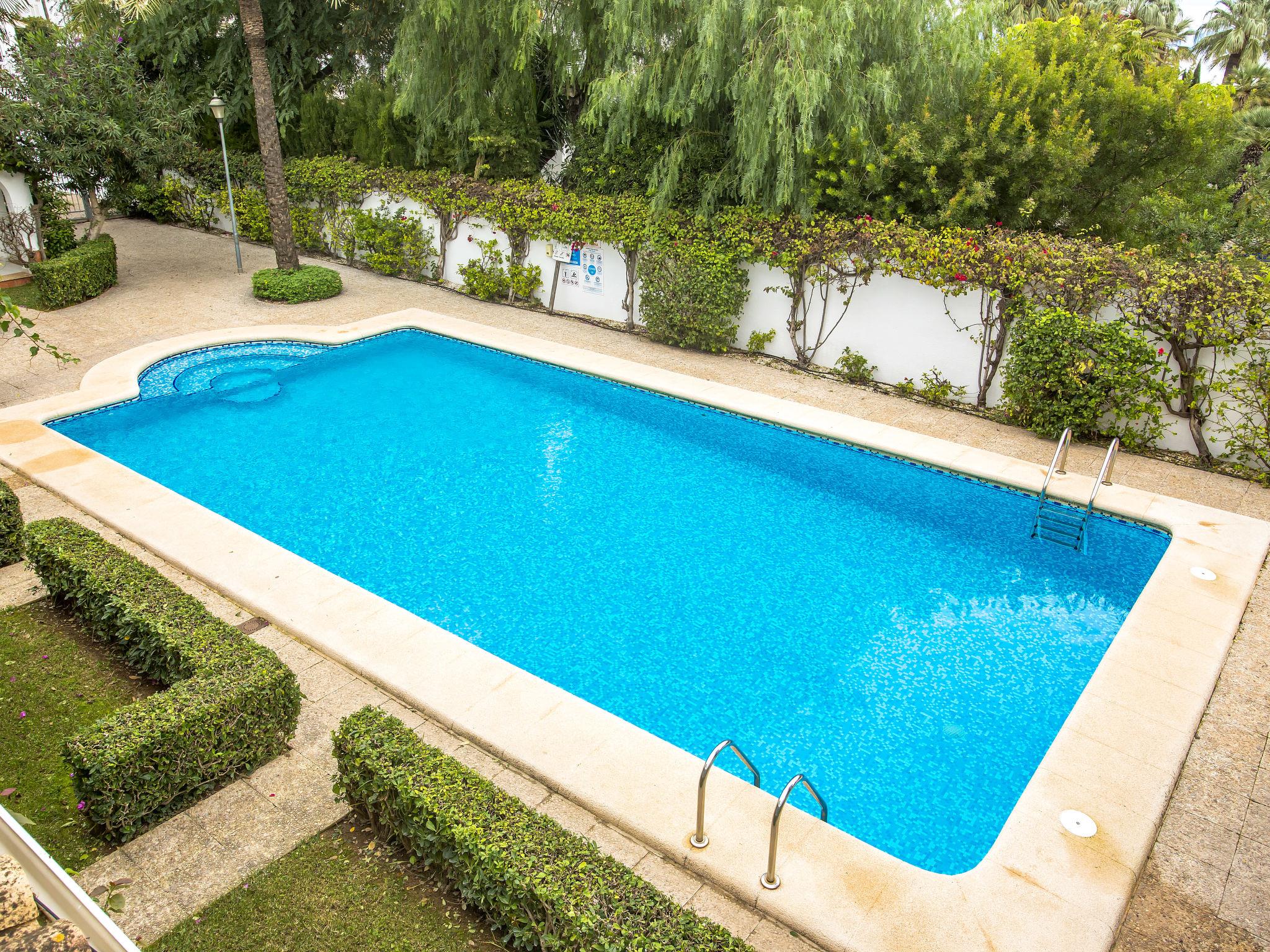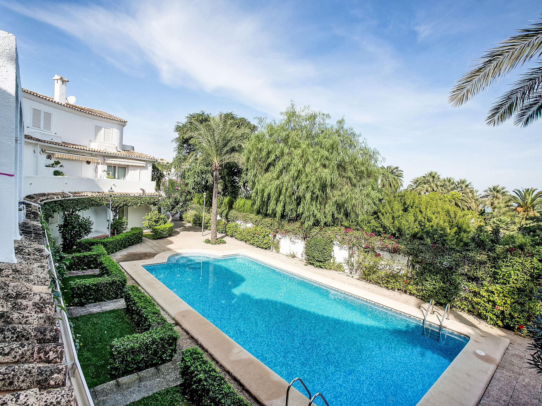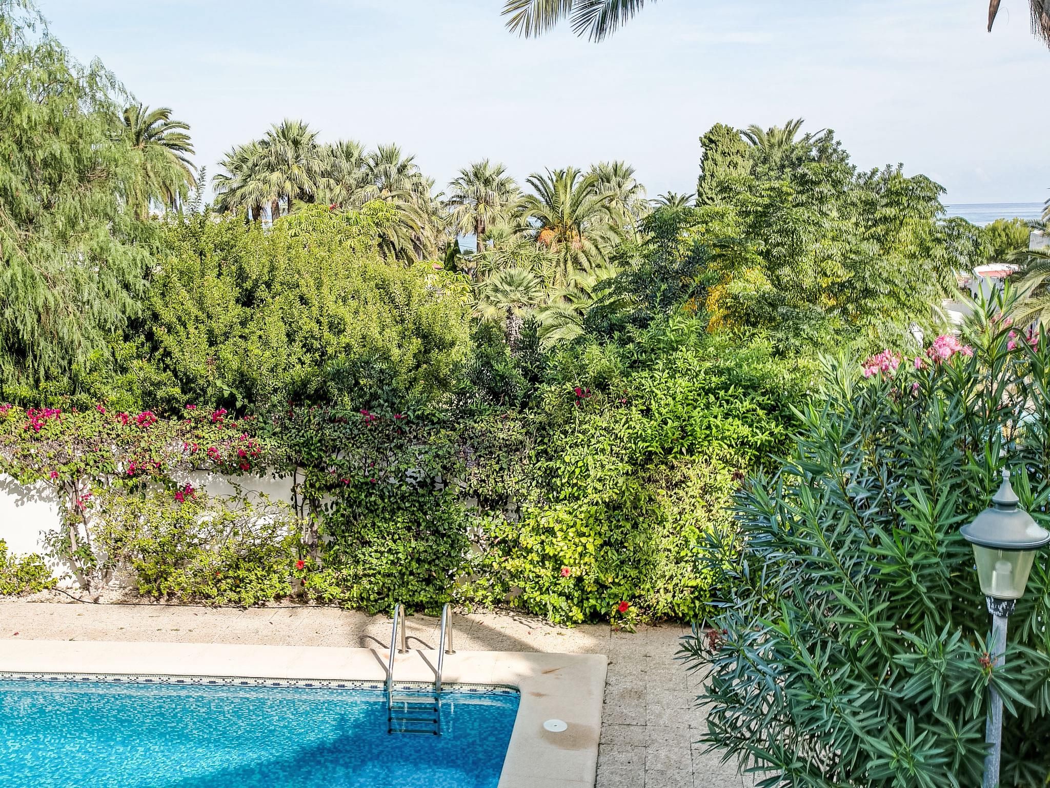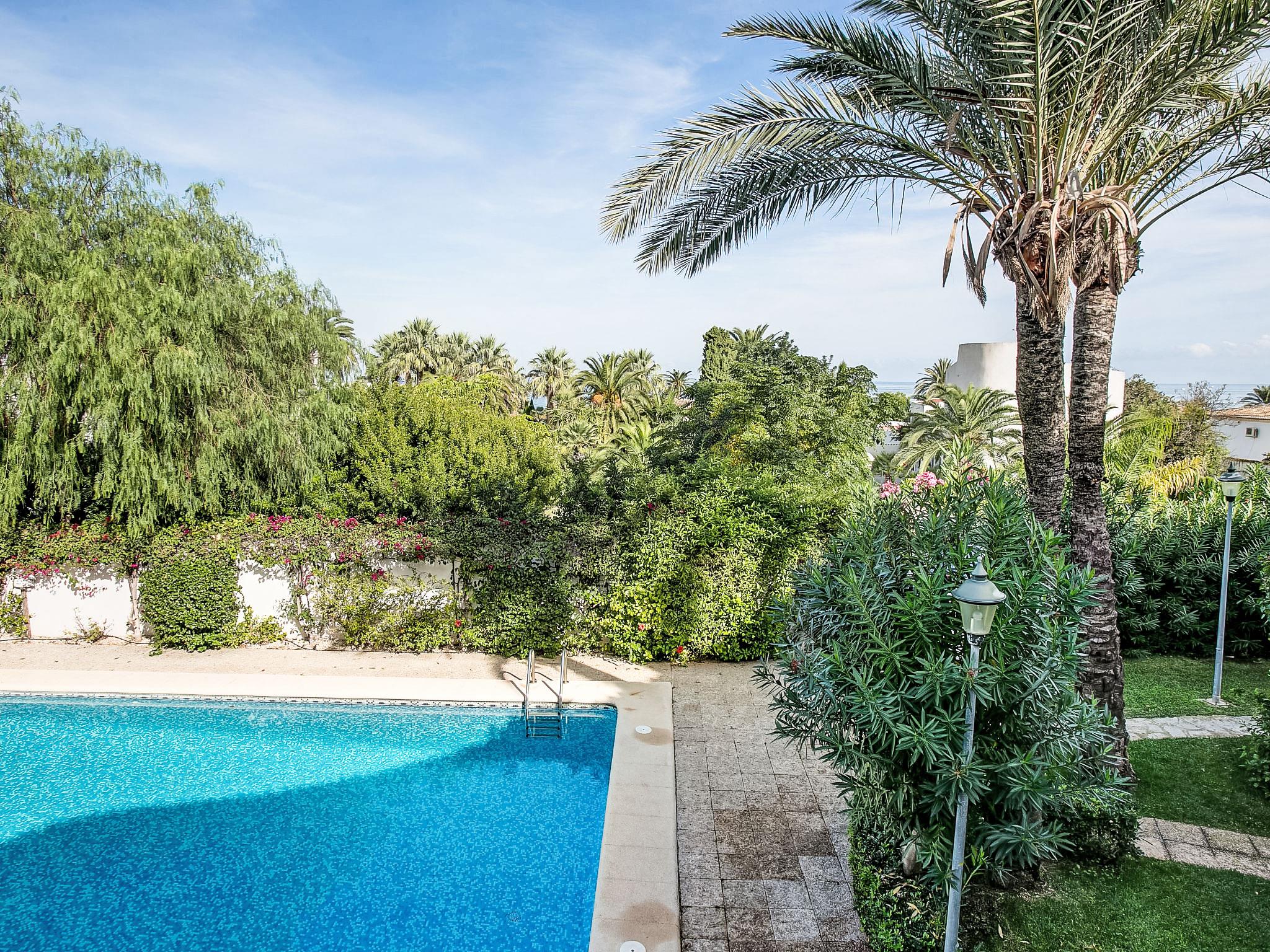 Cosy residence "Oasis Beach". On the outskirts, 1.5 km from the centre of Denia, in a quiet position, 200 m from the sea. For shared use: beautiful, well-kept garden (fenced) with lawn and plants, swimming pool (12 x 5 m, seasonal availability: 01.Jan. - 31.Dec.) with internal staircase. Outdoor shower, parking. Supermarket, restaurant, bar, café 600 m, bus stop 500 m, railway station 1.5 km, ferry 2 km, sandy beach 300 m. Sports harbour 500 m, golf course (18 hole) 5 km, tennis 3 km.