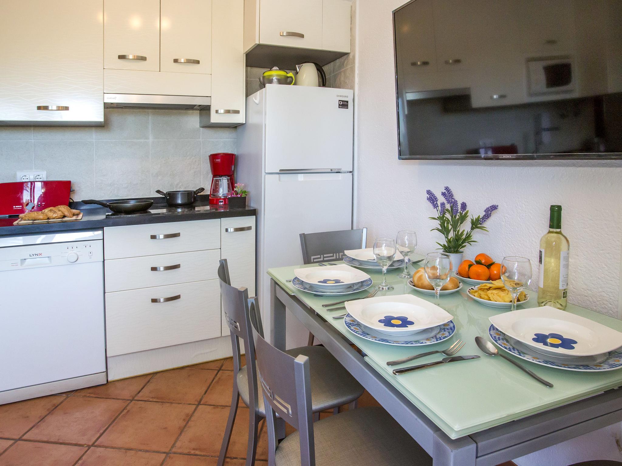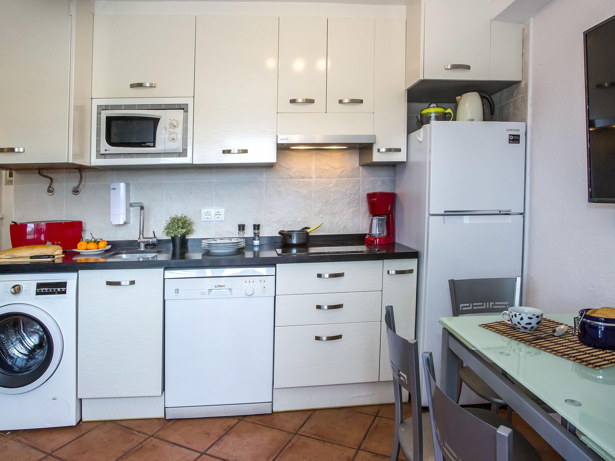 "Oasis Beach", 3-room apartment. Comfortable and cosy furnishings: living/dining room with digital TV, electric heating and air conditioning. Exit to the terrace. 1 room with 1 french bed (135 cm, length 190 cm), digital TV, international TV channels, electric heating and fan. 1 room with 1 x 2 bunk beds (90 cm, length 190 cm), fan. Open kitchen (dishwasher, 4 ceramic glass hob hotplates, microwave, freezer, electric coffee machine). Shower/WC. Electric heating. Facilities: washing machine, iron, hair dryer. Internet (WiFi, free). Maximum 1 pet/ dog allowed. AT-458532-A // Reg. Nr.: ESFCTU00000305500037145900000000000000000AT-458532-A7