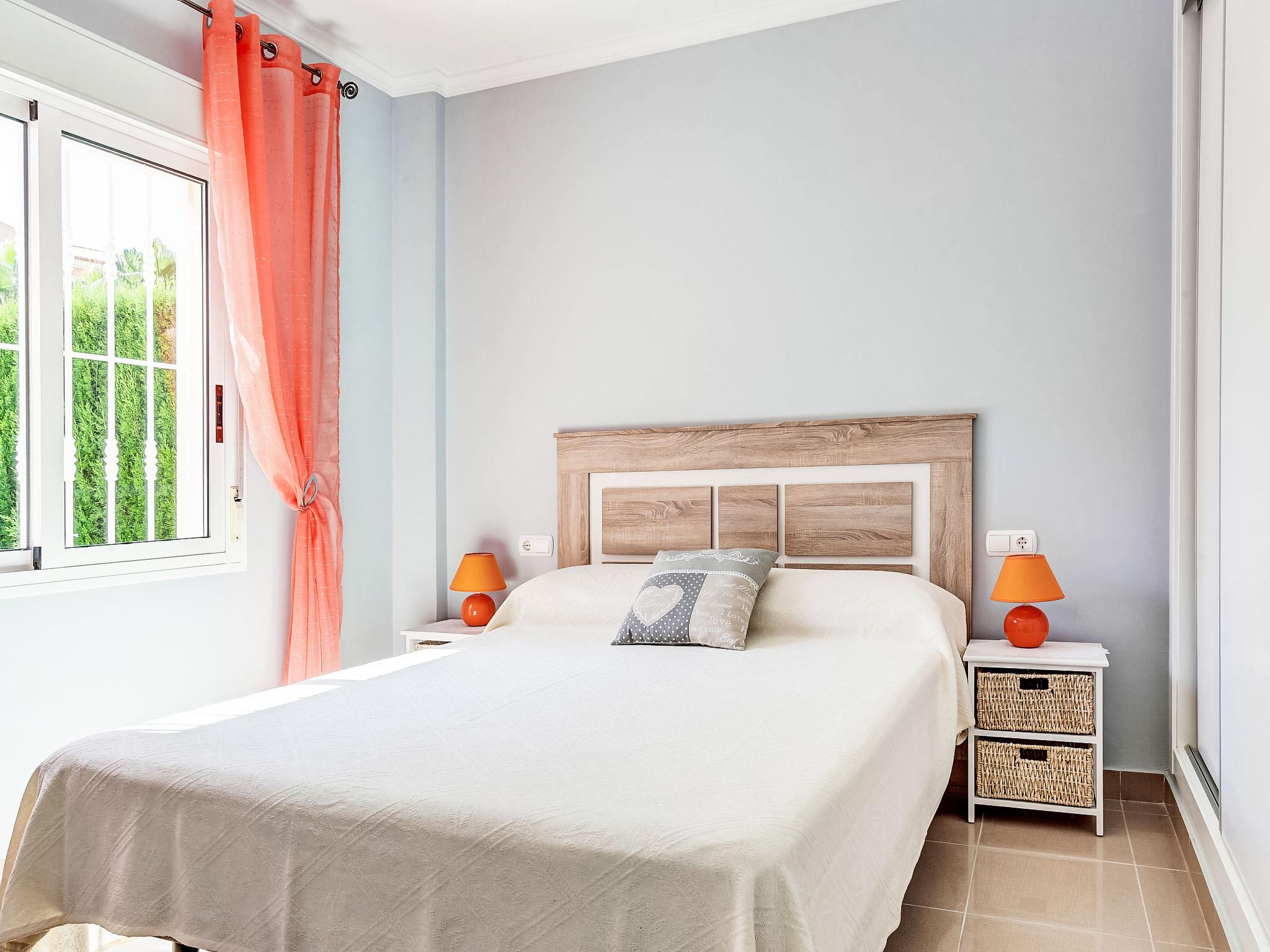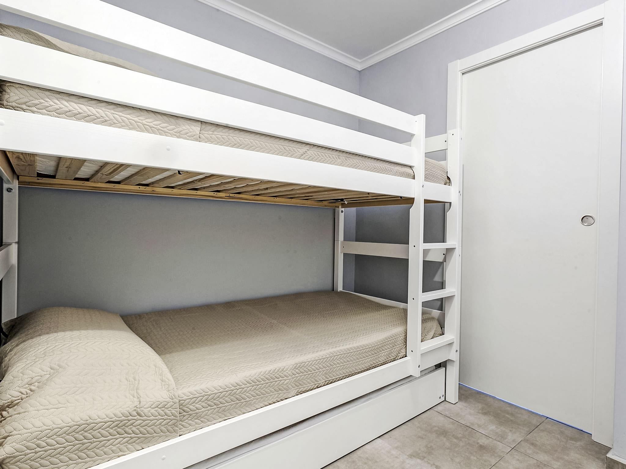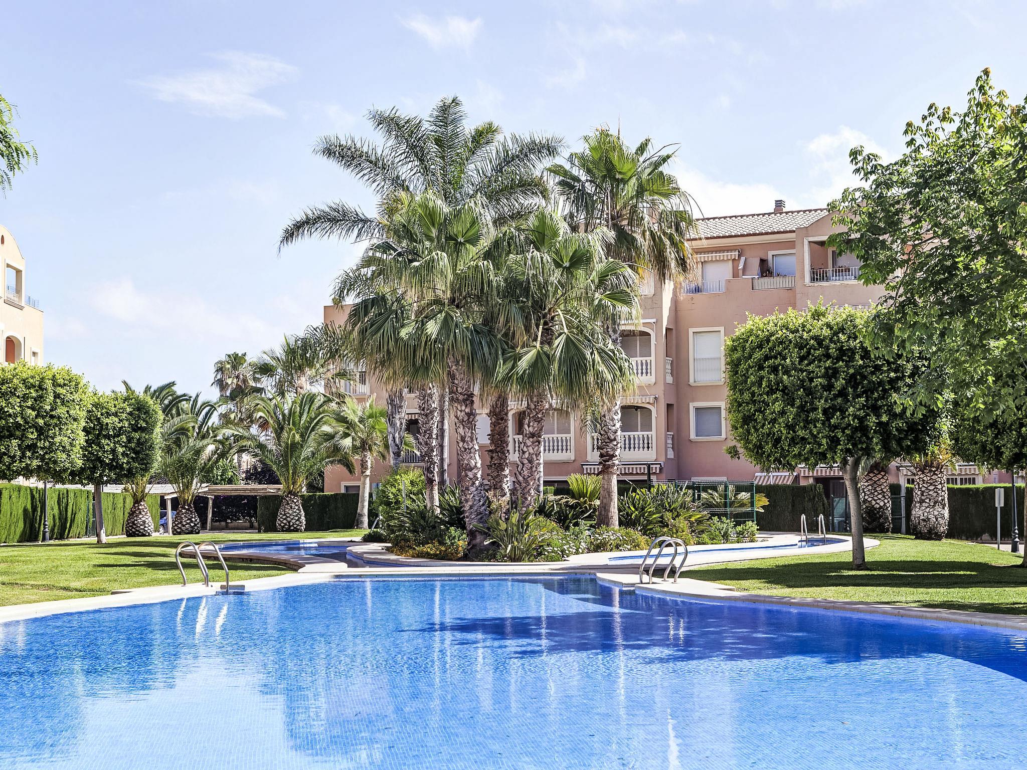 "Rincón del Mediterráneo", 3-room apartment 47 m2, on the ground floor. Comfortable and cosy furnishings: living/dining room with digital TV, flat screen, air conditioning and forced-air heating. Exit to the terrace, to the swimming pool. 1 room with 1 french bed (150 cm, length 190 cm), air conditioning and forced-air heating. 1 room with 1 x 2 bunk beds (90 cm, length 200 cm), 1 pull-out bed (1 pers. 2 x 90 cm, length 200 cm). Open kitchen (oven, 4 ceramic glass hob hotplates, microwave, freezer, electric coffee machine). Shower/WC. Terrace 15 m2. Terrace furniture. View of the swimming pool and the garden. Facilities: washing machine, children's high chair, baby cot. Internet (WiFi, free). Parking space n 19 (roofed). Please note: non-smoking house. AT-458533-A // Reg. Nr.: ESFCTU00000304500083935600000000000000000AT-458533-A8