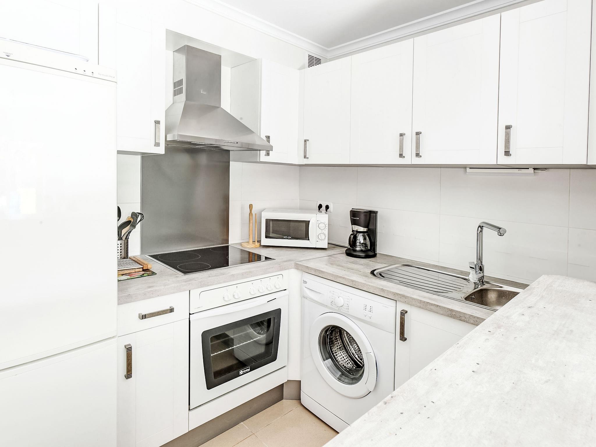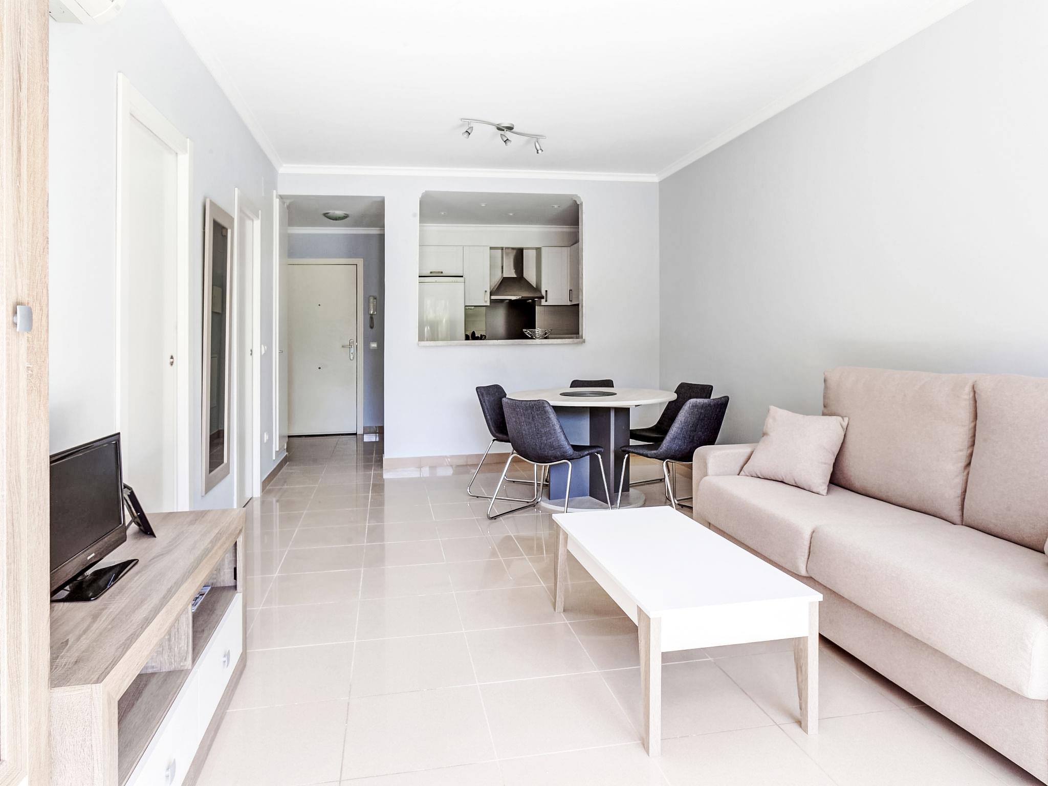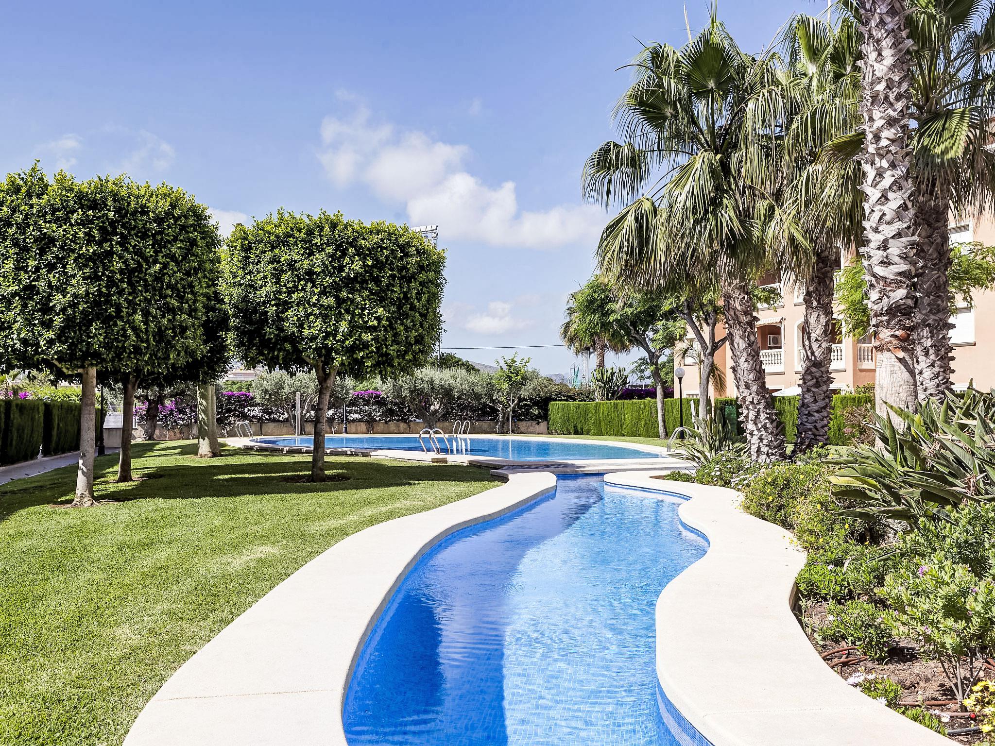 "Rincón del Mediterráneo", 3-room apartment 47 m2, on the ground floor. Comfortable and cosy furnishings: living/dining room with digital TV, flat screen, air conditioning and forced-air heating. Exit to the terrace, to the swimming pool. 1 room with 1 french bed (150 cm, length 190 cm), air conditioning and forced-air heating. 1 room with 1 x 2 bunk beds (90 cm, length 200 cm), 1 pull-out bed (1 pers. 2 x 90 cm, length 200 cm). Open kitchen (oven, 4 ceramic glass hob hotplates, microwave, freezer, electric coffee machine). Shower/WC. Terrace 15 m2. Terrace furniture. View of the swimming pool and the garden. Facilities: washing machine, children's high chair, baby cot. Internet (WiFi, free). Parking space n 19 (roofed). Please note: non-smoking house. AT-458533-A // Reg. Nr.: ESFCTU00000304500083935600000000000000000AT-458533-A8