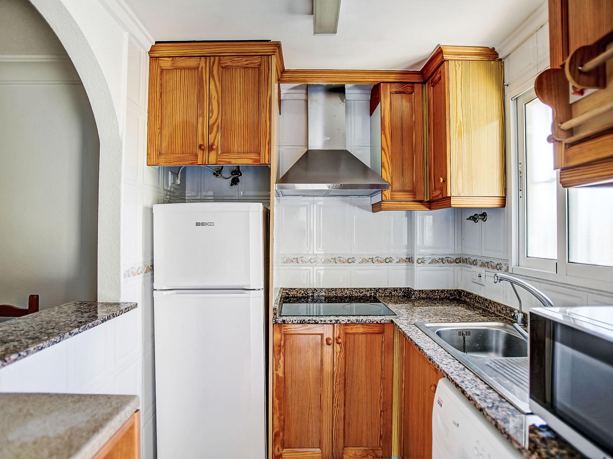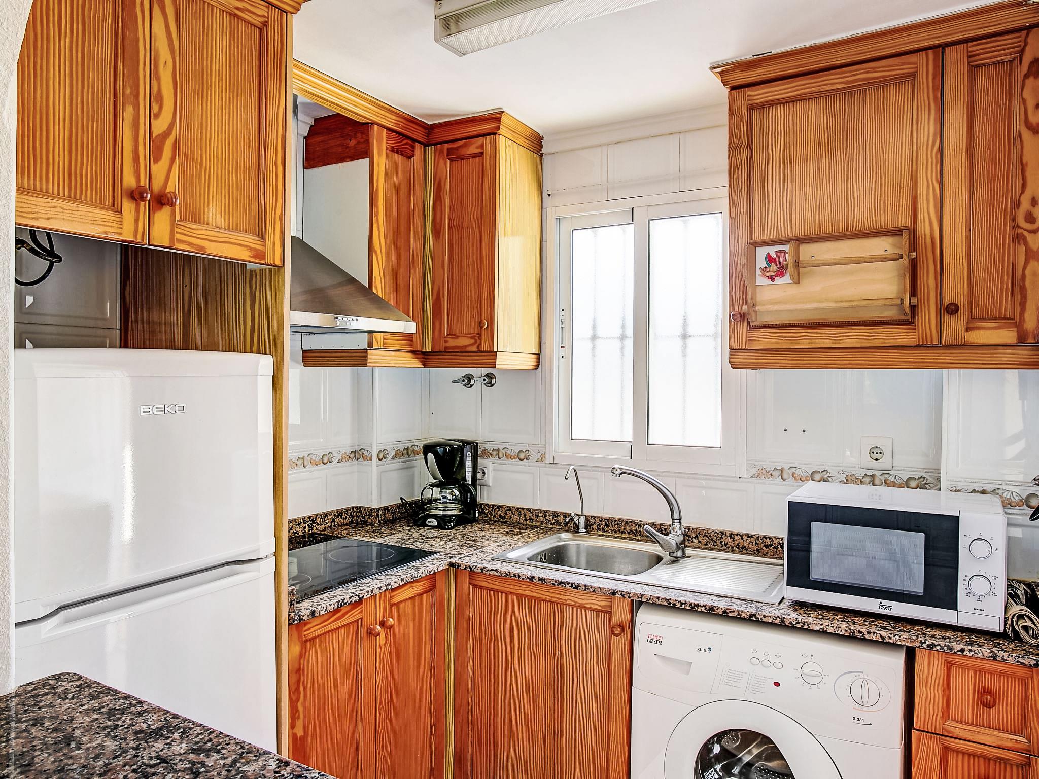 "Residencial Daly", 3-room apartment 48 m2. Comfortable and cosy furnishings: living/dining room with digital TV, air conditioning and forced-air heating. Exit to the veranda. 1 room with 1 french bed and fan. 1 room with 1 french bed and fan. Open kitchen (4 ceramic glass hob hotplates, toaster, microwave, freezer, electric coffee machine). Shower/WC. Facilities: washing machine, iron, children's high chair, baby cot for up to 2 year olds. Internet (WiFi, free). AT-463143-A // Reg. Nr.: ESFCTU00000304500052997400000000000000000AT-463143-A3