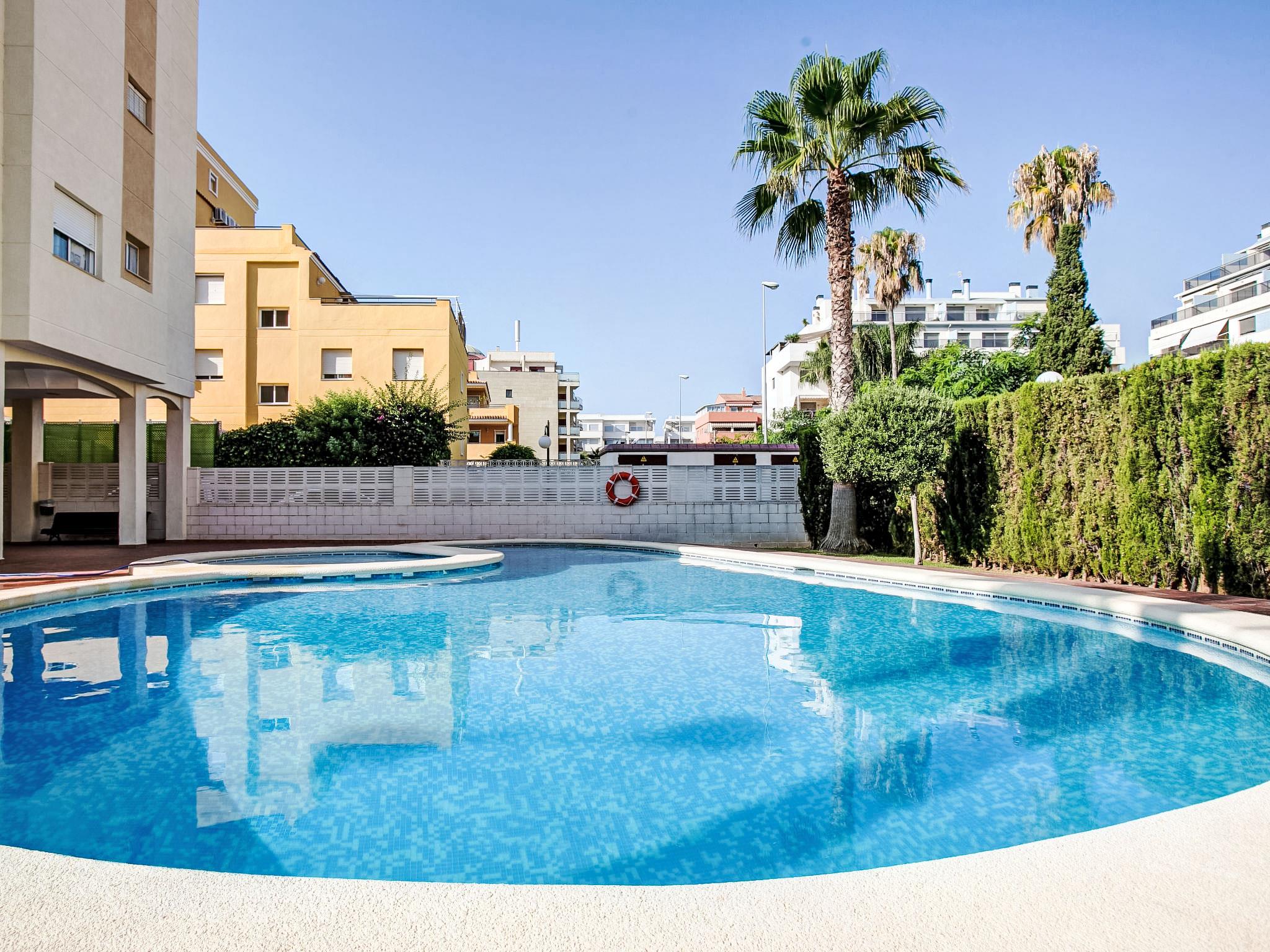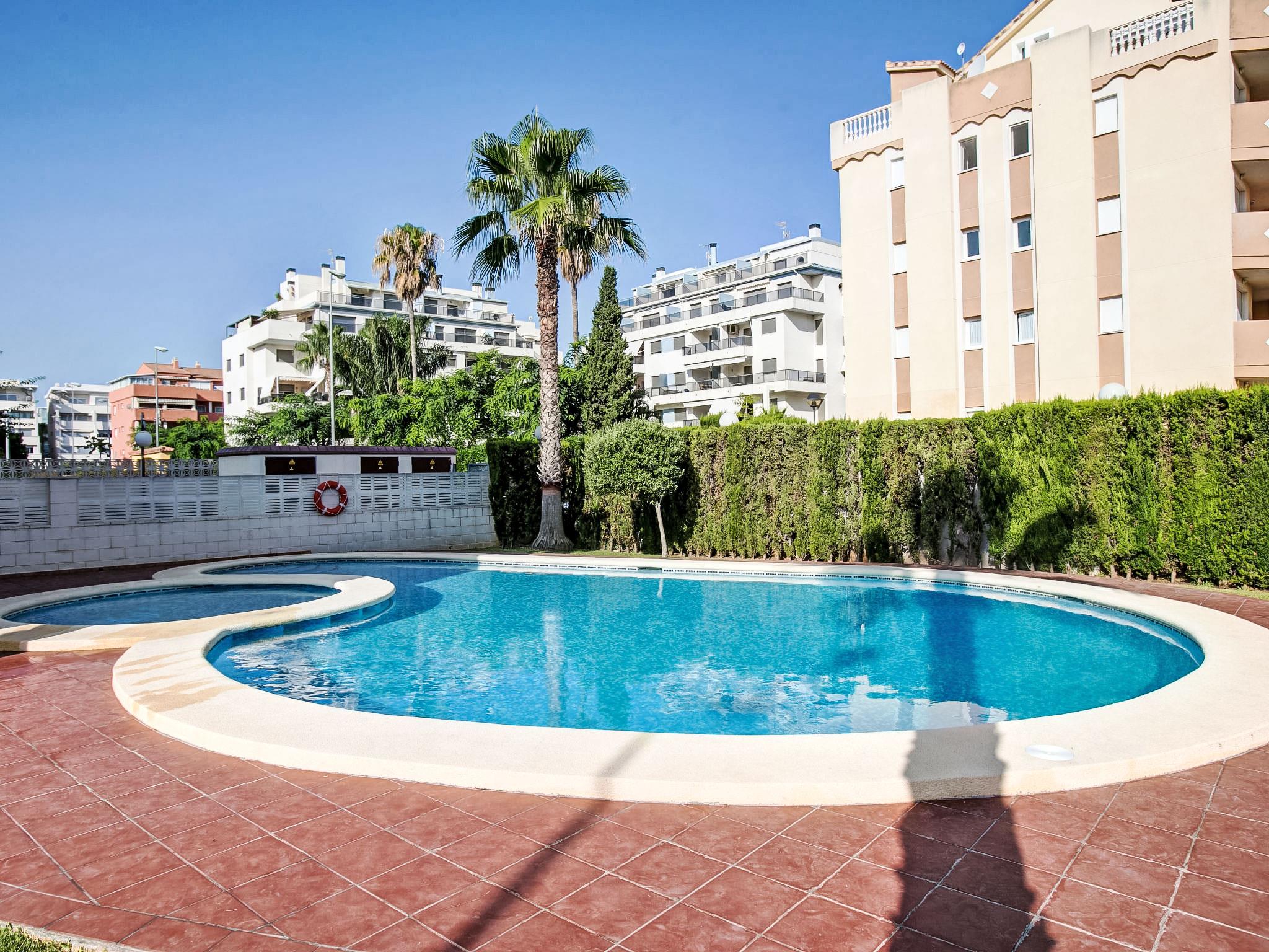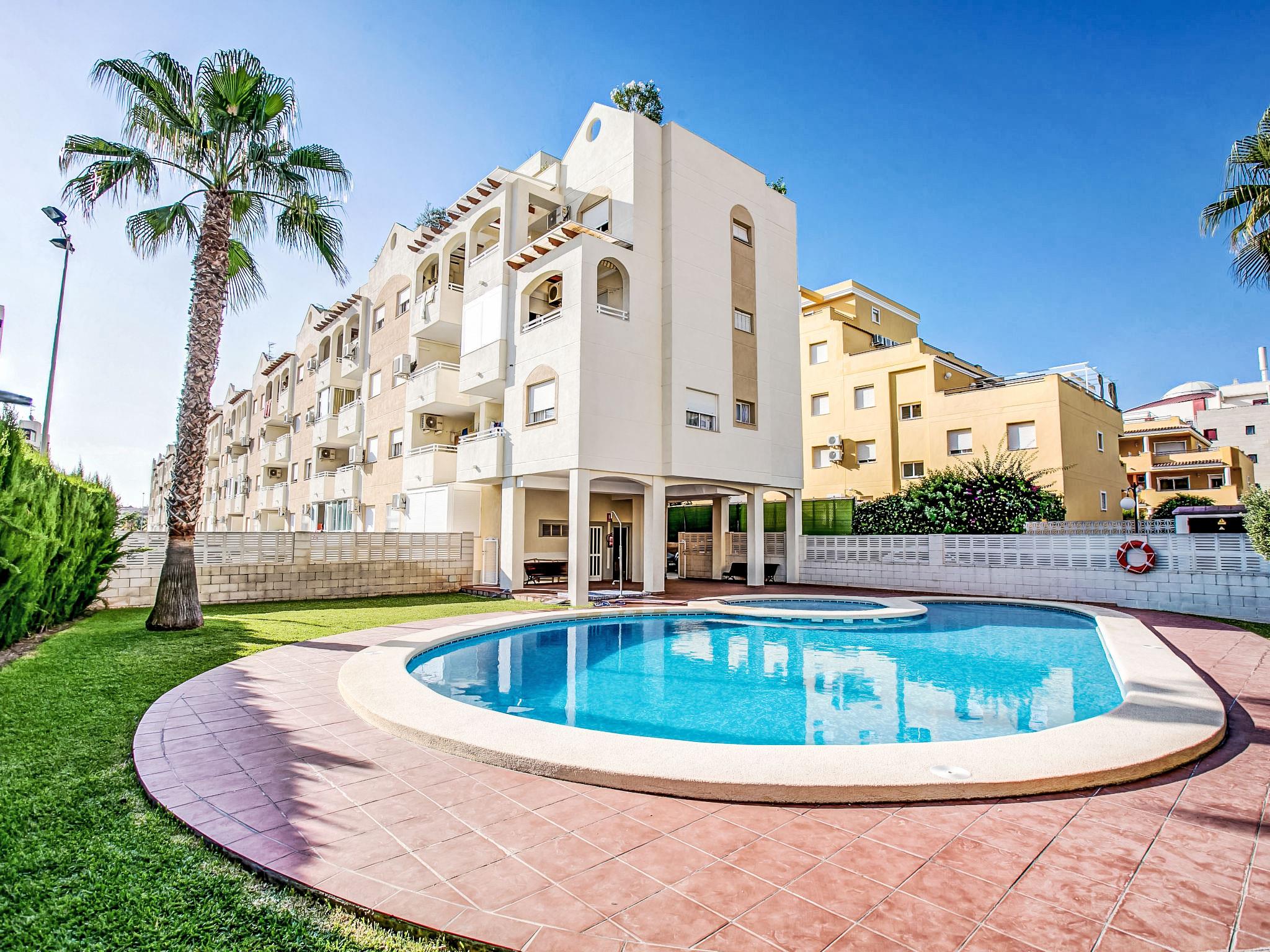 Cosy, comfortable apartment block "Daly", 3 storeys. On the outskirts, 500 m from the centre of Dénia, from the sea, 250 m from the beach, road to cross. For shared use: swimming pool (15 x 10 m, depth 180 cm, seasonal availability: 01.Jan. - 31.Dec.) with internal staircase. Shower/WC in the pool area, parking on the premises. Supermarket 1 km, restaurant, bus stop 200 m, sandy beach 250 m. Sports harbour 1.5 km, golf course (18 hole) 8 km, tennis 700 m.