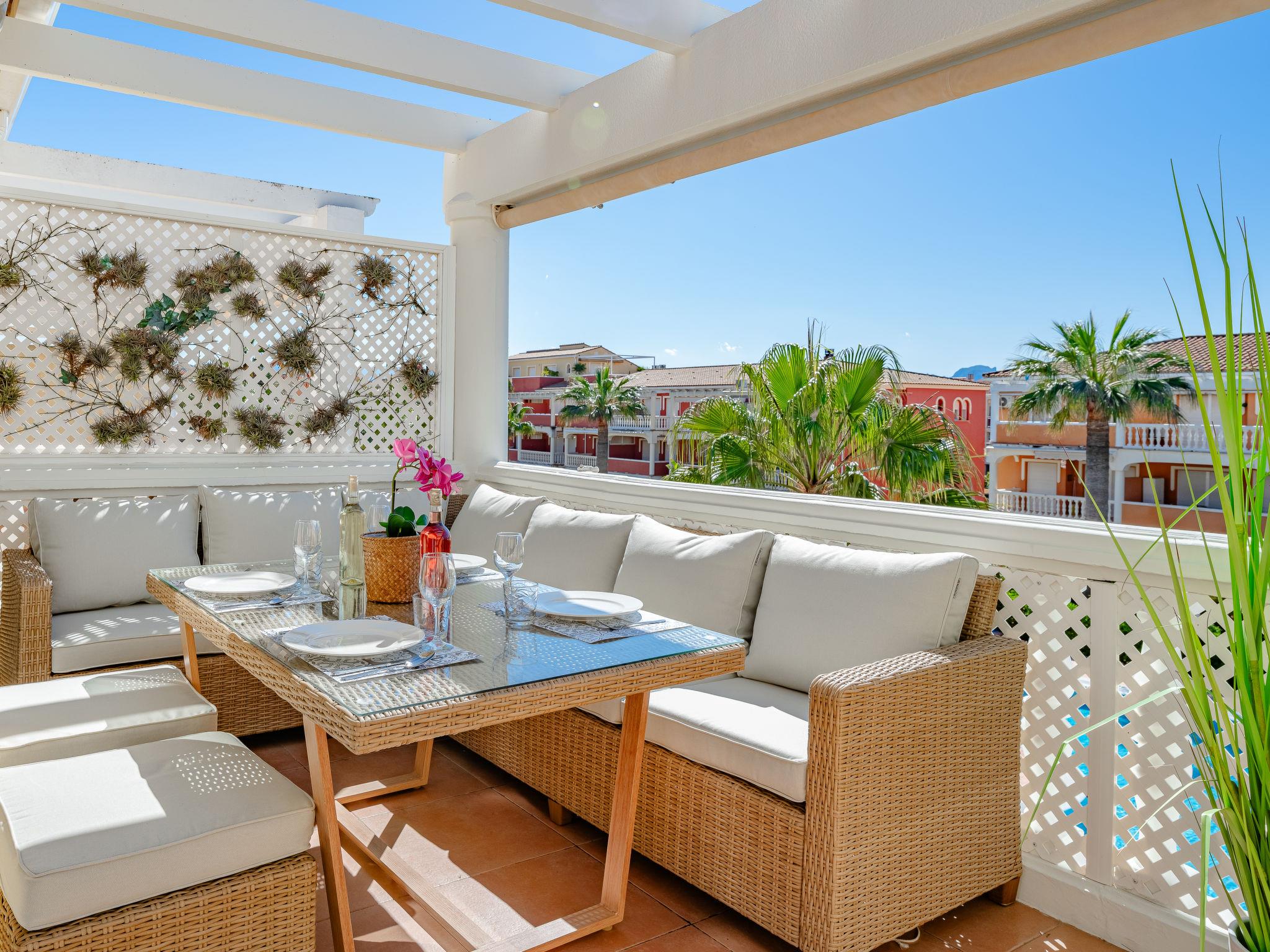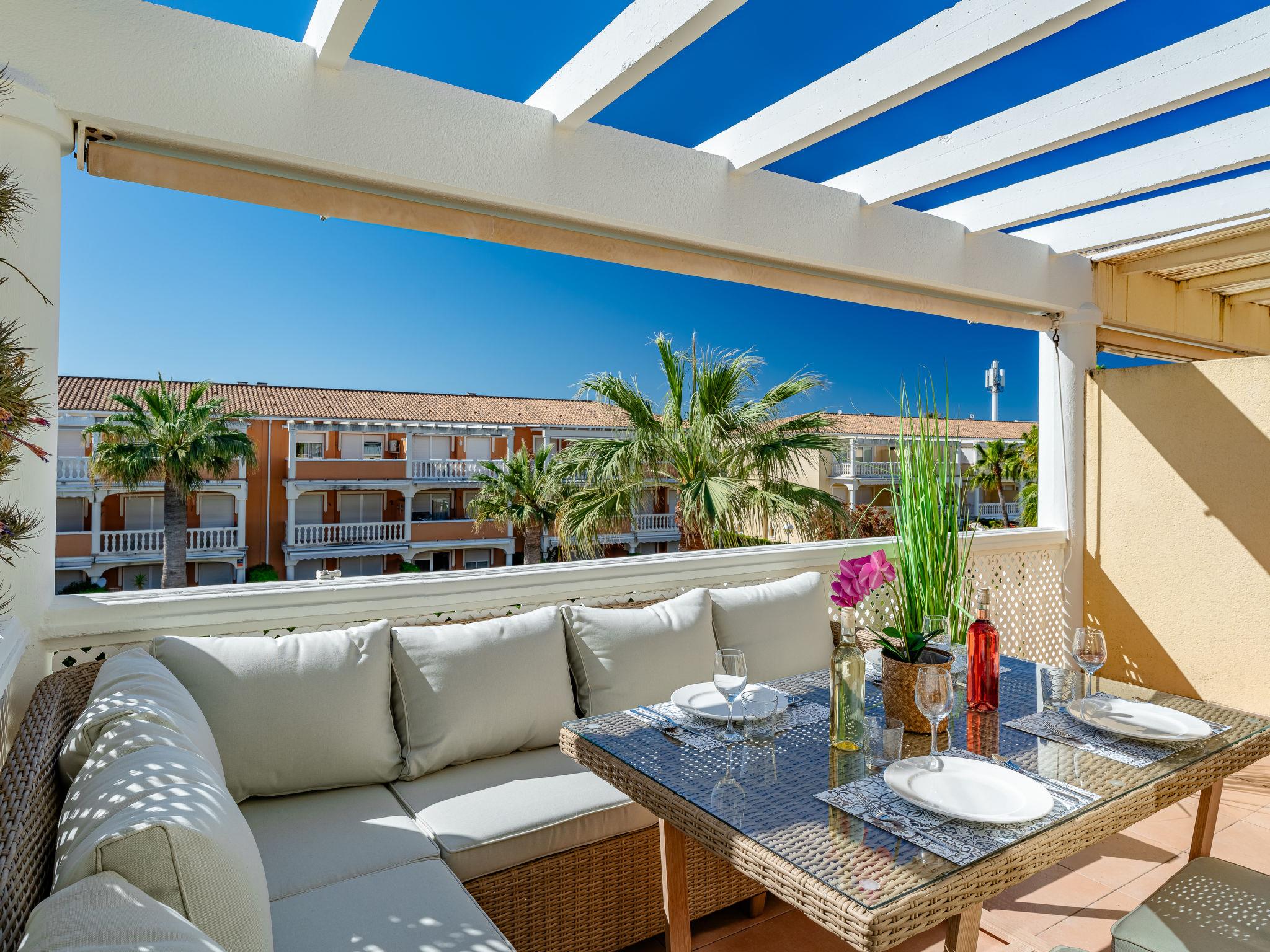 Estrella Blanca: Very beautiful, cosy, very comfortable apartment block "Estrella Blanca". In the resort 1.5 km from the centre of Dénia, 300 m from the sea, 300 m from the beach. For shared use: natural state property (fenced), swimming pool kidney-shaped (seasonal availability: 01.Jan. - 31.Dec.). Children's pool, outdoor shower, children's playground, roofed, parking space n 30. Supermarket, restaurant, bar 150 m, bus stop 160 m, railway station 2 km, sandy beach 300 m. Sports harbour 1.5 km, marina 1.5 km, surf school 1.5 km, sailing school 1.5 km. Nearby attractions: AQUALANDIA 40 km, TERRA MITICA 40 km, MUNDOMAR 40 km, BENIDORM PALACE 40 km, OCEANO GRAFICO 100 km. Please note: no lift. The owner does not accept any groups. The owner does not accept any youth groups.