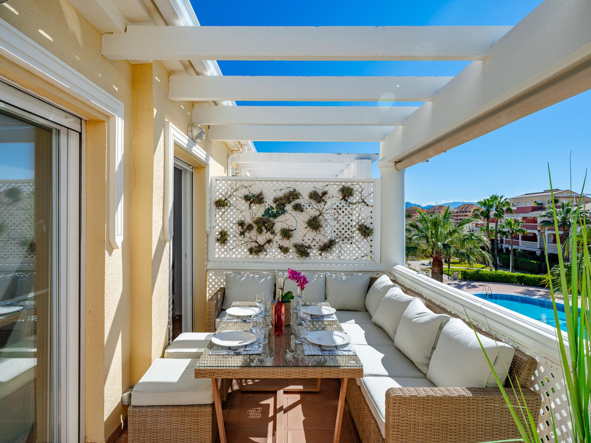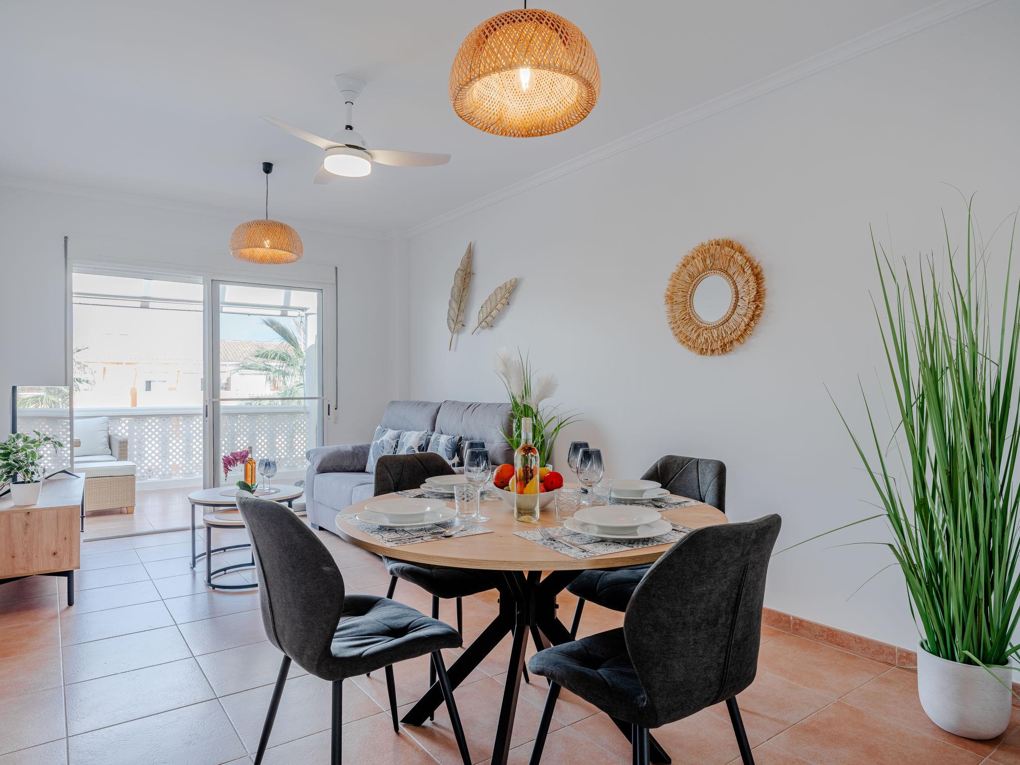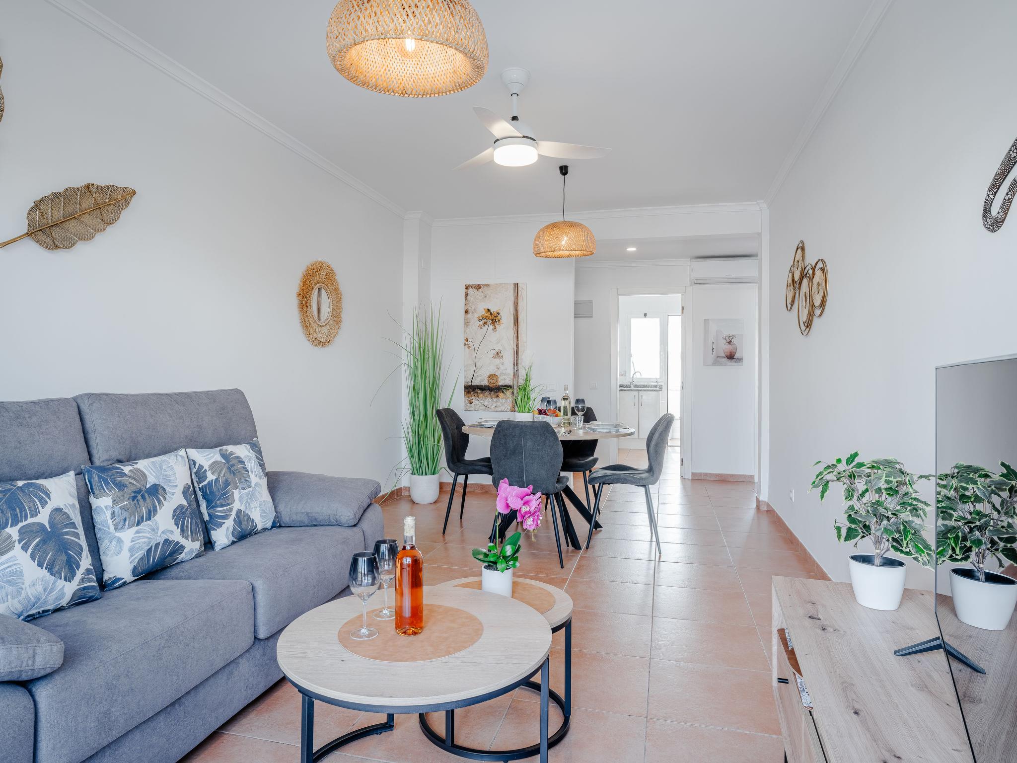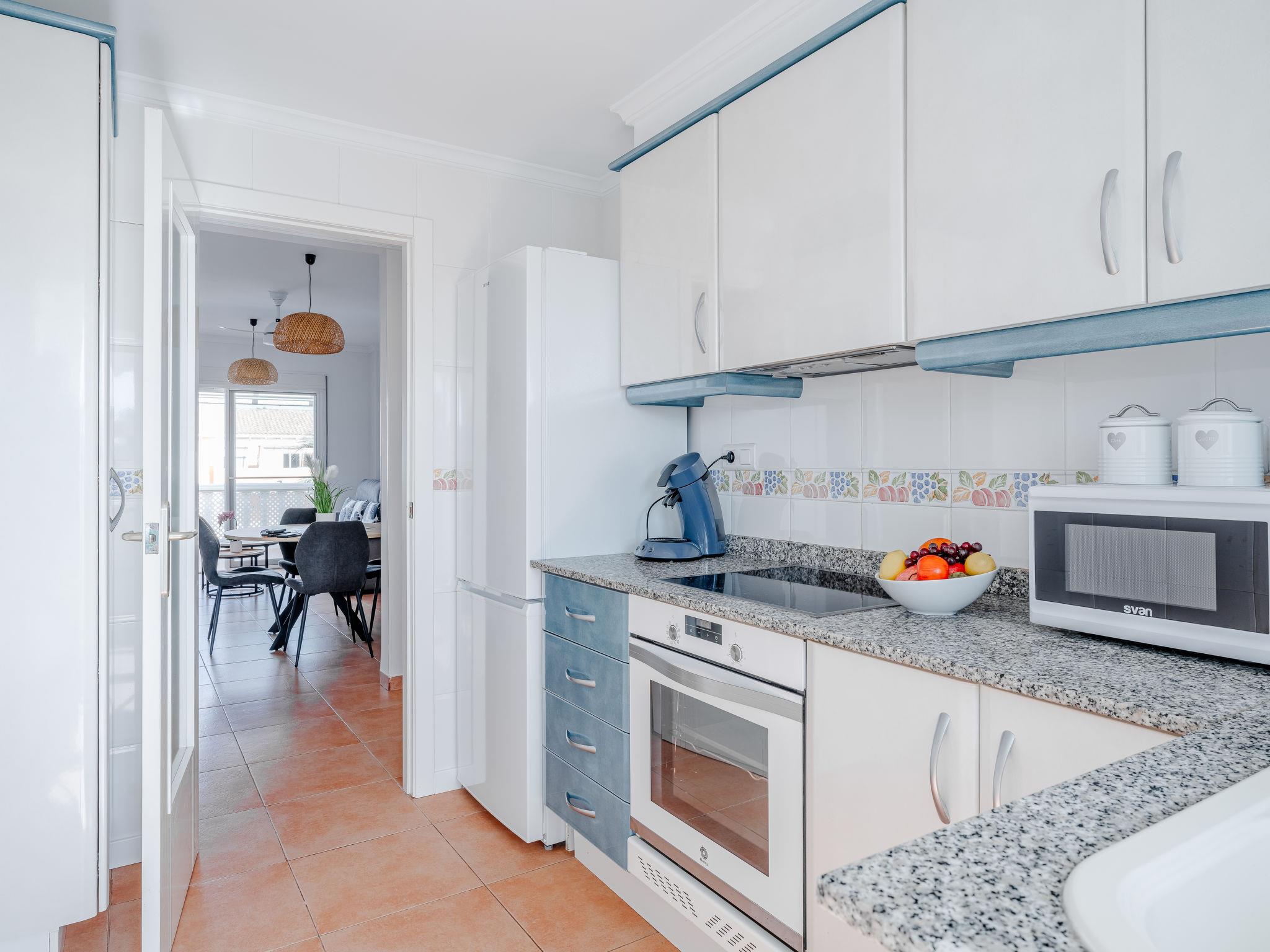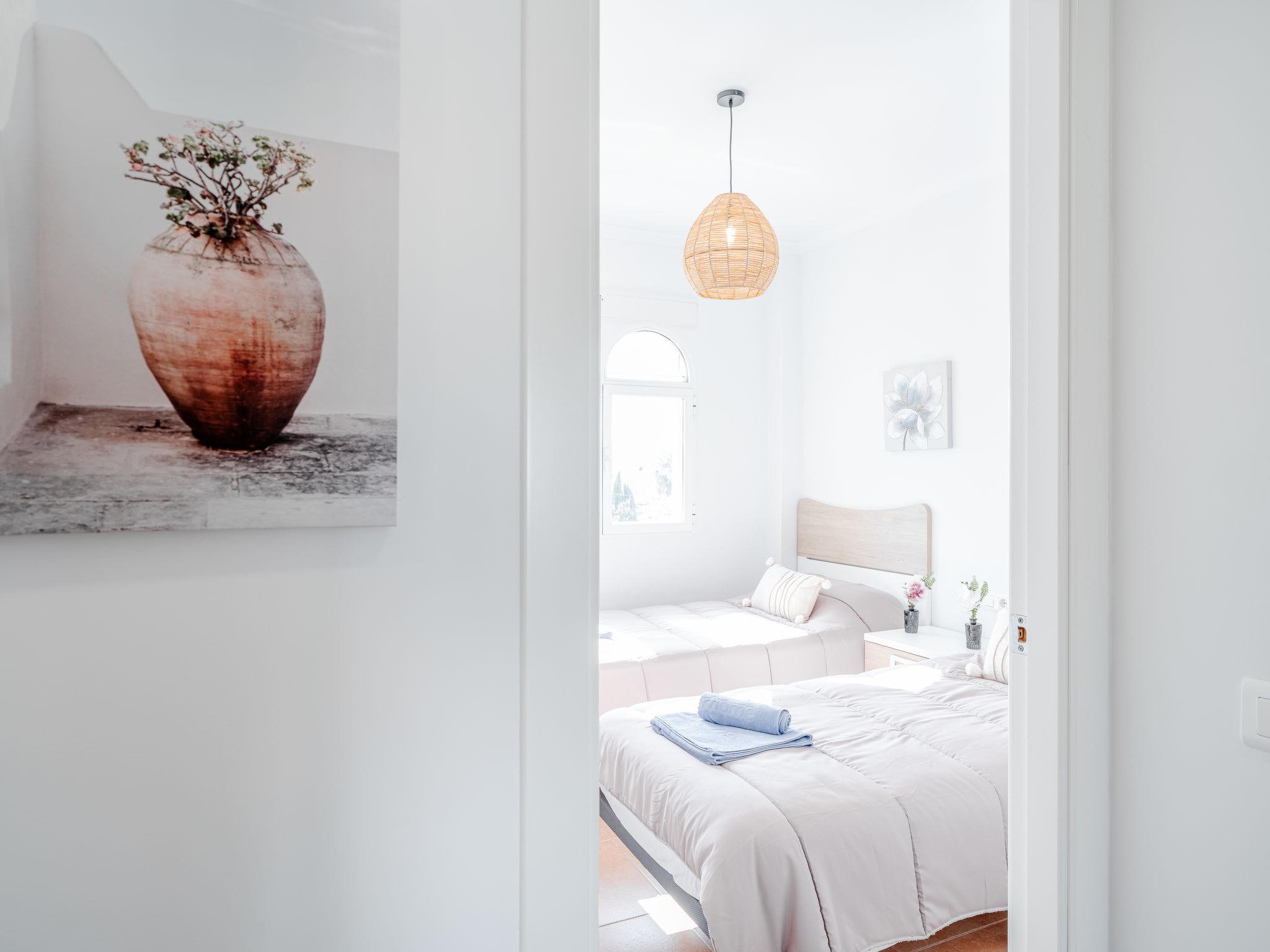 "Estrella Blanca", 3-room apartment 70 m2. Spacious and bright, renovated in 2025, very beautiful and stylish furnishings: living/dining room with satellite TV, digital TV, air conditioning, fan and forced-air heating. Exit to the terrace. 1 room with 1 french bed (160 cm, length 200 cm). Exit to the terrace. 1 room with 2 beds (90 cm, length 200 cm). Kitchen (oven, dishwasher, 3 induction hot plates, toaster, kettle, microwave, freezer, electric coffee machine, Capsules for coffee machine (Senseo) extra). Shower/WC. Large terrace 13 m2. Terrace furniture. Marvellous view of the mountains, the swimming pool and the garden. Facilities: washing machine, iron, hair dryer. Internet (WiFi, free). Parking space n 30. Please note: non-smoking house. R000000001