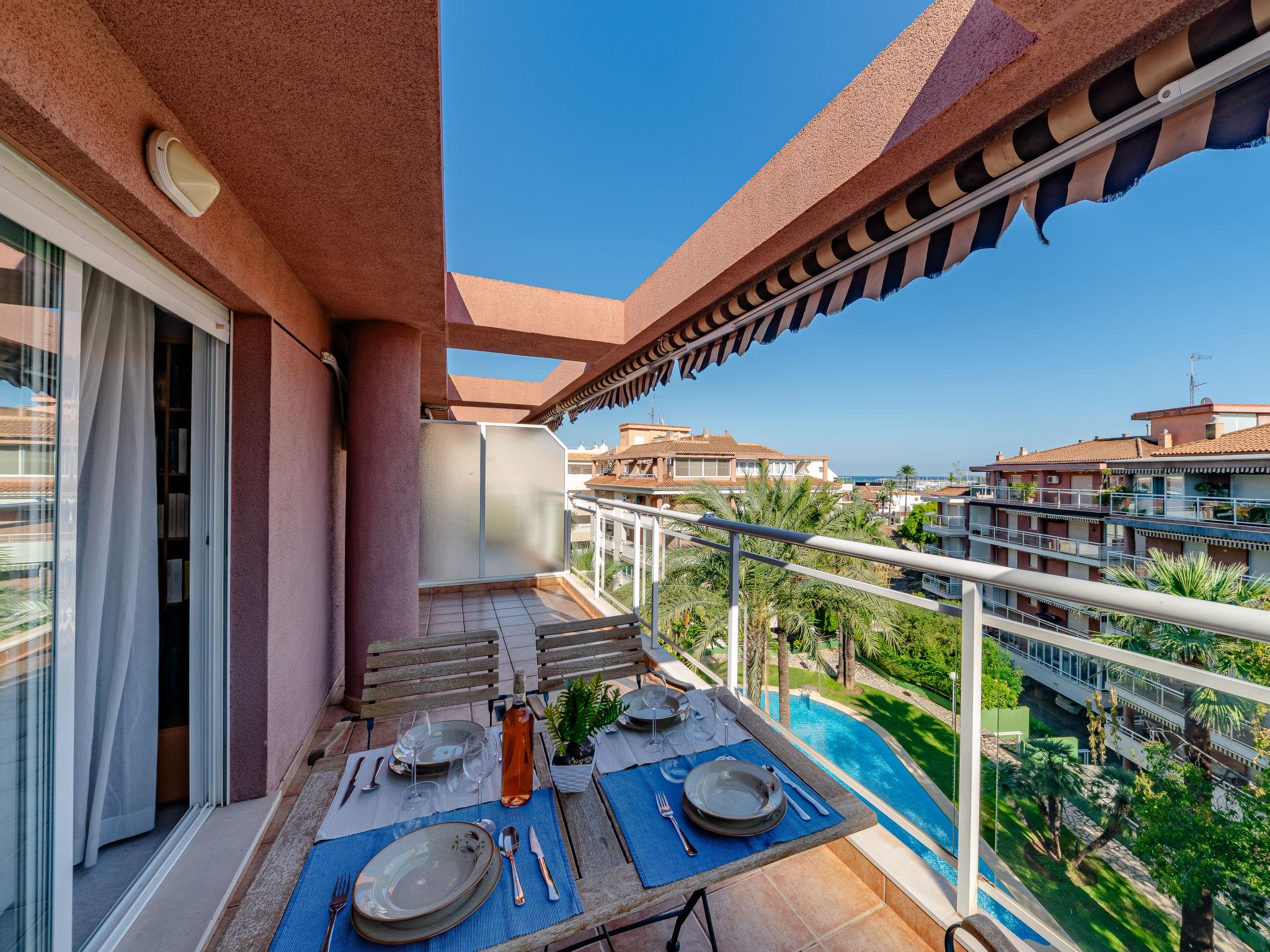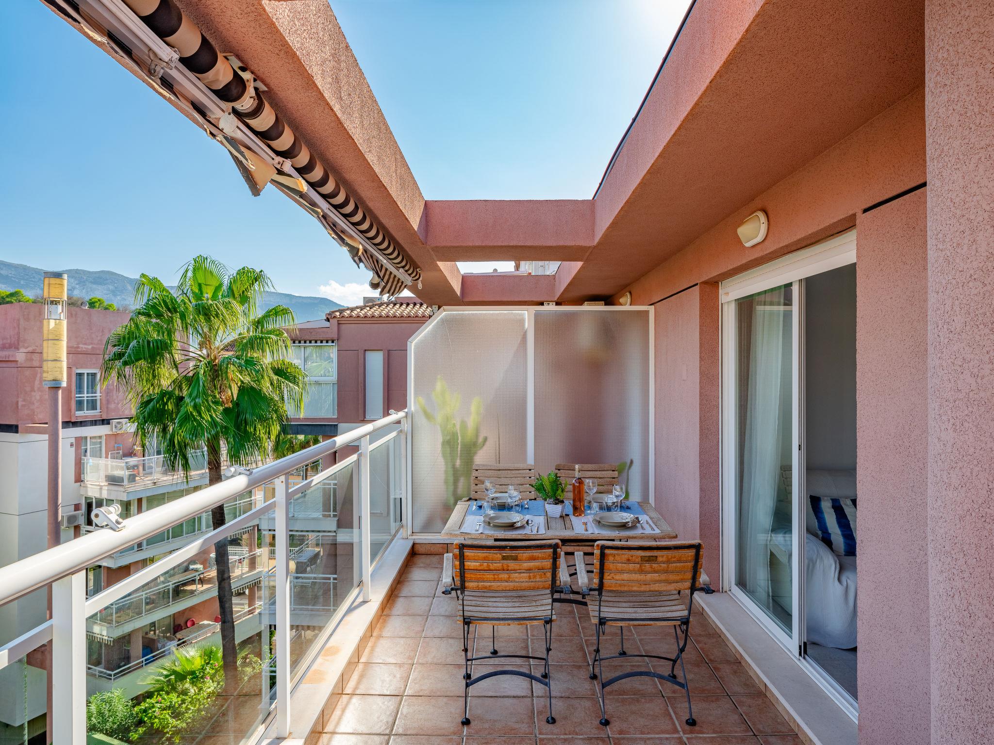 "Dianium Plus", 3-room penthouse 70 m2. Spacious, comfortable and stylish furnishings: living/dining room with digital TV, air conditioning and forced-air heating. Exit to the terrace. 1 room with 1 french bed (135 cm, length 190 cm), bath/bidet/WC, air conditioning and forced-air heating. Exit to the terrace. 1 room with 2 beds (90 cm, length 190 cm), fan. Kitchen (oven, dishwasher, 4 ceramic glass hob hotplates, toaster, kettle, microwave, freezer, electric coffee machine). Exit to the terrace. Bath/WC. Large terrace 44 m2, 2 large terraces 29 m2. Terrace furniture. Marvellous view of the sea, the mountains and the valley. Facilities: washing machine, iron, hair dryer. Internet (WiFi, free). Parking space n 12 (roofed). Please note: TV only ES. R00000001 // Reg. Nr.: ESFCNT00000304500052319400000000000000000000000000005