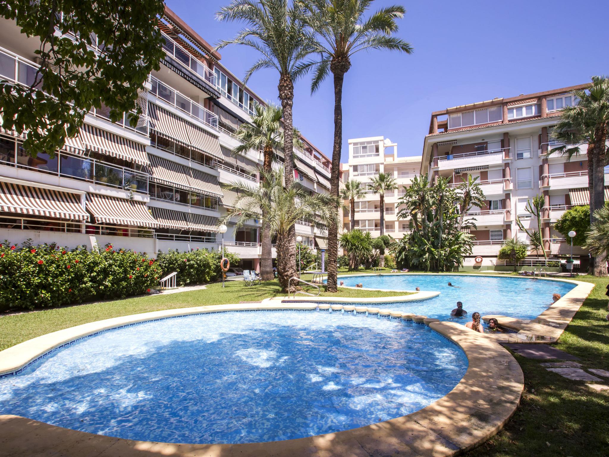 Cosy, comfortable apartment block "Dianium". In the resort 200 m from the centre of Dénia, in a central, quiet position, 200 m from the sea, 200 m from the beach. For shared use: garden with lawn and trees, swimming pool kidney-shaped (20 x 15 m, depth 40 - 210 cm, seasonal availability: 01.Jan. - 31.Dec.) with internal staircase. Children's pool, outdoor shower. In the house: lift. Shop, grocery 80 m, supermarket 350 m, restaurant, bar, café 100 m, bus stop 300 m, railway station 1.5 km, ferry 800 m, sandy beach "Les Marines" 200 m. Sports harbour, surf school, sailing school 400 m. The owner does not accept any youth groups.