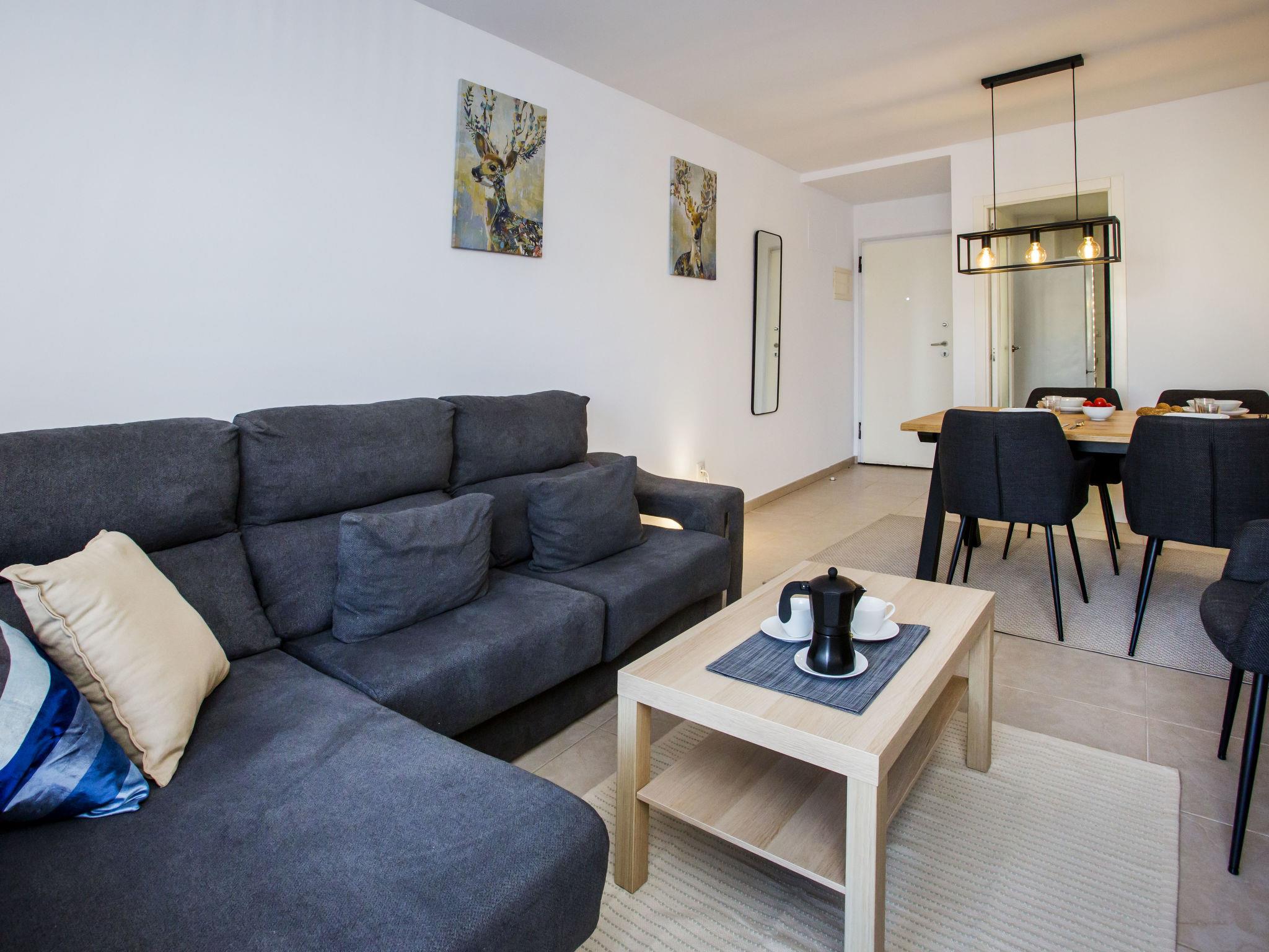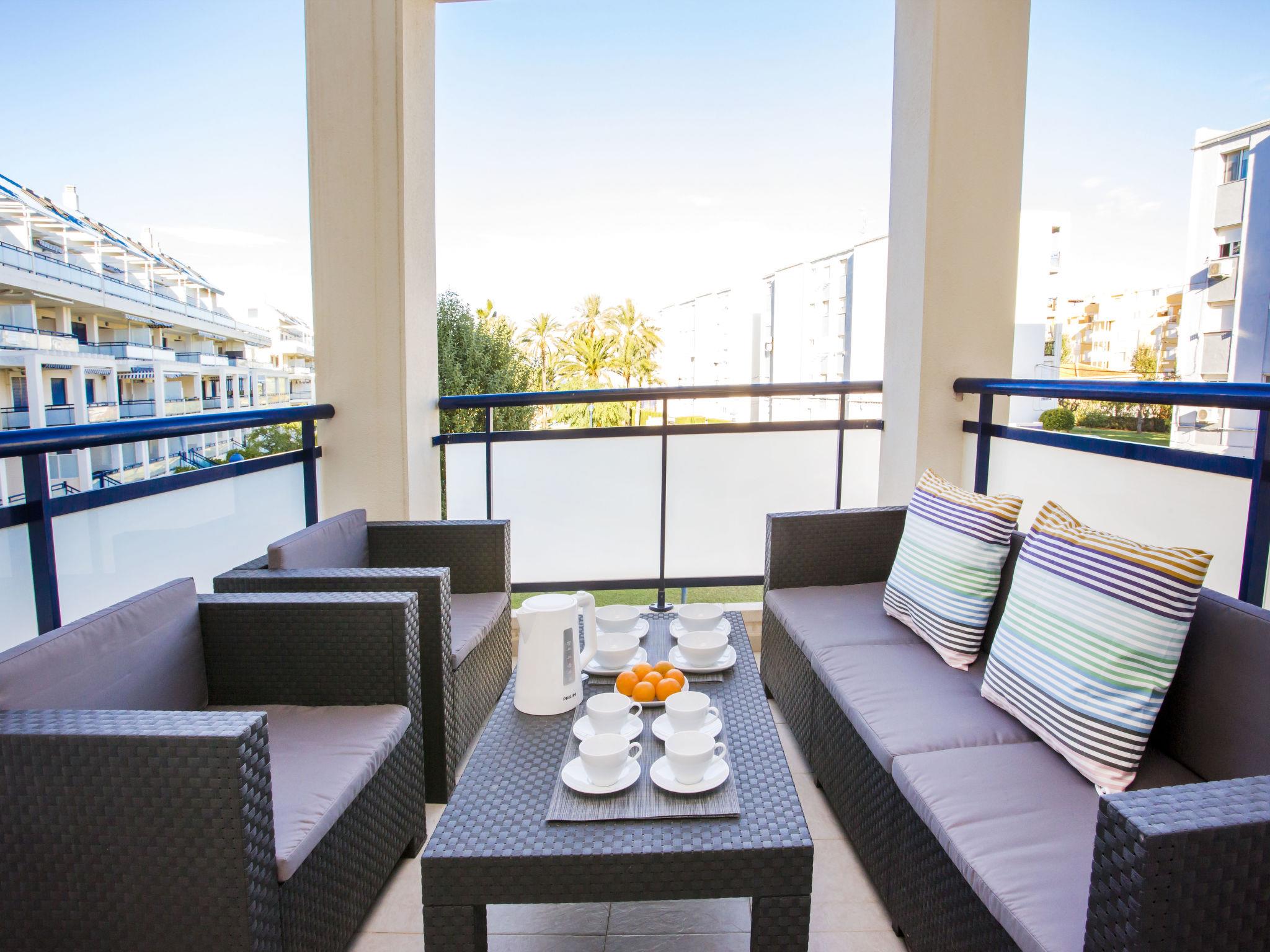 "Sueno de Denia IV", 3-room apartment 80 m2 on 1st floor. Spacious and bright, very beautiful and stylish furnishings: living/dining room with digital TV. Exit to the terrace. 1 room with 1 french bed (150 cm, length 190 cm), shower/WC. 1 room with 2 beds (90 cm, length 190 cm). Kitchen (oven, dishwasher, 3 ceramic glass hob hotplates, toaster, microwave, freezer, electric coffee machine). Bath/bidet/WC. Large terrace. Terrace furniture. Facilities: washing machine, iron, children's high chair, baby cot, hair dryer. Internet (WiFi, free). Garage space n 1. Please note: TV only ES. VT-499306-A