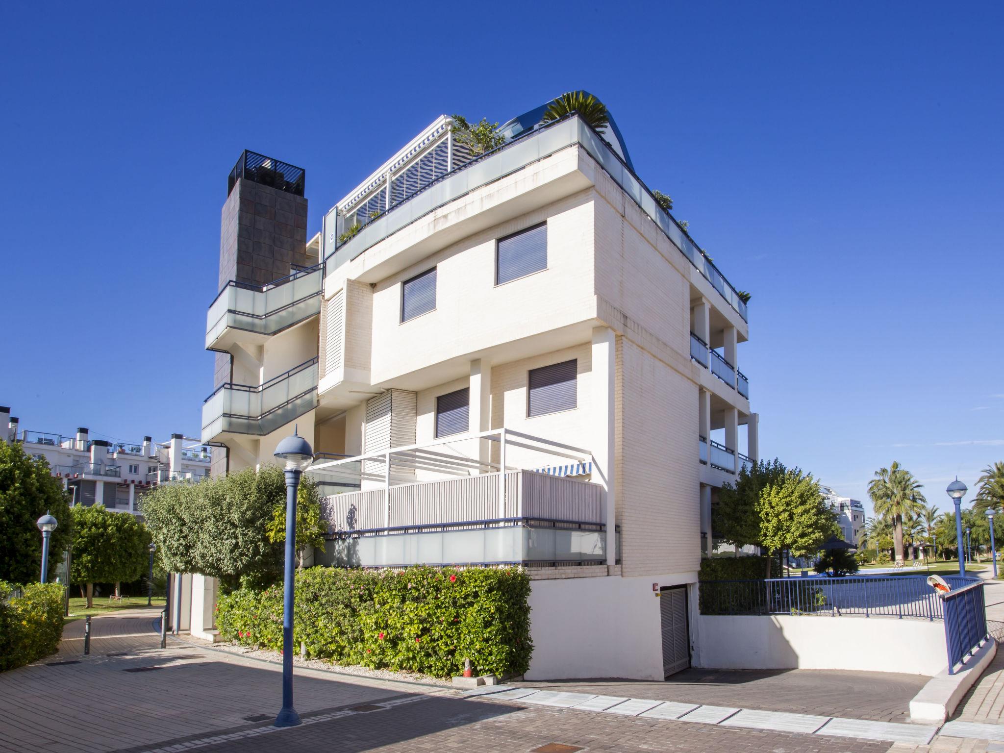 Large, modern, comfortable apartment block "Sueno de Denia IV". In the resort 1 km from the centre of Denia, in a quiet, sunny position, 20 m from the sea, direct access to the beach. For shared use: with lawn and trees, natural garden, swimming pool (25 x 13 m, depth 80 - 180 cm, seasonal availability: 01.Jan. - 31.Dec.) with internal staircase. Outdoor shower, hot tub. In the house: central heating system, air conditioning. Communal covered parking space n 1. Supermarket 150 m, restaurant 50 m, café 150 m, bus stop 400 m, railway station 2 km, ferry 1.2 km, sandy beach "Playa de Les Marines" 20 m. Surf school 500 m, sailing school 800 m, tennis 250 m. The owner does not accept any youth groups.