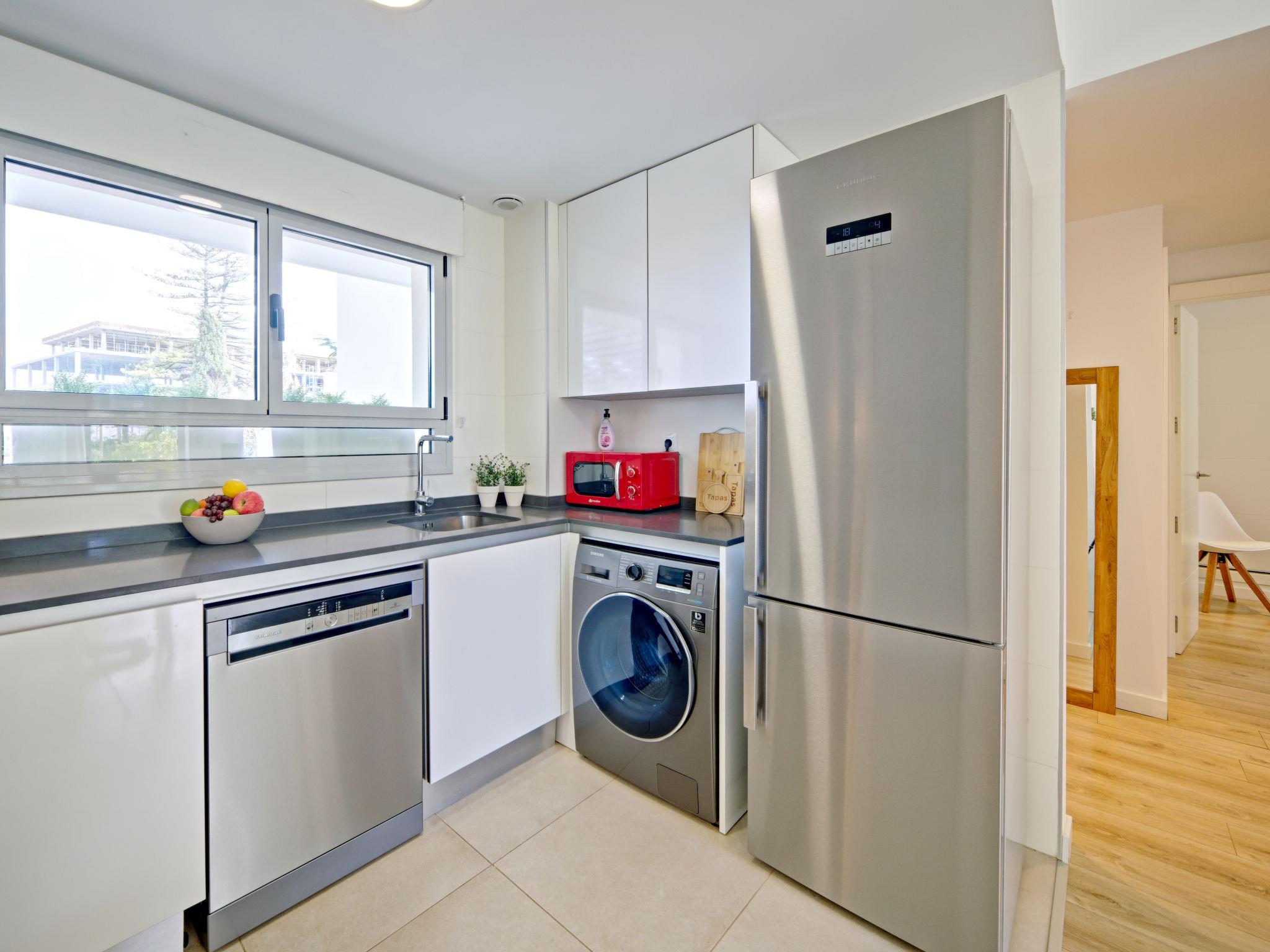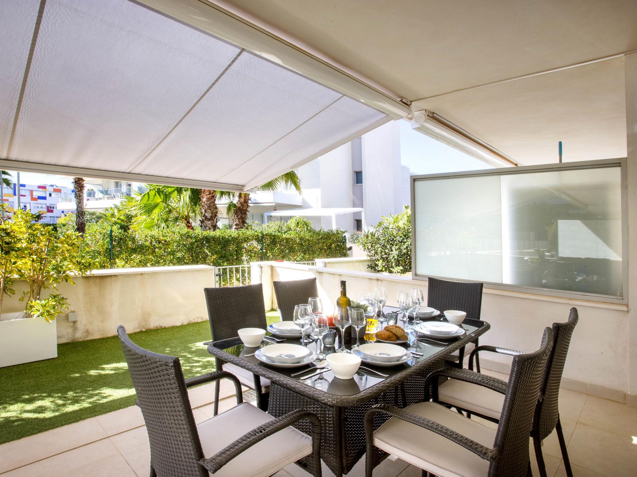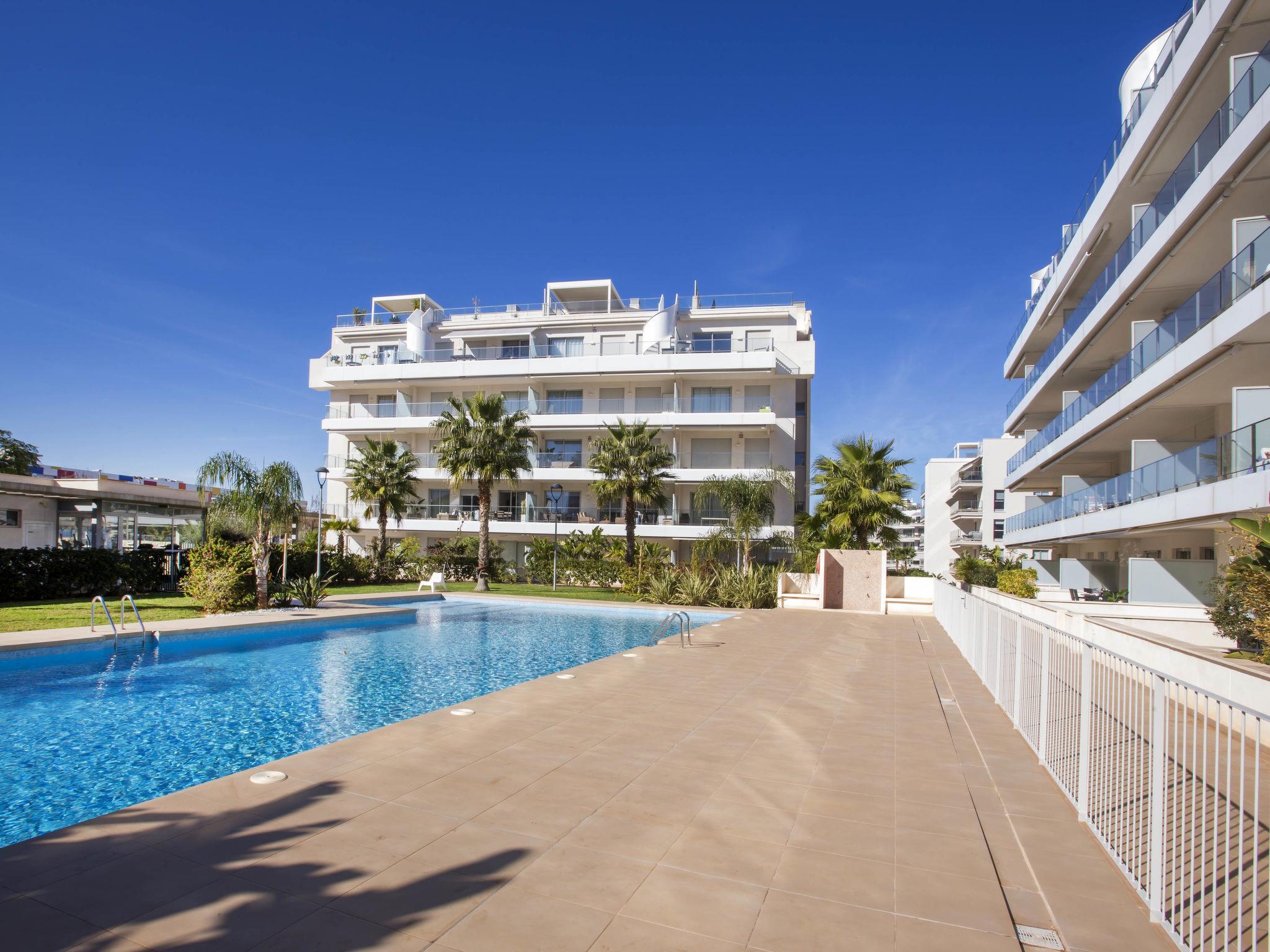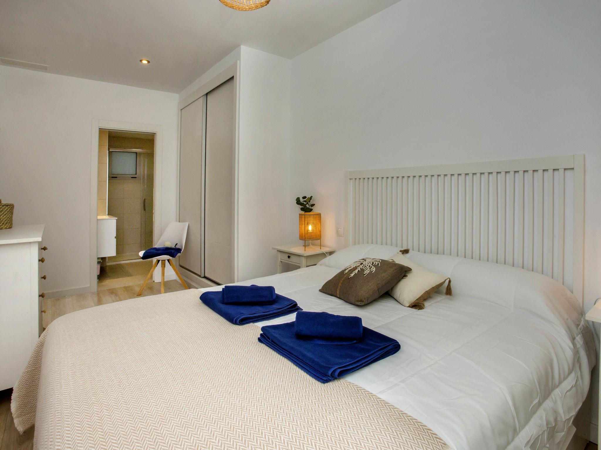 "Marina Real I", 3-room apartment 70 m2. Spacious and bright, very beautiful and stylish furnishings: living/dining room with digital TV, air conditioning and forced-air heating. Exit to the patio, to the swimming pool. 1 room with 1 french bed (160 cm, length 200 cm), shower/WC, air conditioning and forced-air heating. Exit to the terrace. 1 room with 1 french bed (140 cm, length 200 cm), air conditioning and forced-air heating. Exit to the terrace. Open kitchen (oven, dishwasher, 3 induction hot plates, toaster, kettle, microwave, freezer, electric coffee machine, Capsules for coffee machine (Senseo) extra). Shower/WC. Large terrace 40 m2. Terrace furniture, covered balcony. Very beautiful view of the mountains. Facilities: washing machine, dryer, iron, children's high chair, baby cot, hair dryer. Internet (WiFi, free). Garage space n 49. Please note: non-smokers only. CV-VUT0514959-A // Reg. Nr.: ESFCTU0000030550008251430000000000000CV-VUT0514959-A8